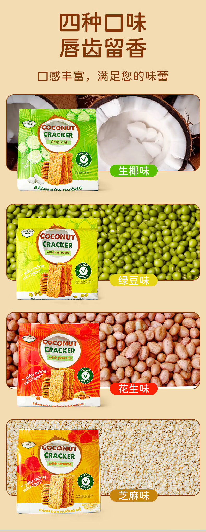 Vietnam My Phuong Food Raw Coconut Crisp Biscuits 150g Student Breakfast Meal Replacement Food