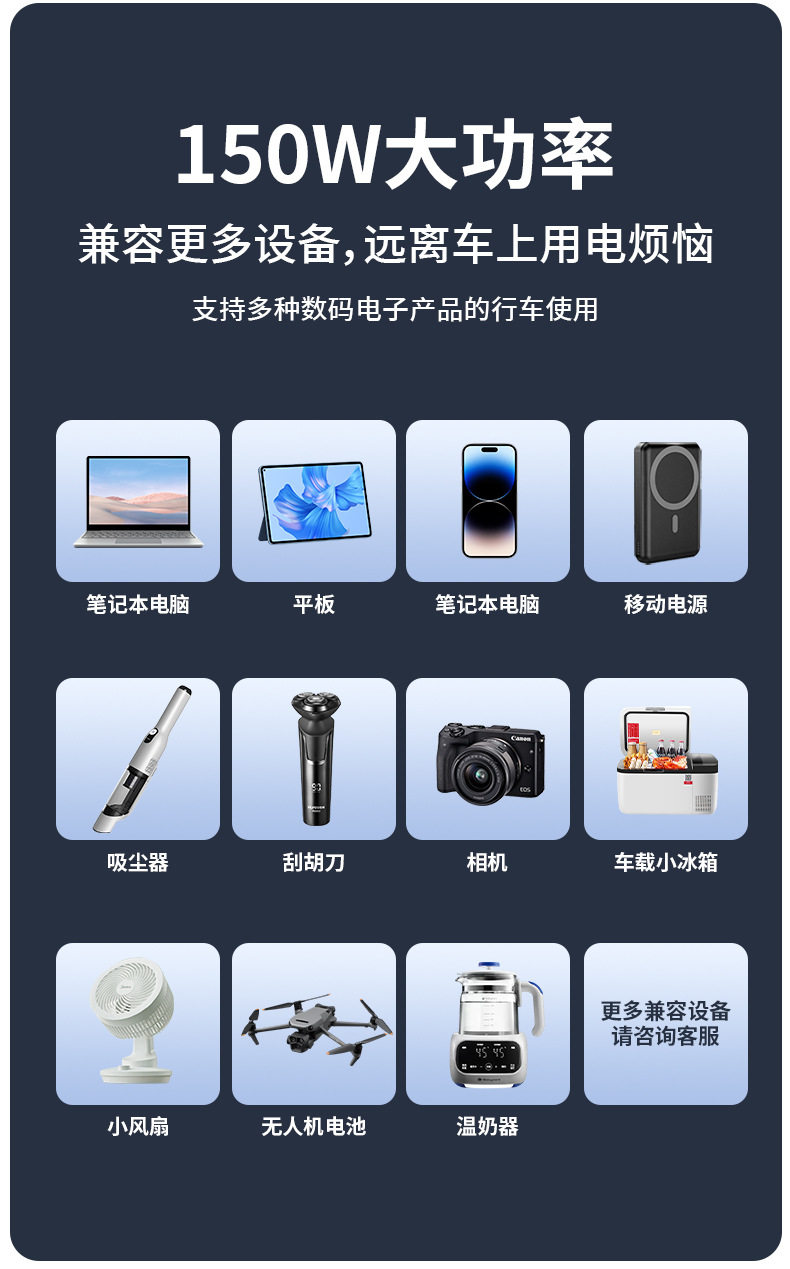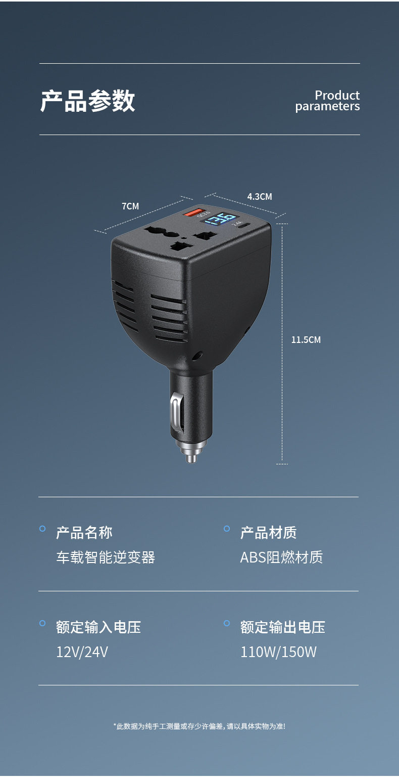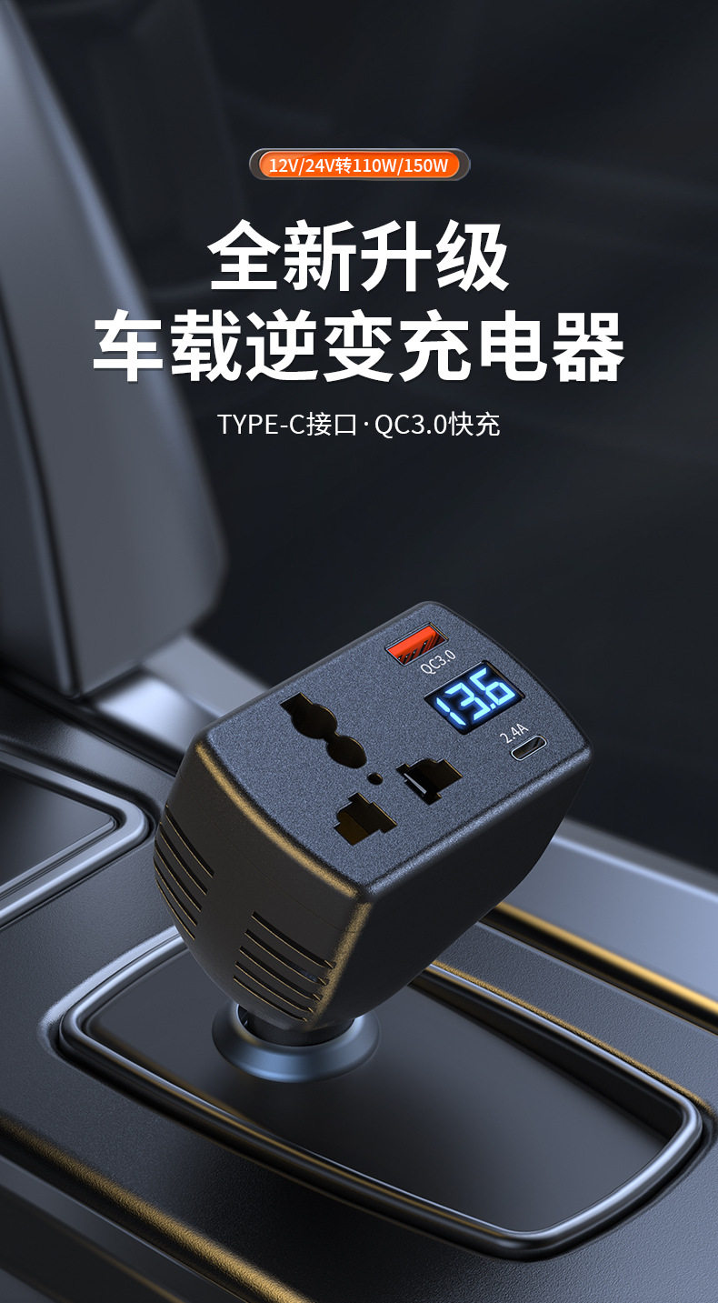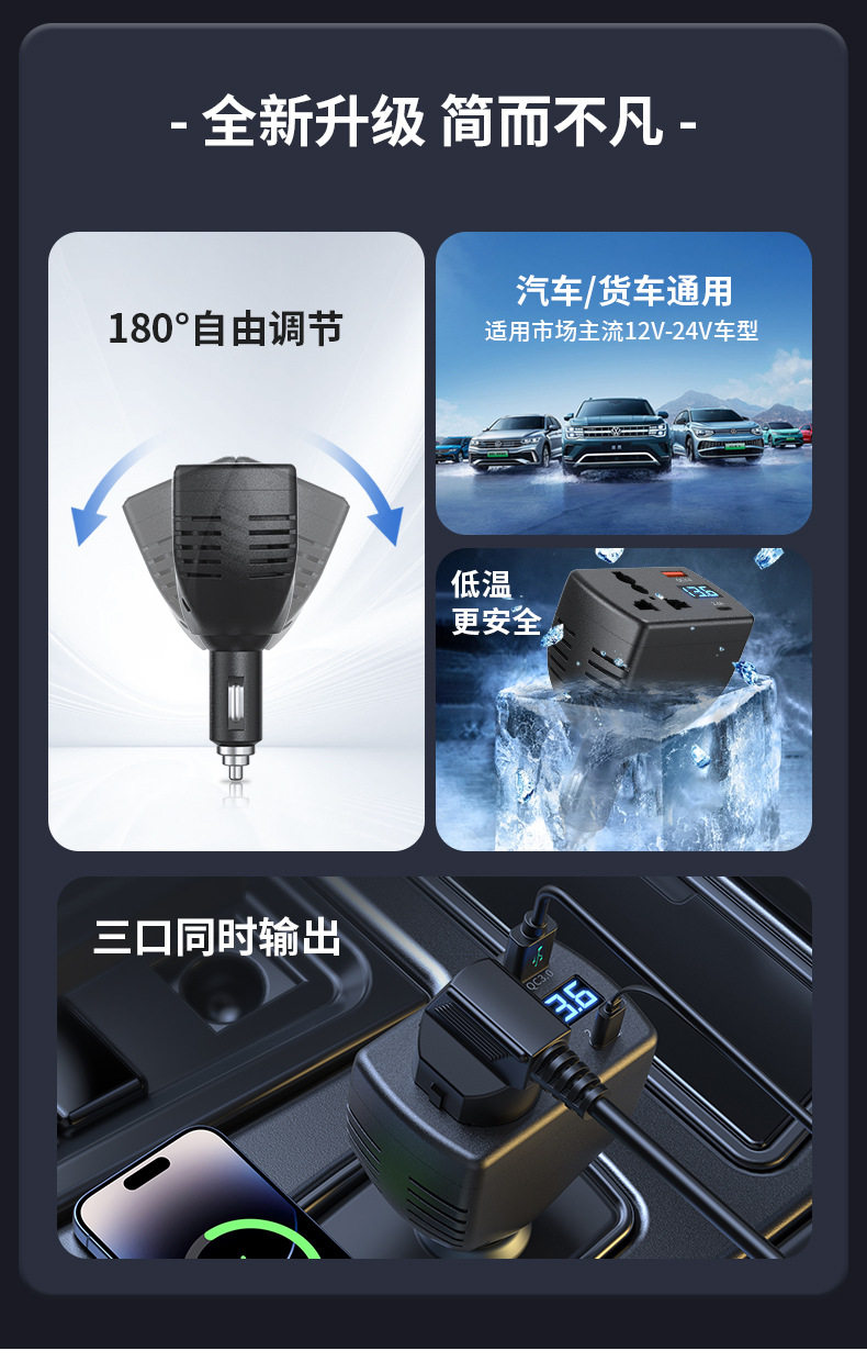 Cross-Border 150W Car Inverter 12V-24V to 220V One-To-Three Power Converter Car Cigarette Lighter