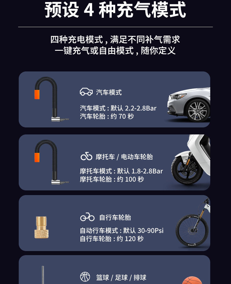 | Scope of application | Small suvs, cars, motorcycles, bicycles, basketballs, etc |