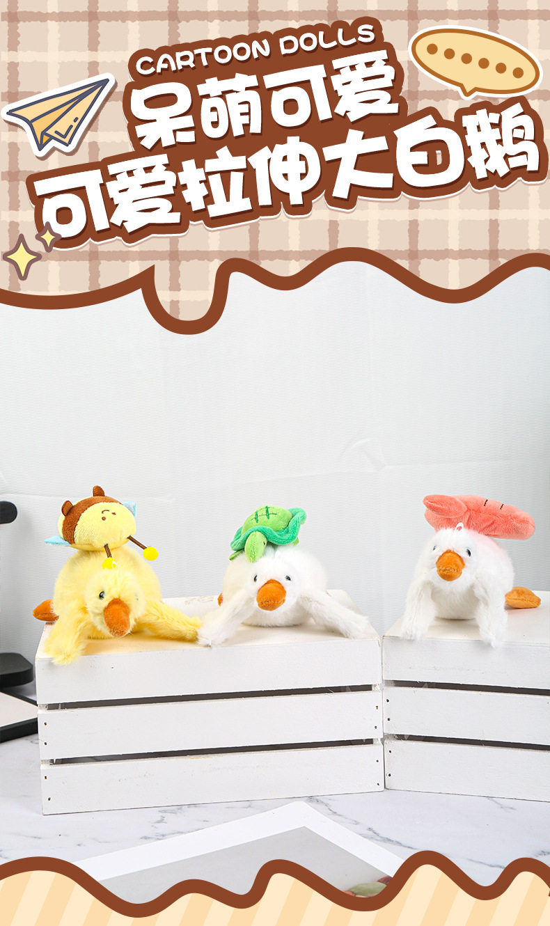 Cute Stretchy Big White Goose Keychain Pendant Doll Bag Charm Plush Toy Stress Relief Fun Stuffed Animal Toy