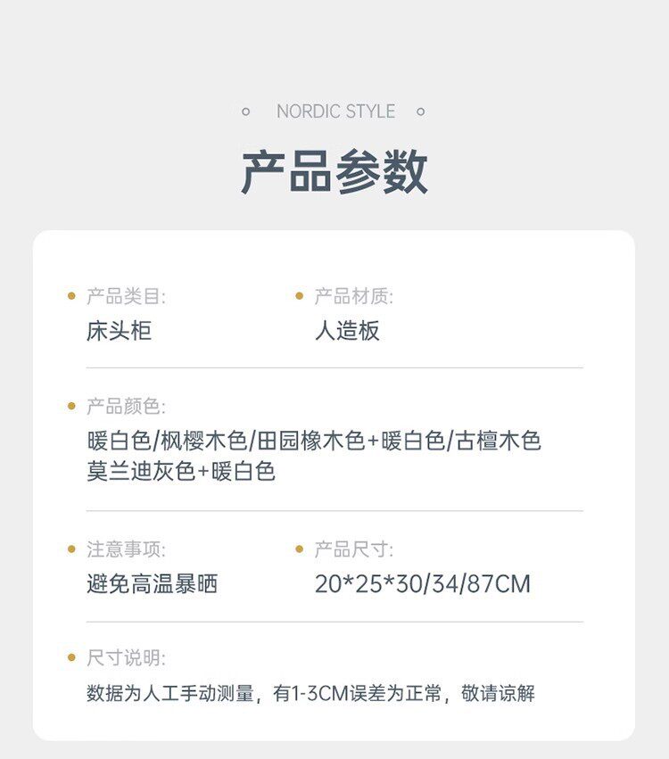| Color | [three-drawer plus height model] warm white + blue 30*34*87cm multi-layer storage simple bedside table,[three-drawer plus height model] pastoral oak color + blue 30*34*87cm multi-layer storage simple bedside table,[three drawers] warm white 33*26*48cm multi-layer storage simple bedside table,[three drawers] feng sakura wood color 33*26*48cm multi-layer storage simple bedside table,[three drawers] morandi gray 33*26*48cm multi-layer storage simple bedside table,[double-drawn and heightened model] warm white 33*26*60cm multi-layer storage simple bedside table,[single-drawer and taller model] warm white 33*26*60cm multi-layer storage simple bedside table,[double draw] pastoral oak color 33*26*40cm multi-layer storage simple bedside table,[double drawer] morandi gray 33*26*40cm multi-layer storage simple bedside table,[double drawer] warm white 33*30*40cm multi-layer storage simple bedside table,[single drawer] warm white 33*26*40cm multi-layer storage simple bedside table,[single drawer] pastoral oak color 33*26*40cm multi-layer storage simple bedside table,[single drawer] morandi gray 33*29*40cm multi-layer storage simple bedside table,[single drawer with lock] morandi gray 33*29*40cm multi-layer storage simple bedside table,[single drawer] warm white 33*30*40cm multi-layer storage simple bedside table,[double storage compartments] warm white 27*20*40cm multi-layer storage simple bedside table,[single draw extra large style] warm white assembly |