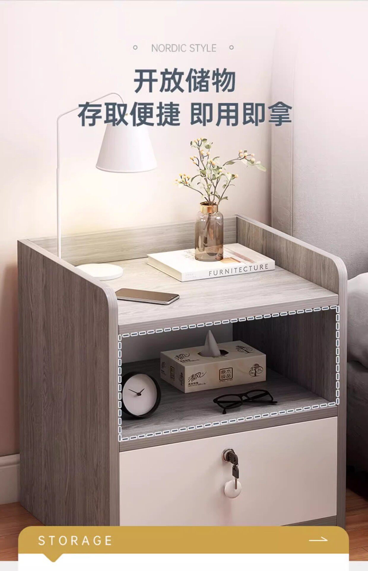 Bedside Table Simple Storage Rack Rental Room Simple Bedroom Storage Light Luxury High-End Storage Cabinet Bedside Cabinet