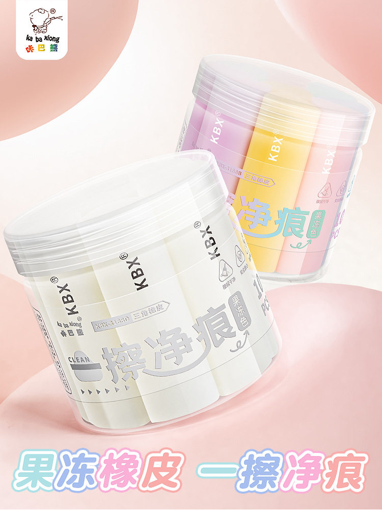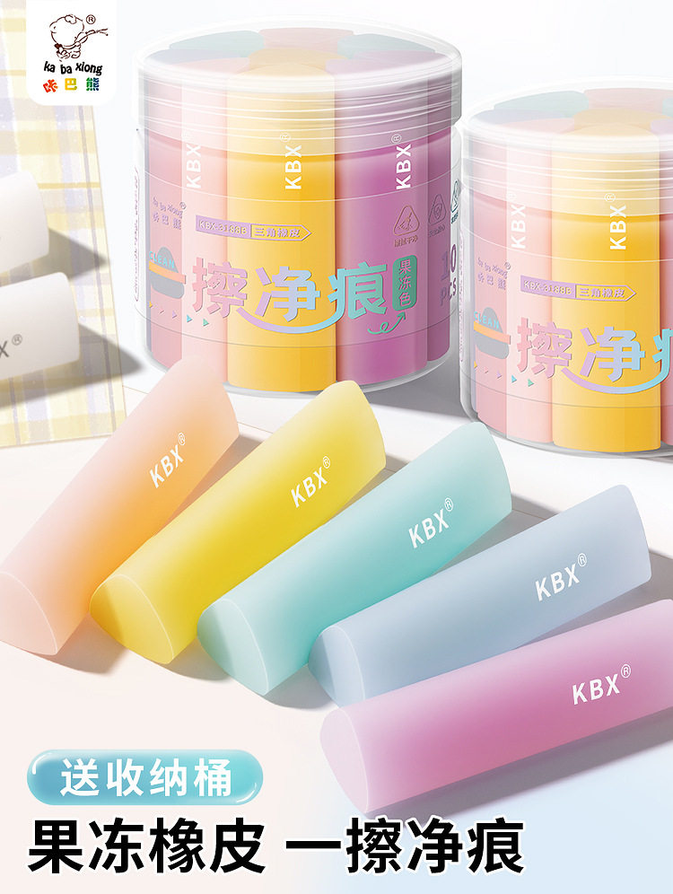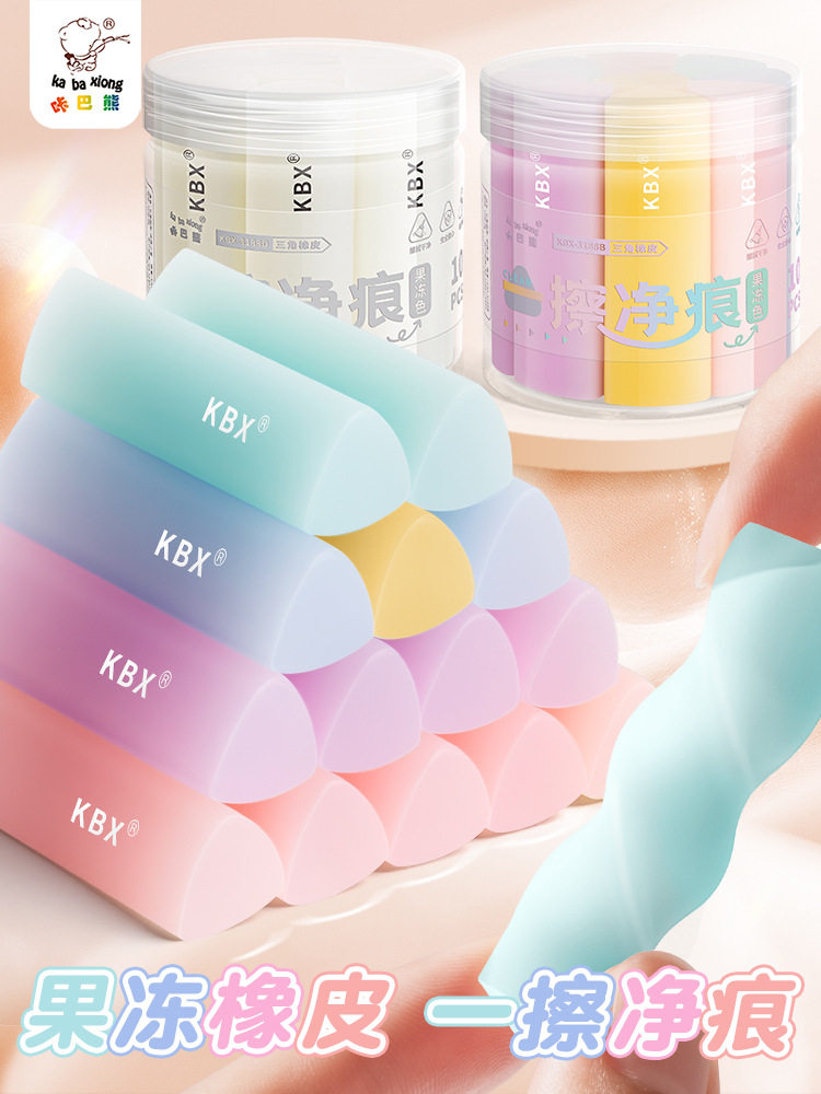 Kaba Bear Triangular Eraser, No Crumbs, Super Clean, Specially Designed for Primary School Students to Wipe into Strips, Wipe Clean Without Leaving Traces 2B