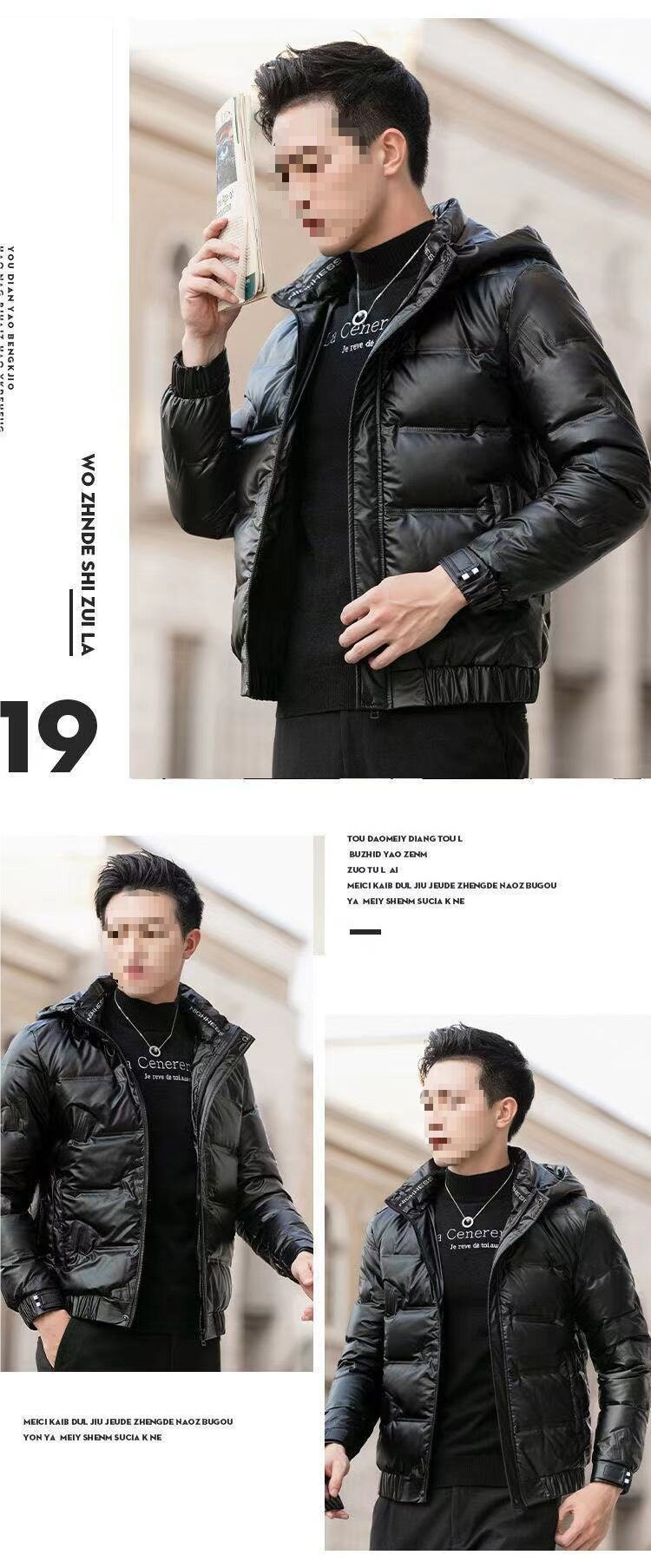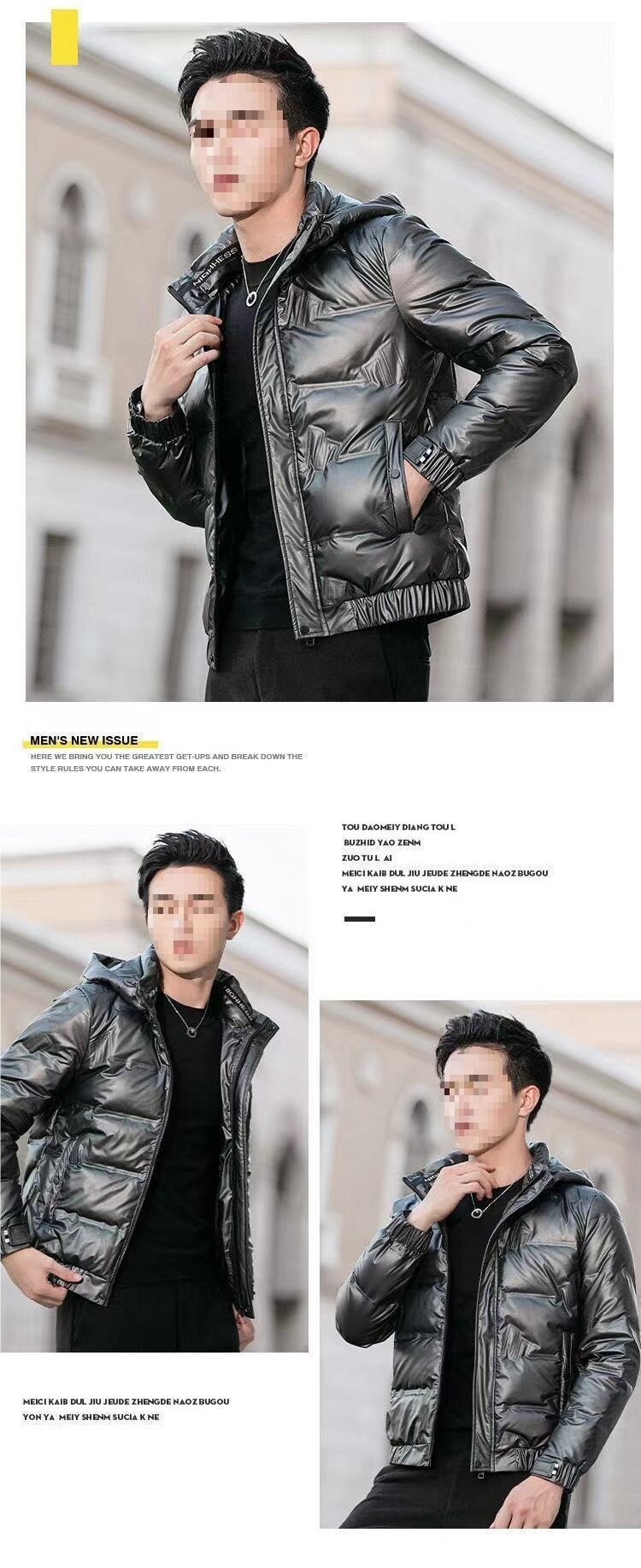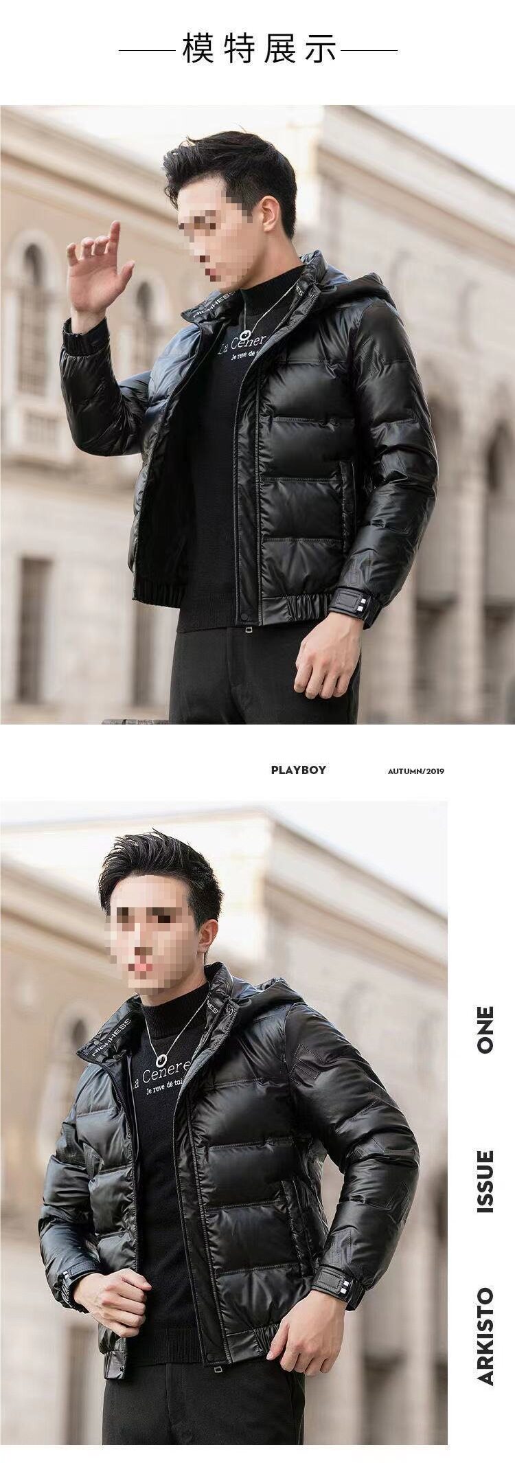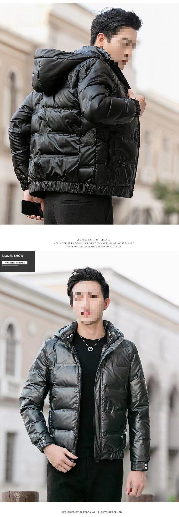 Cross-Border Winter Men's New Trendy Men's Glossy down Jacket Stand Collar Hooded Removable White Duck down Light and Short Jacket