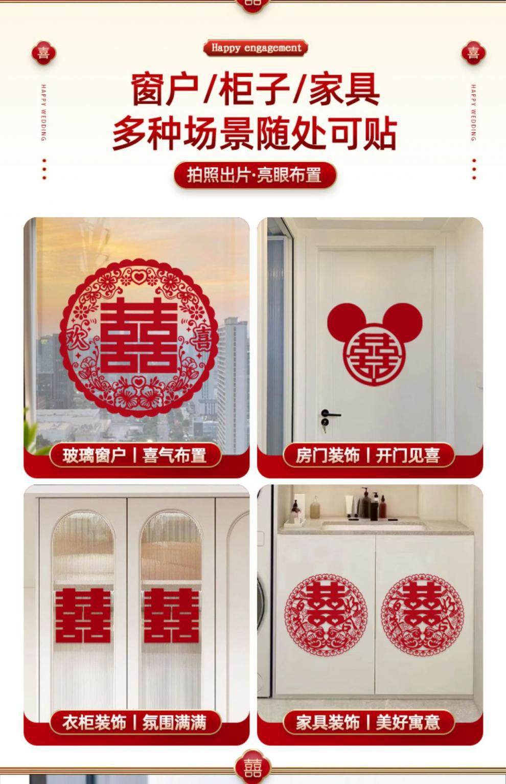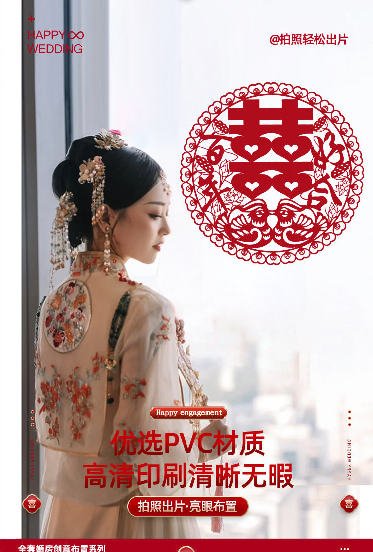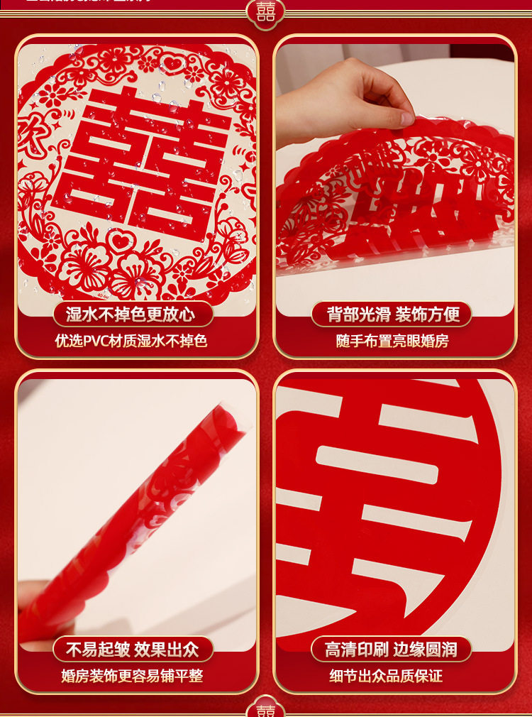 Special electrostatic stickers for wedding with "Happiness" stickers on window glass "囍" stickers for weddings, wedding room layout, wedding car decoration, window grilles "囍"