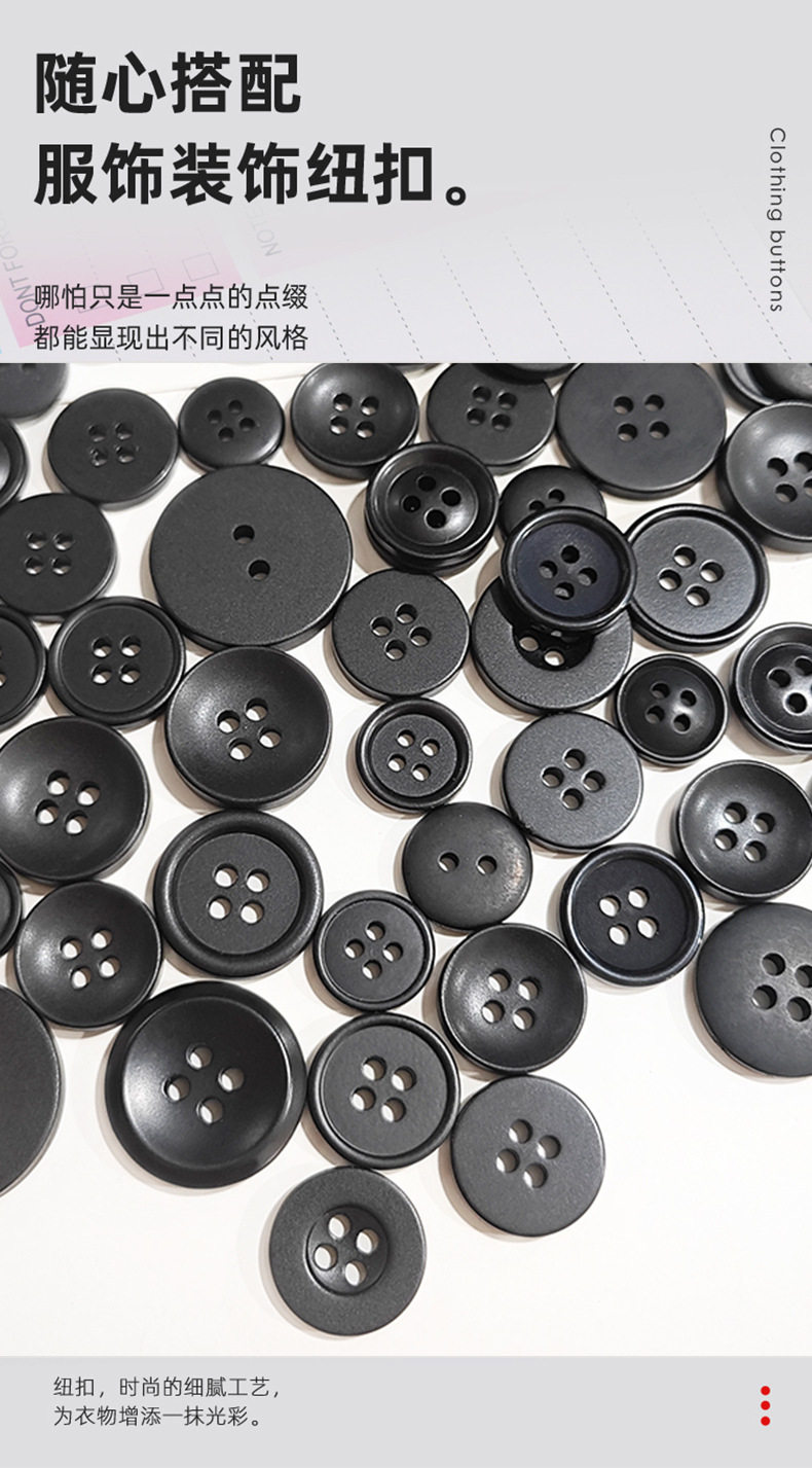 Matte Resin Buttons for Coats and Trench Coats, Small Thin-Edged Suit Buttons, Wide-Edged Two-Eye and Four-Eye Frosted Buttons, Suit Buttons
