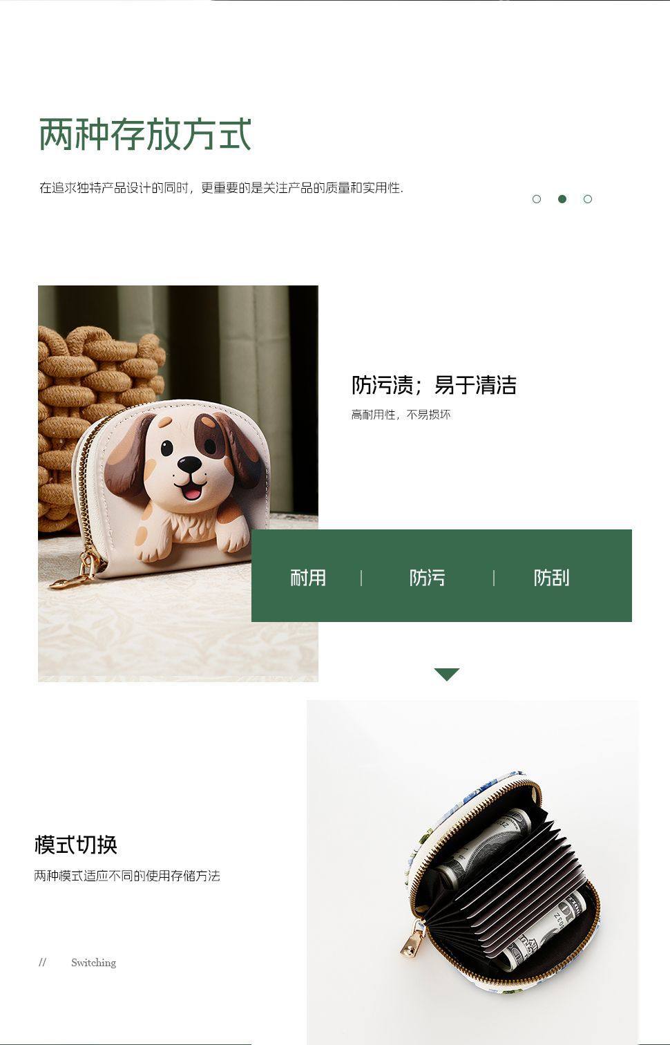 Korean Version Cute Cat Coin Purse Cartoon Print Small Animal Wallet for Girls Multifunctional Portable Card Holder Card Set Batch