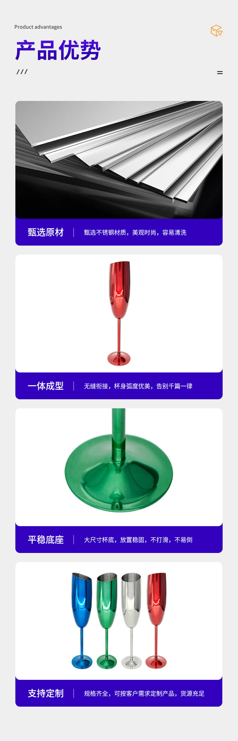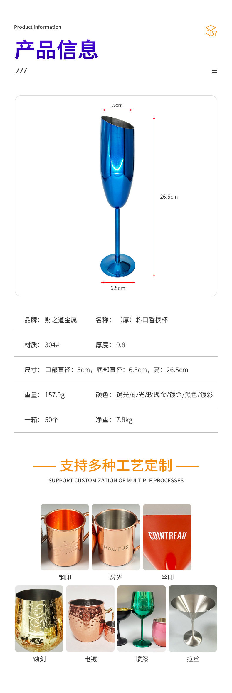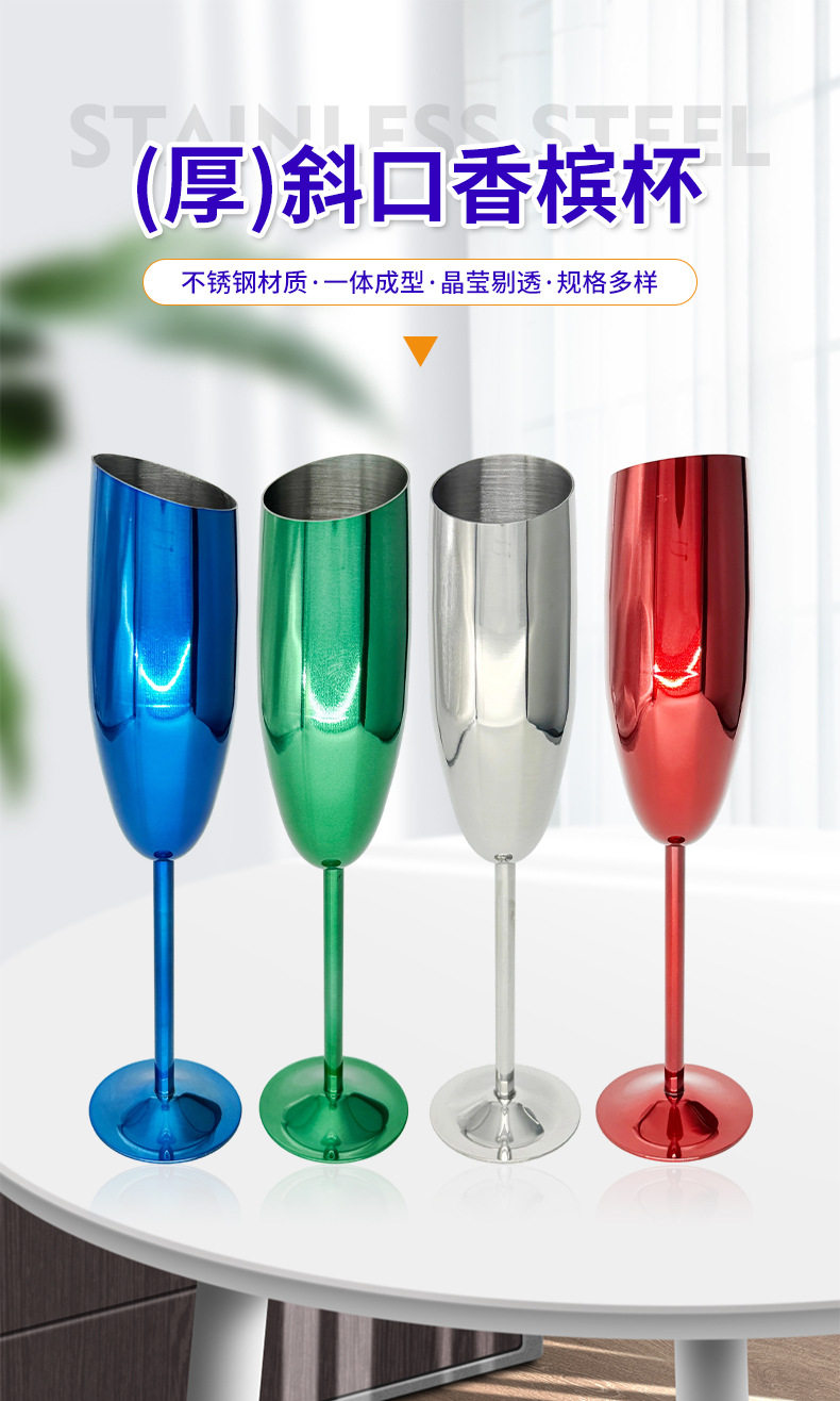 Cross-Border Bar Supplies Sparkling Wine Goblets Thickened Slanted Mouth High-End Banquet Champagne Glasses Electroplated Stainless Steel Wine Glasses