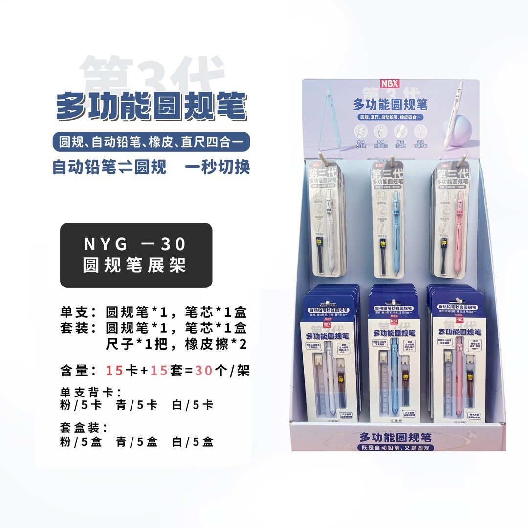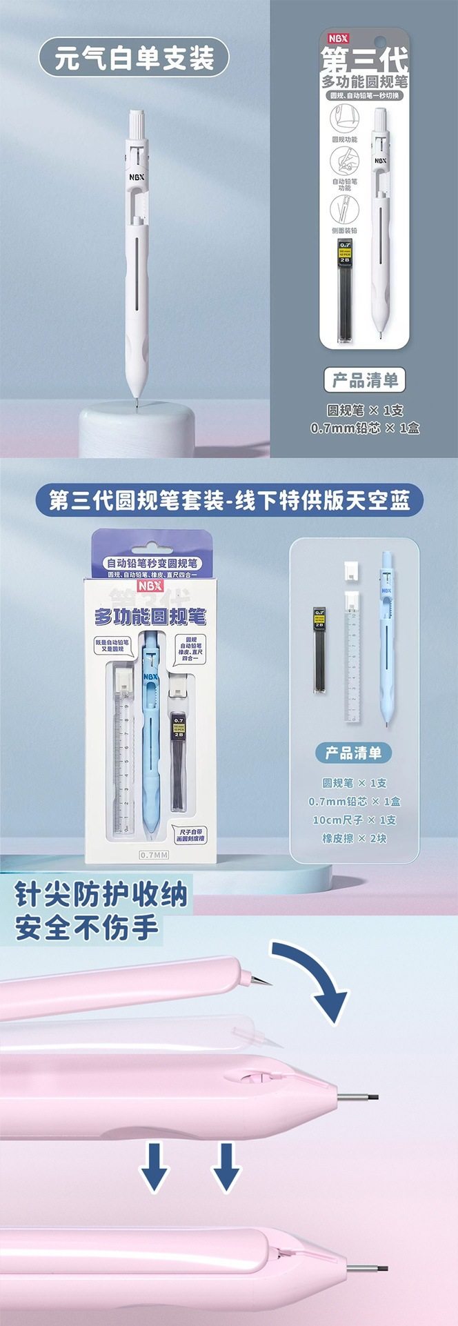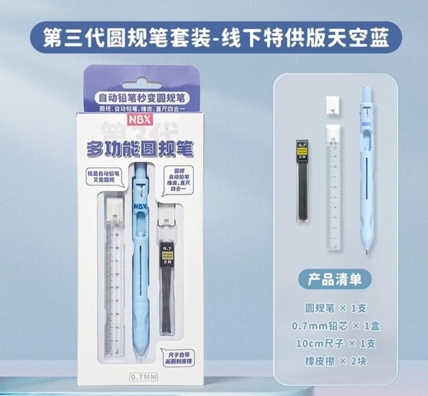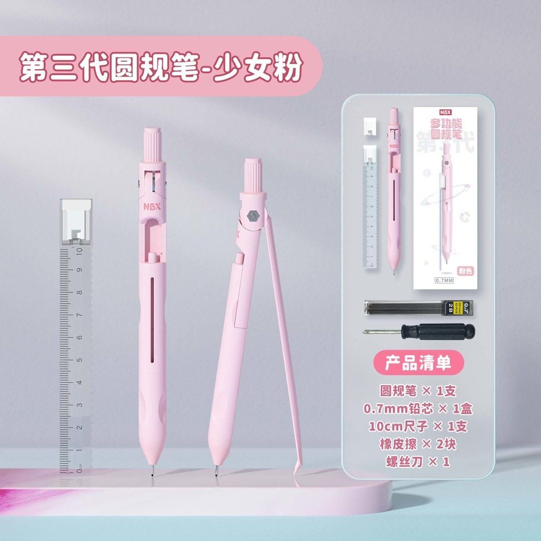 Nbx Third Generation Automatic Pencil Compass Ruler Eraser Four-In-One One-Second Switching Creative Exam Set