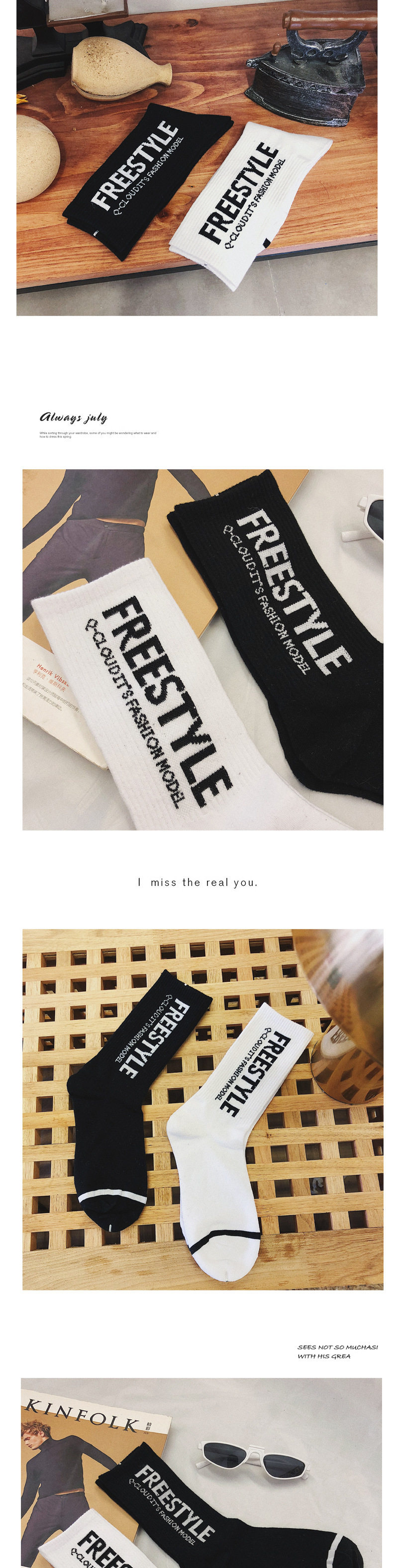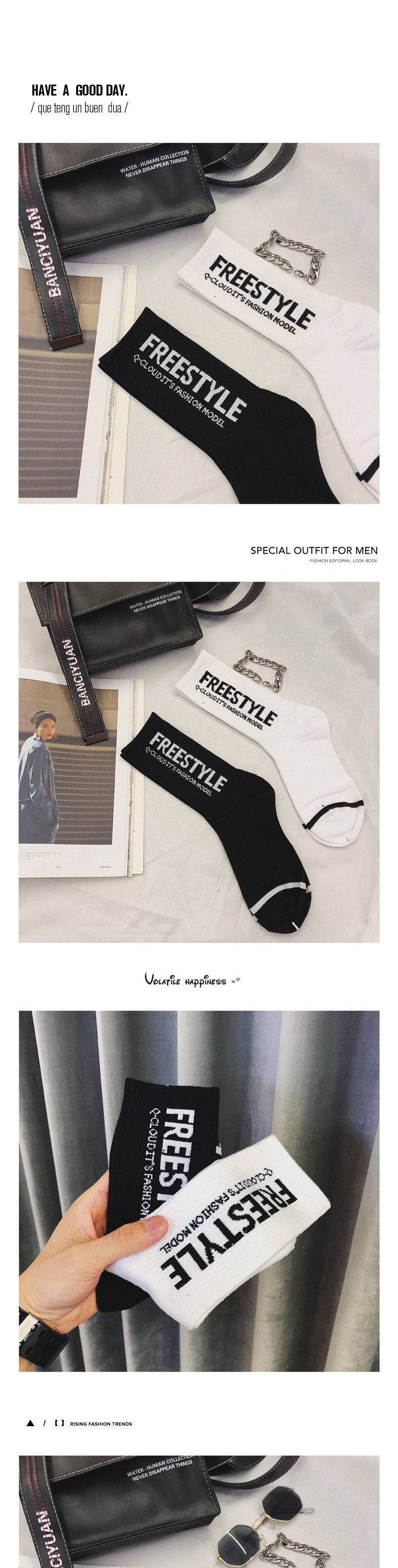 Spring and Autumn Pure Cotton Letter Odor-Resistant Sweat-Absorbing Men's Trendy Socks Zhujie All-Cotton Versatile Fashion Mid-Tube Socks Men Wholesale
