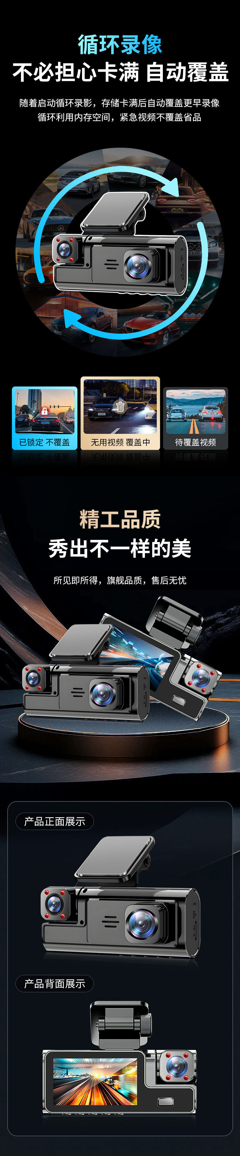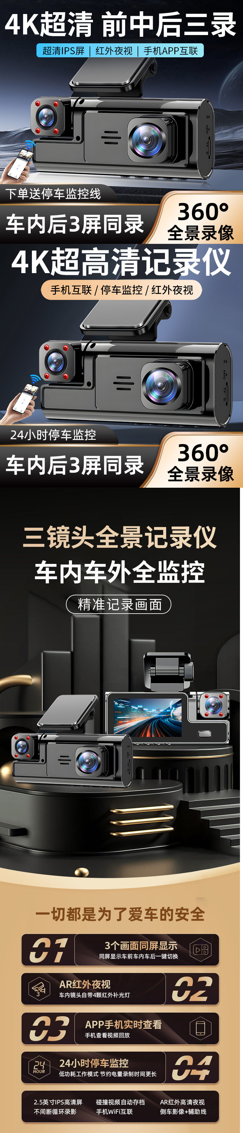 2025 New Special Driving Recorder Three Cameras with Same Screen 360 ° Panoramic Video 4K Ultra High Definition Infrared Night Vision