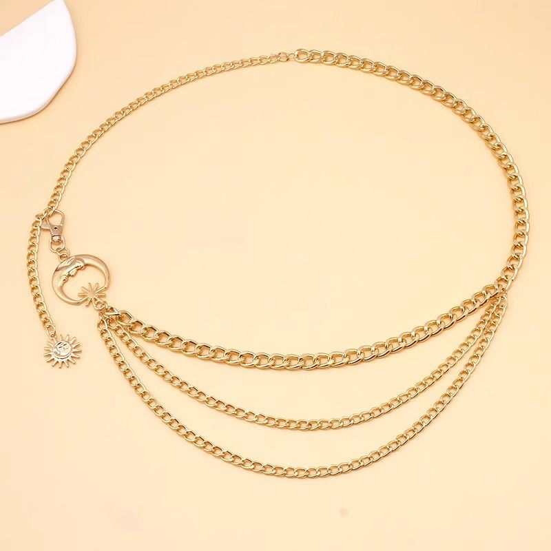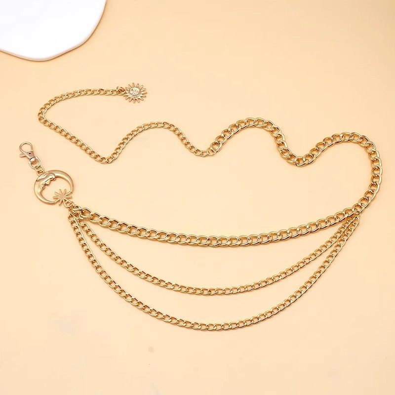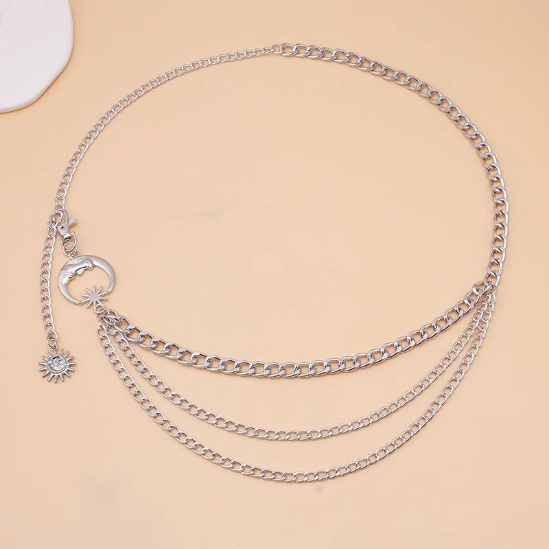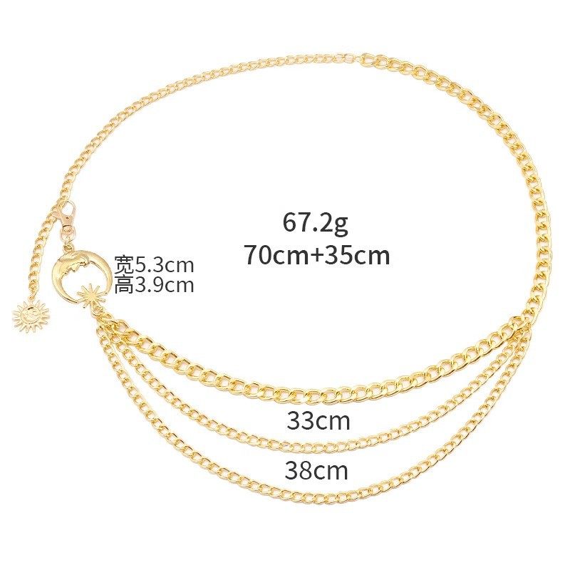 European and American Fashion Jewelry Moon Multi-Layer Metal Versatile Chain Waist Chain Fashion Belt Hip-Hop Punk Sun Crescent