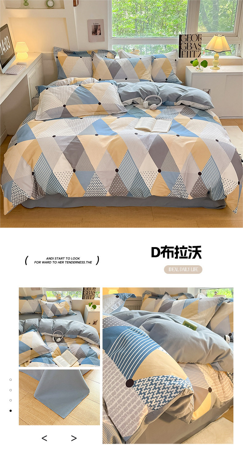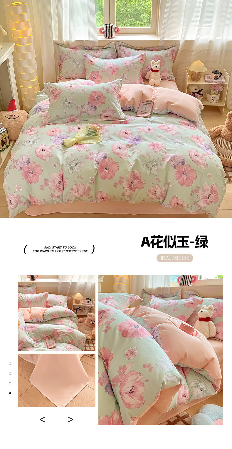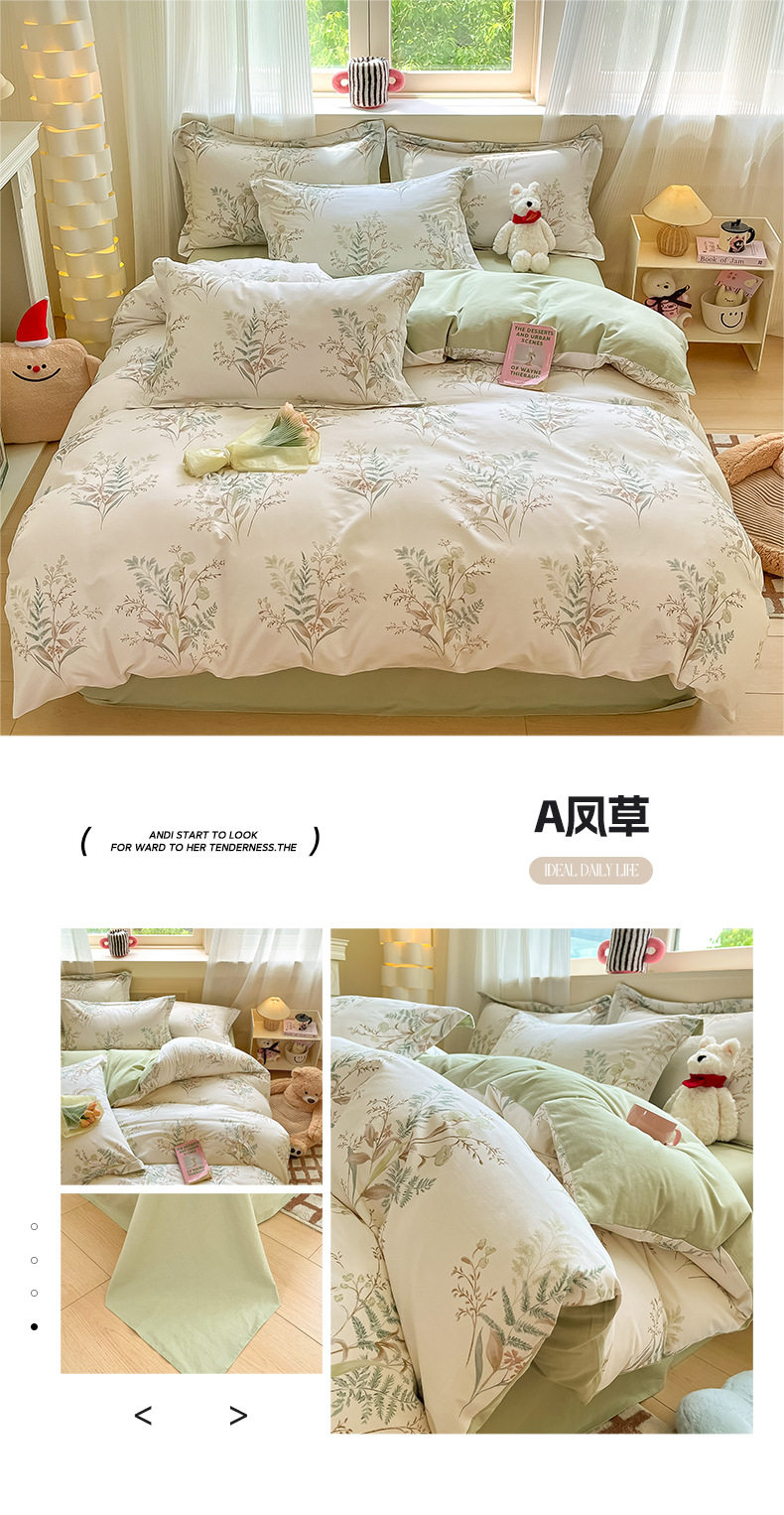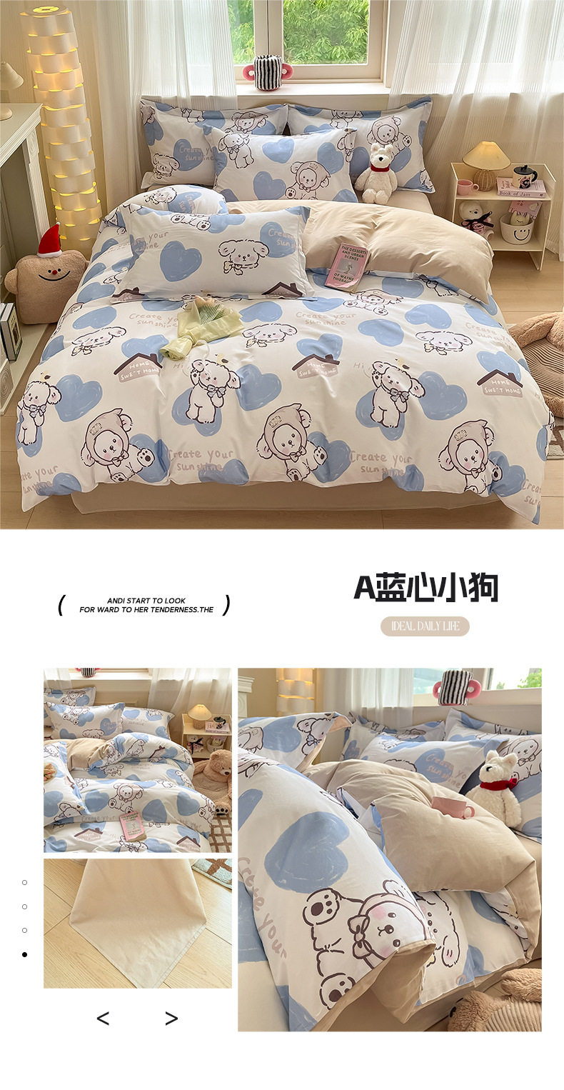 | Dimensions | 1.2m bed sheet three-piece set, quilt cover 1.6*2.1m bed sheet 1.8*2.3m pillowcase*1,1.5m bed sheet four-piece set, quilt cover 2.0*2.3m bed sheet 2.4*2.5m pillowcase*2,1.8m bed sheet four-piece set, quilt cover 2.0*2.3m bed sheet 2.4*2.5m pillowcase*2,2.0m bed sheet four-piece set, quilt cover 2.2*2.4m bed sheet 2.4*2.7m pillowcase*2,1.2m fitted sheet three-piece set, quilt cover 1.5*2.0m fitted sheet 1.2*2.0m pillowcase*1,1.5m fitted sheet set of four, quilt cover 2.0*2.3m fitted sheet 1.5*2.0m pillowcase*2,1.8m fitted sheet set of four, quilt cover 2.0*2.3m fitted sheet 1.8*2.0m pillowcase*2,Extra large 1.8m fitted sheet set of four, quilt cover 2.2*2.4m fitted sheet 1.8*2.0m pillowcase*2 |