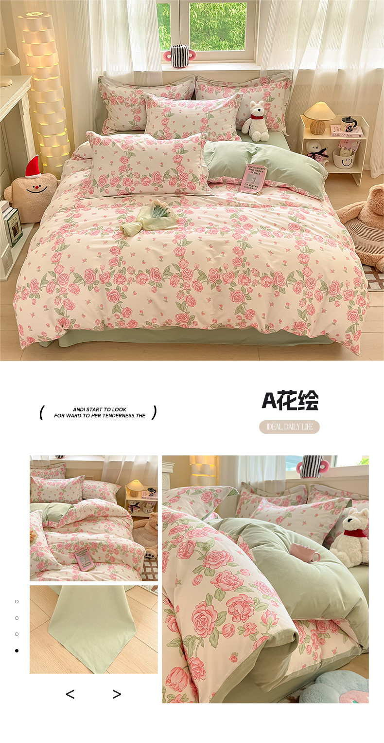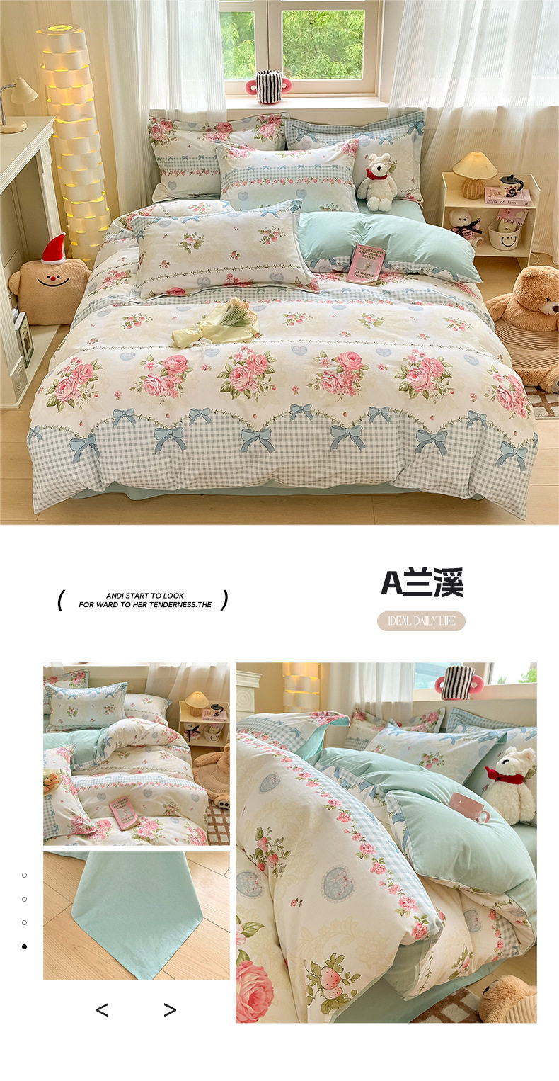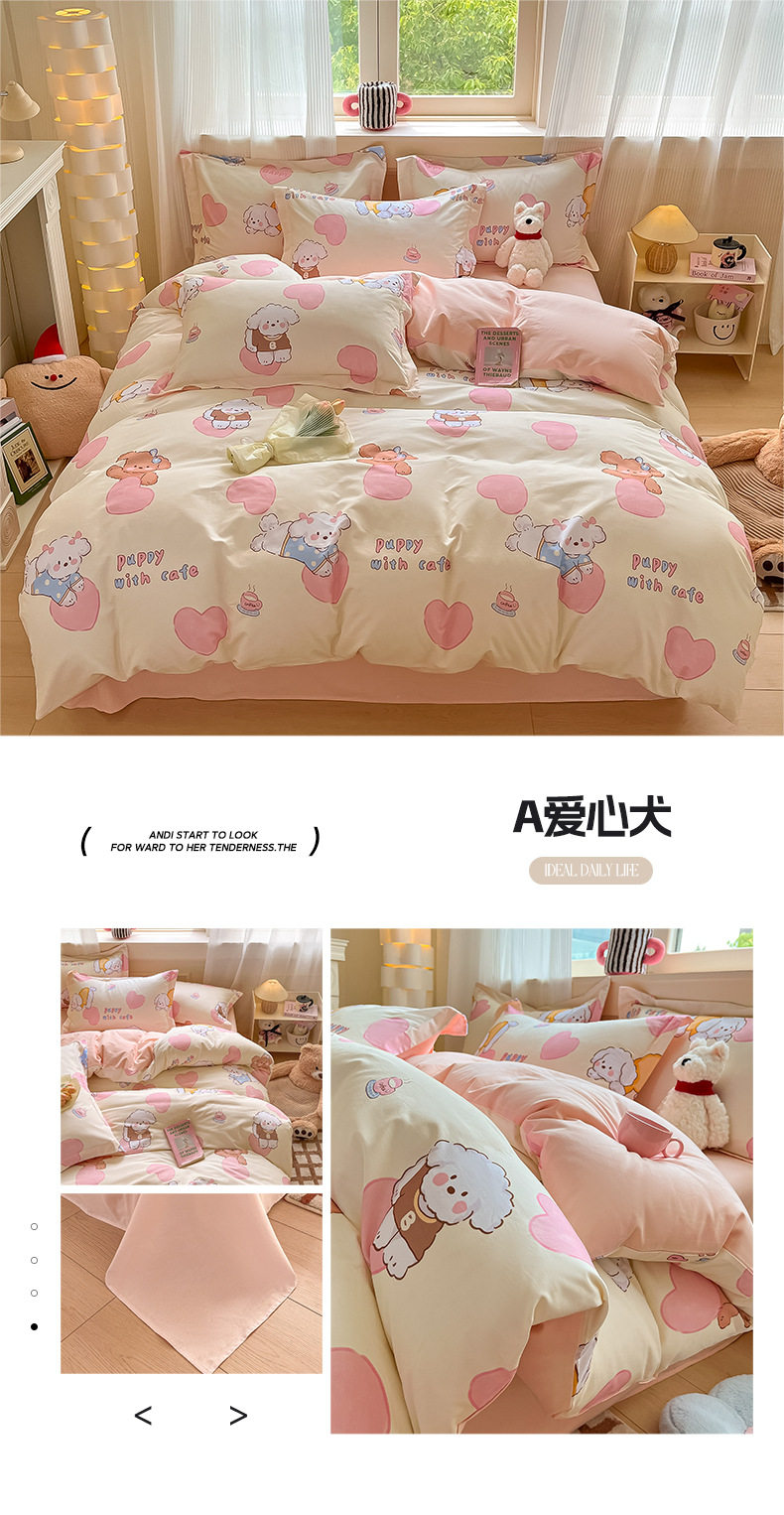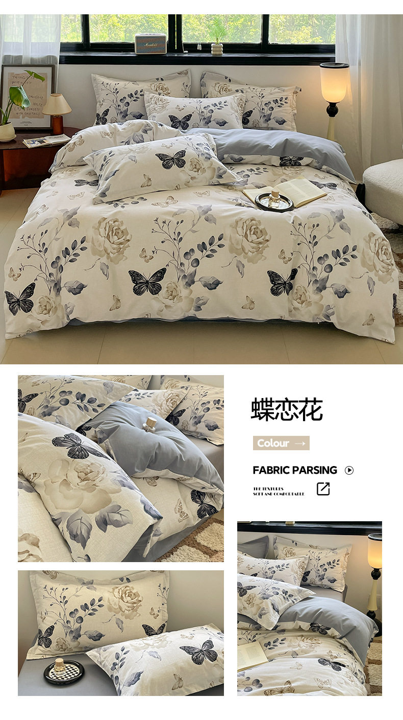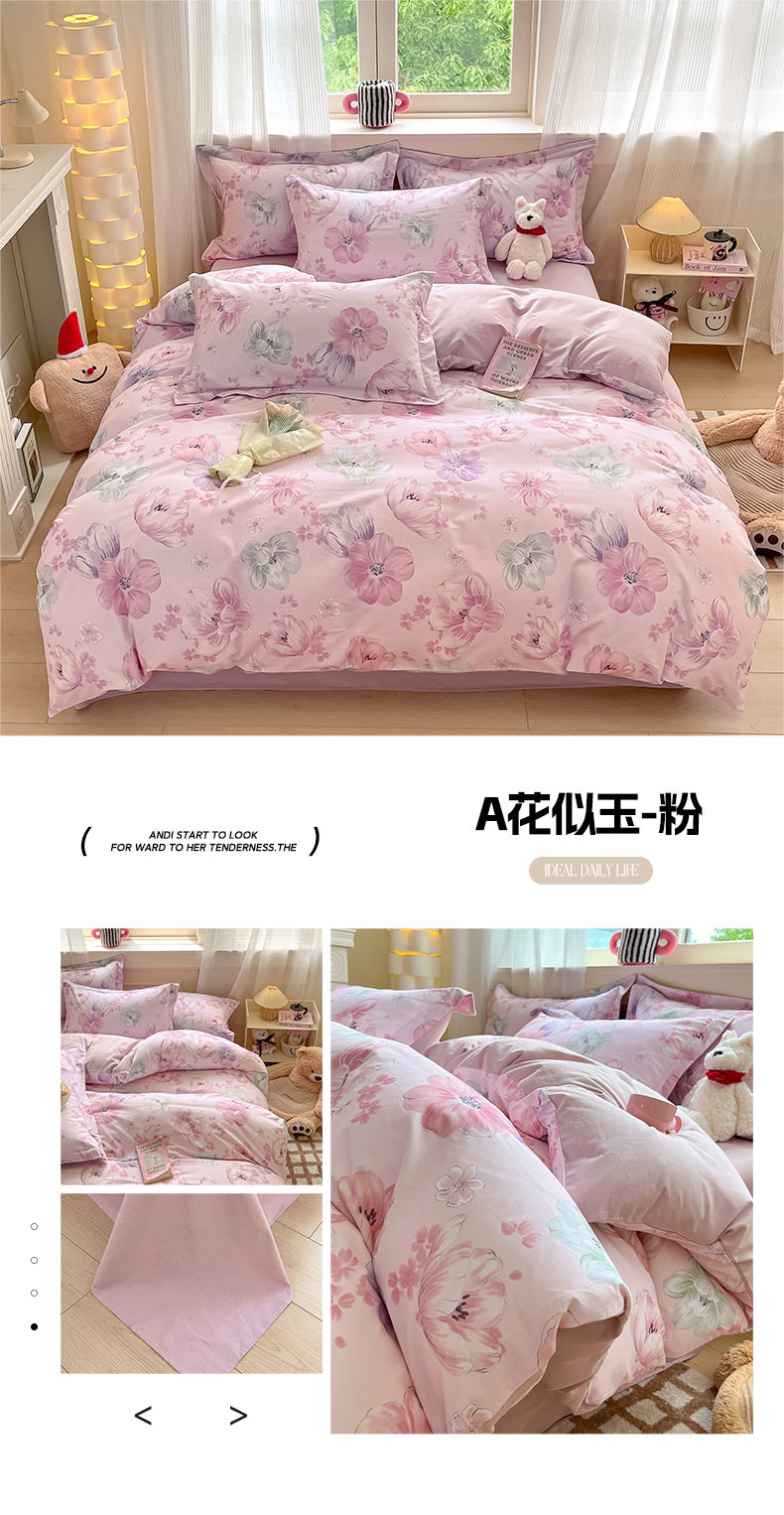 | Dimensions | 1.2m bed sheet three-piece set, quilt cover 1.6*2.1m bed sheet 1.8*2.3m pillowcase*1,1.5m bed sheet four-piece set, quilt cover 2.0*2.3m bed sheet 2.4*2.5m pillowcase*2,1.8m bed sheet four-piece set, quilt cover 2.0*2.3m bed sheet 2.4*2.5m pillowcase*2,2.0m bed sheet four-piece set, quilt cover 2.2*2.4m bed sheet 2.4*2.7m pillowcase*2,1.2m fitted sheet three-piece set, quilt cover 1.5*2.0m fitted sheet 1.2*2.0m pillowcase*1,1.5m fitted sheet set of four, quilt cover 2.0*2.3m fitted sheet 1.5*2.0m pillowcase*2,1.8m fitted sheet set of four, quilt cover 2.0*2.3m fitted sheet 1.8*2.0m pillowcase*2,Extra large 1.8m fitted sheet set of four, quilt cover 2.2*2.4m fitted sheet 1.8*2.0m pillowcase*2 |
