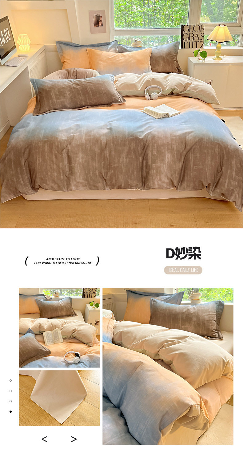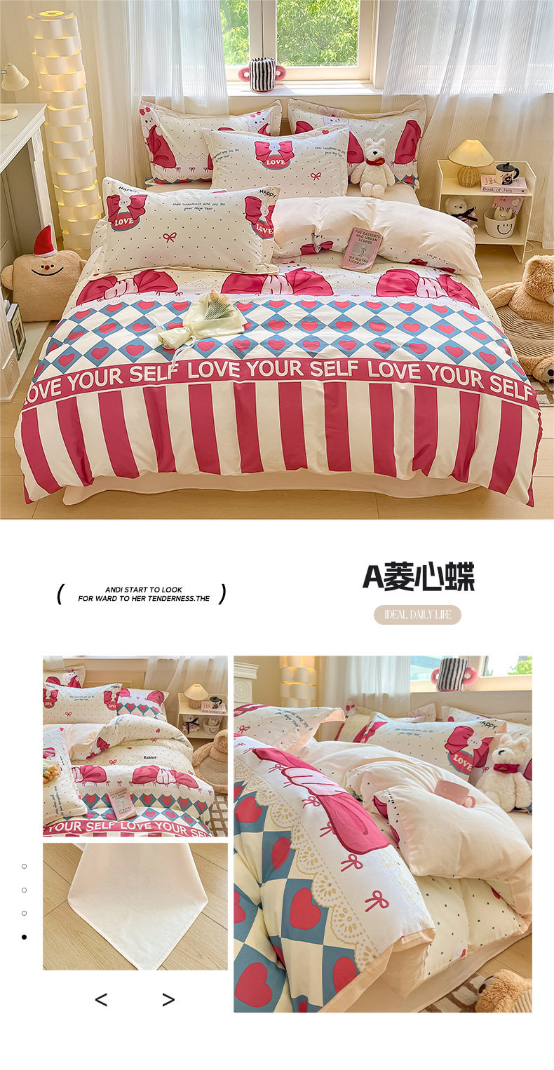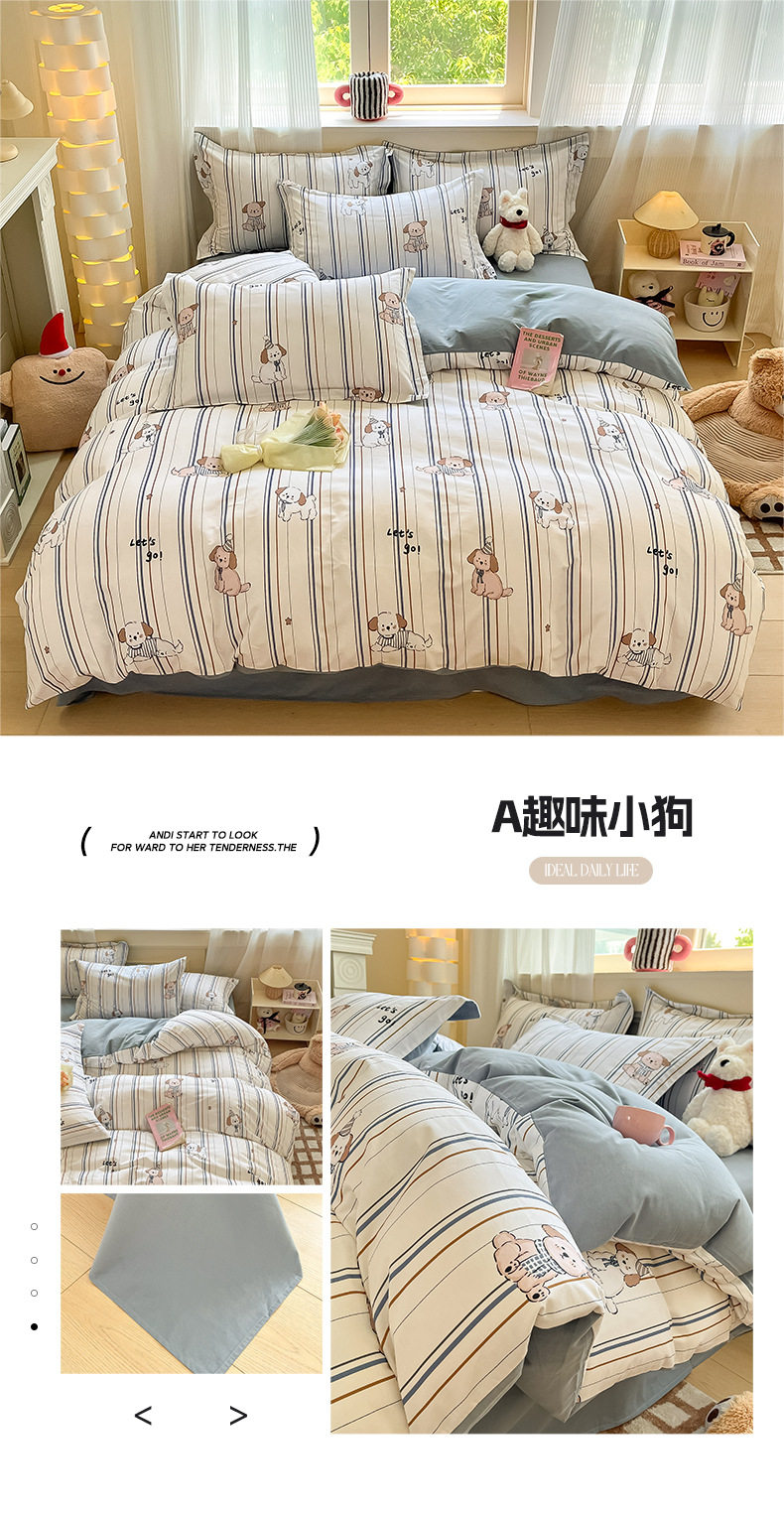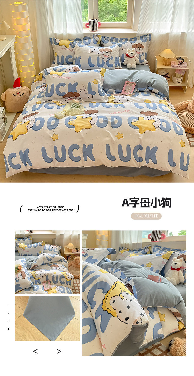 | Dimensions | 1.2m bed sheet three-piece set, quilt cover 1.6*2.1m bed sheet 1.8*2.3m pillowcase*1,1.5m bed sheet four-piece set, quilt cover 2.0*2.3m bed sheet 2.4*2.5m pillowcase*2,1.8m bed sheet four-piece set, quilt cover 2.0*2.3m bed sheet 2.4*2.5m pillowcase*2,2.0m bed sheet four-piece set, quilt cover 2.2*2.4m bed sheet 2.4*2.7m pillowcase*2,1.2m fitted sheet three-piece set, quilt cover 1.5*2.0m fitted sheet 1.2*2.0m pillowcase*1,1.5m fitted sheet set of four, quilt cover 2.0*2.3m fitted sheet 1.5*2.0m pillowcase*2,1.8m fitted sheet set of four, quilt cover 2.0*2.3m fitted sheet 1.8*2.0m pillowcase*2,Extra large 1.8m fitted sheet set of four, quilt cover 2.2*2.4m fitted sheet 1.8*2.0m pillowcase*2 |