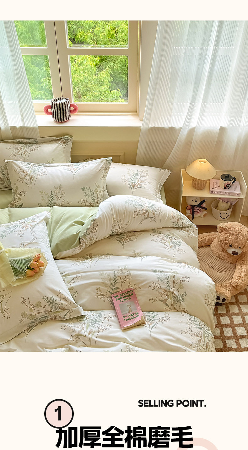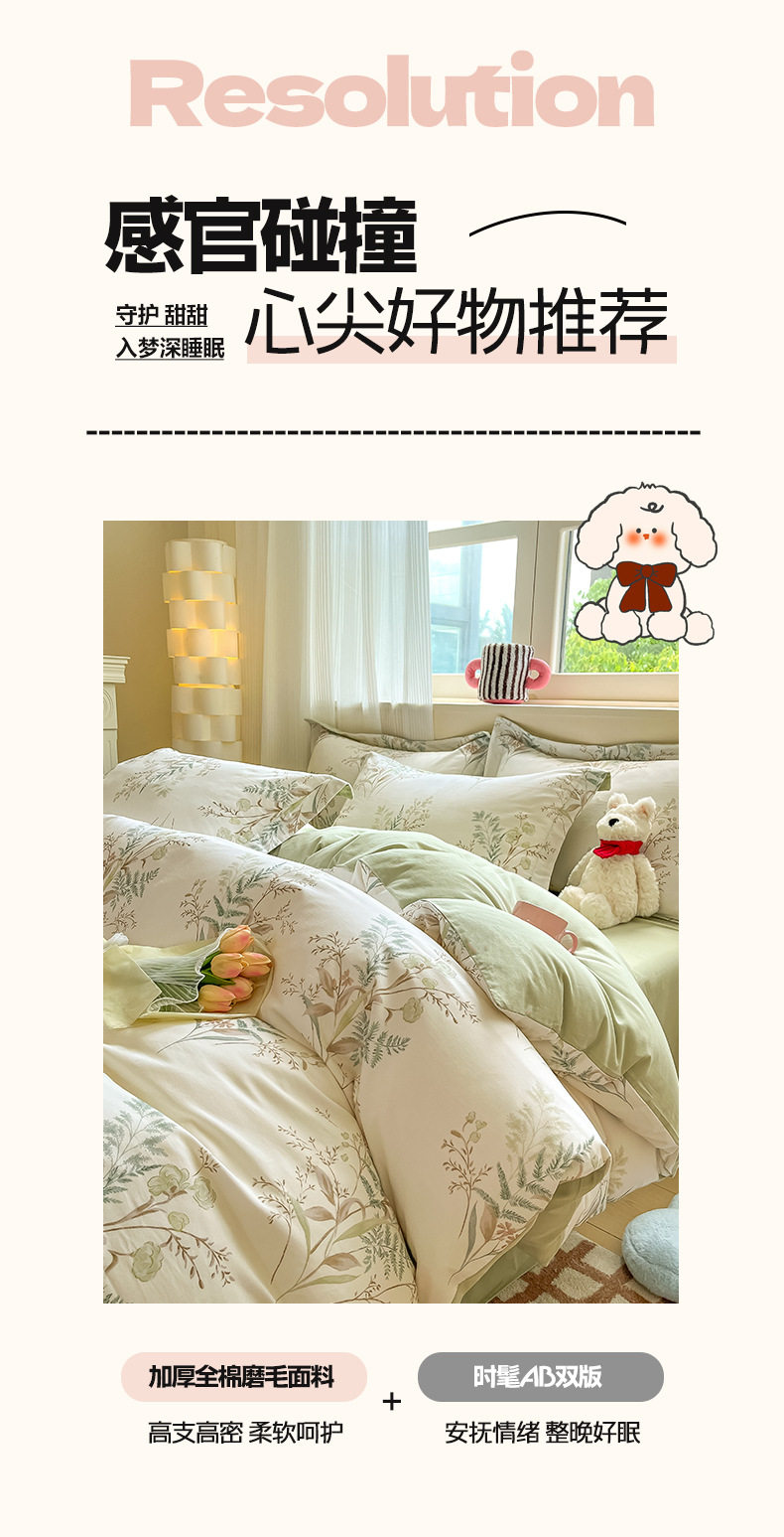 Autumn and Winter Thickeneded Brushed Four-Piece Set, Class a Pure Cotton Bedding, Nantong Home Textiles, Cotton Bed Bed Sheetss and Quilt Cover Three-Piece Set