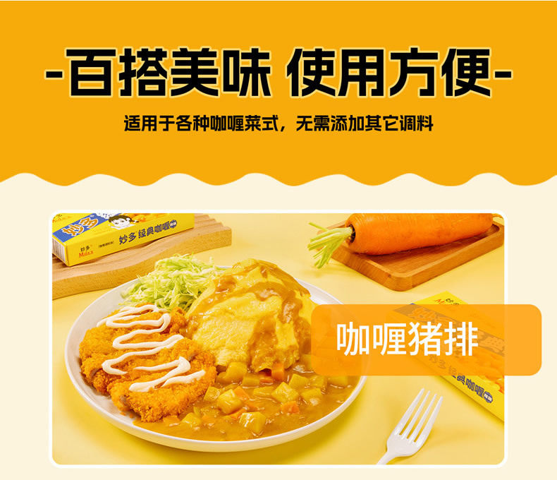 Miaoduo Classic Curry Cubes for Home Use, Original Slightly Spicy Japanese Yellow Curry Seasoning for Children, Suitable for Chicken Rice, Fish, and Egg Dishes