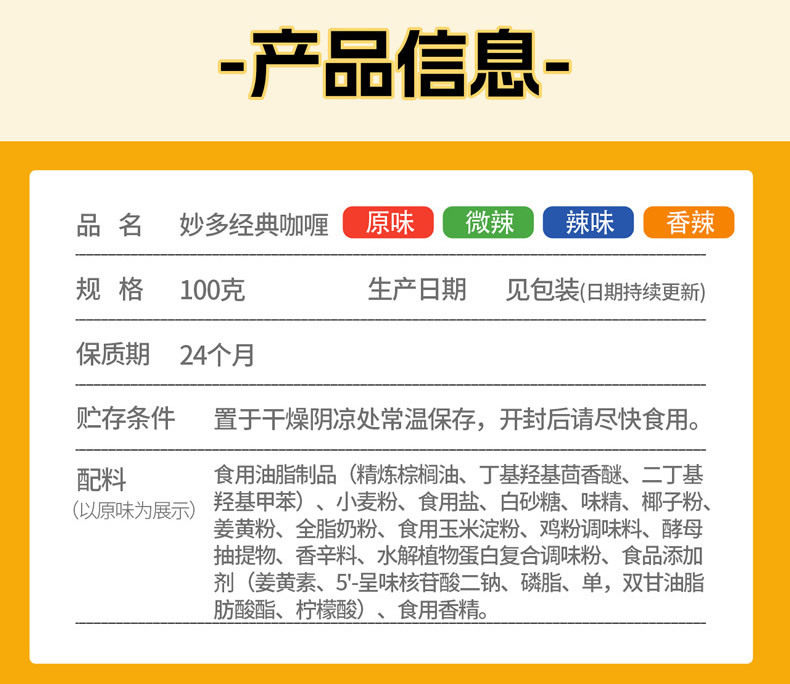 | Packaging specifications | Original flavor 100g [spicy level 1],Mildly spicy 100g [spicy level 2],Spicy 100g [spicy level 3],Spicy 100g [spicy level 4] |