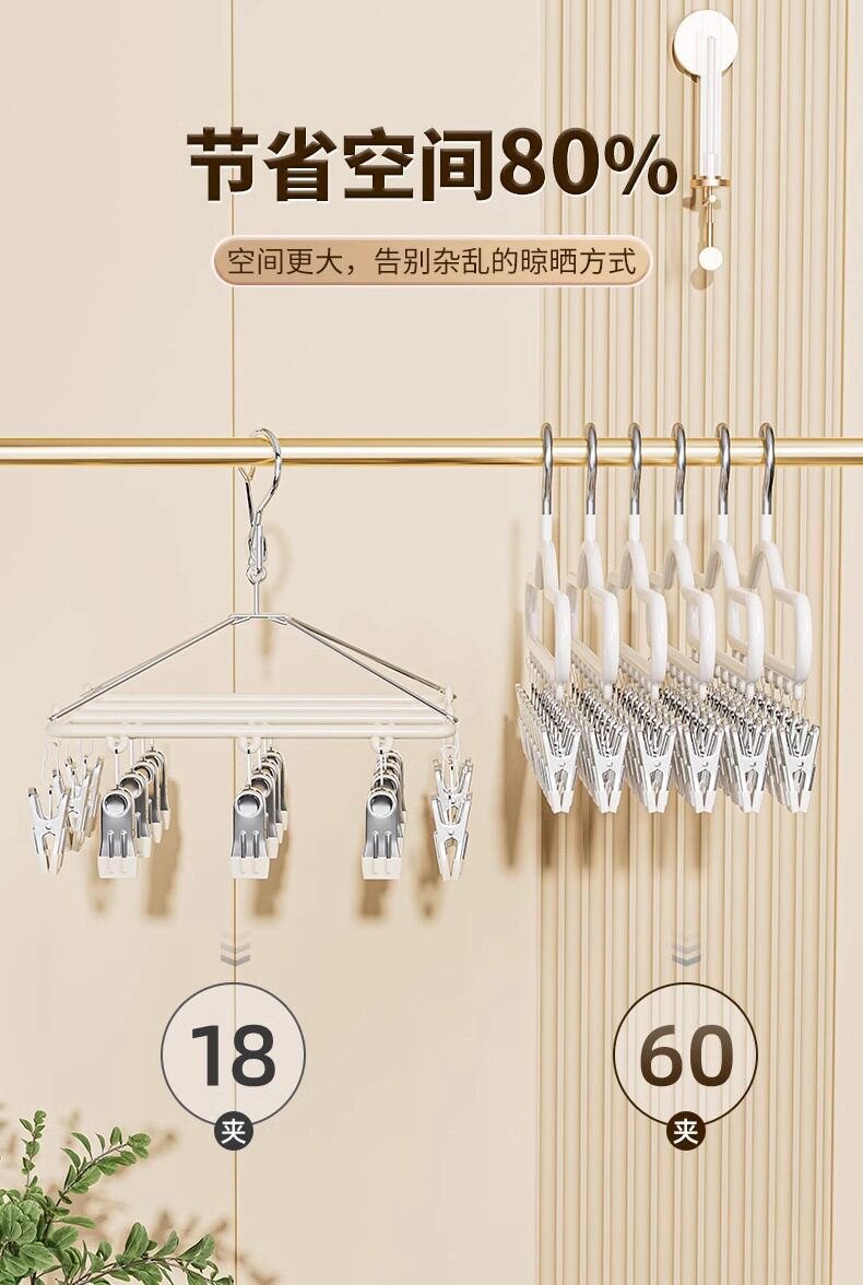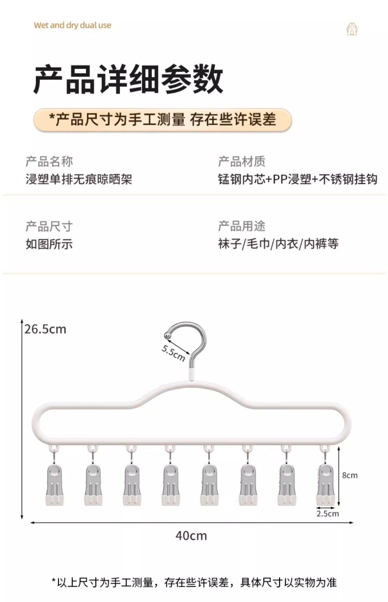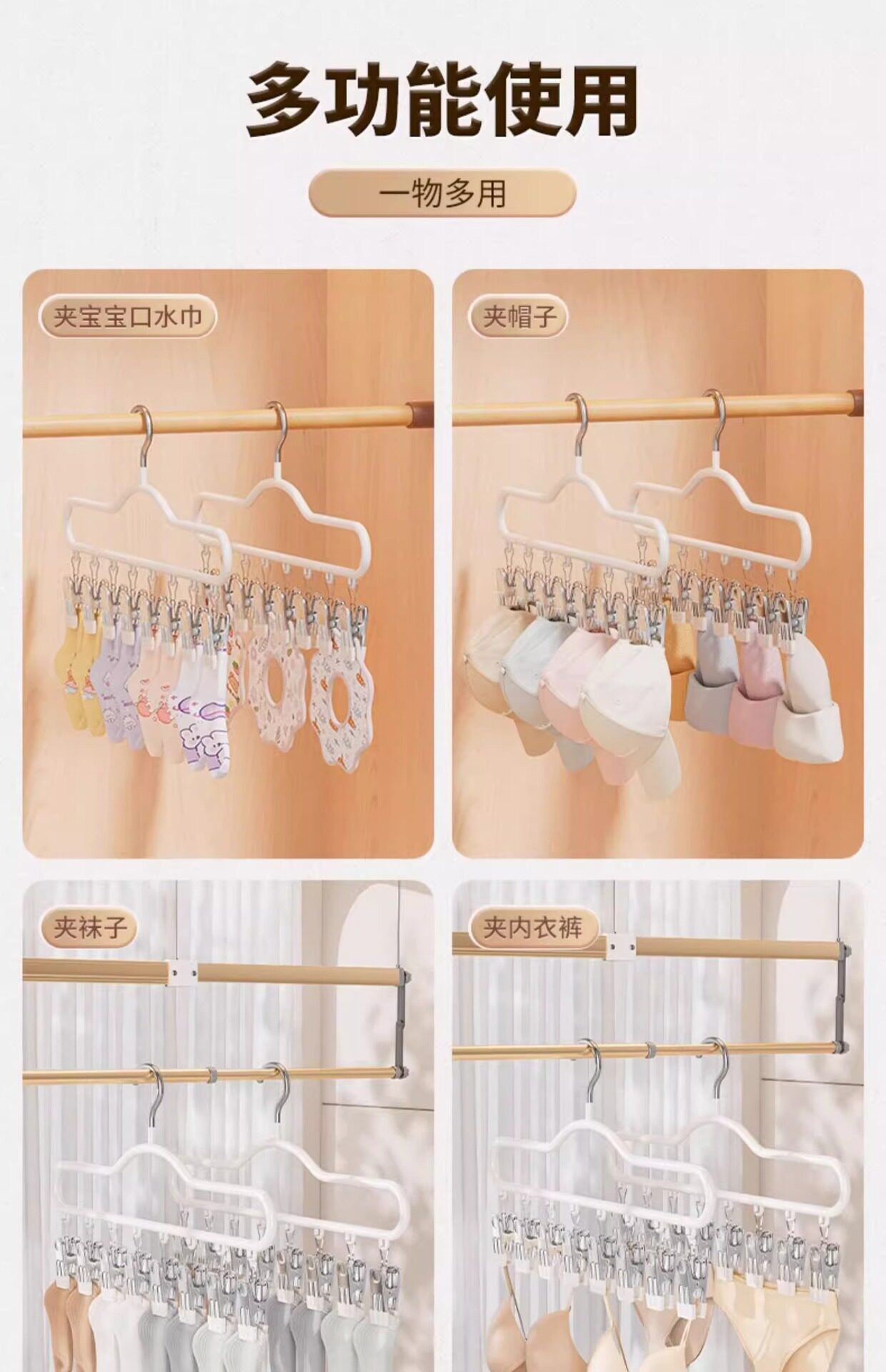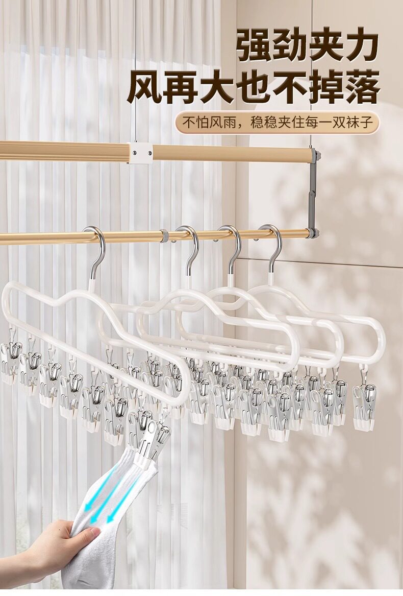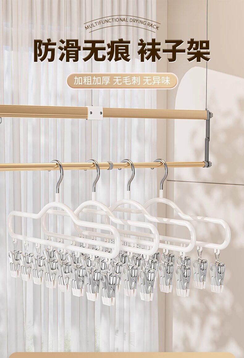 Sock Drying Rack for Home Use, Seamless Multi-Clip Clothes Hanger, Thickened Hanger, Multifunctional Student Dormitory Sock Clip