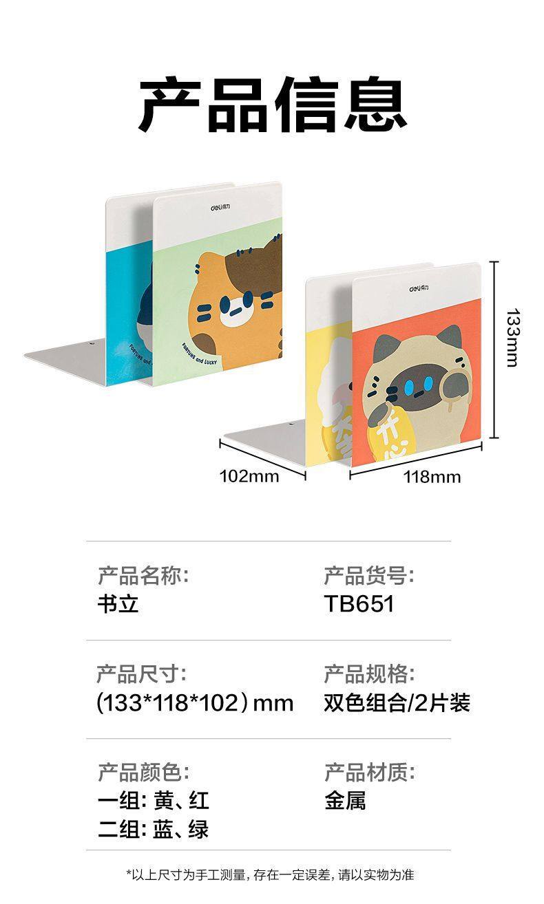 Deli Tb650 Metal Bookend Cartoon Cute Book Clip Book Support Fixed Book Baffle Desktop Storage