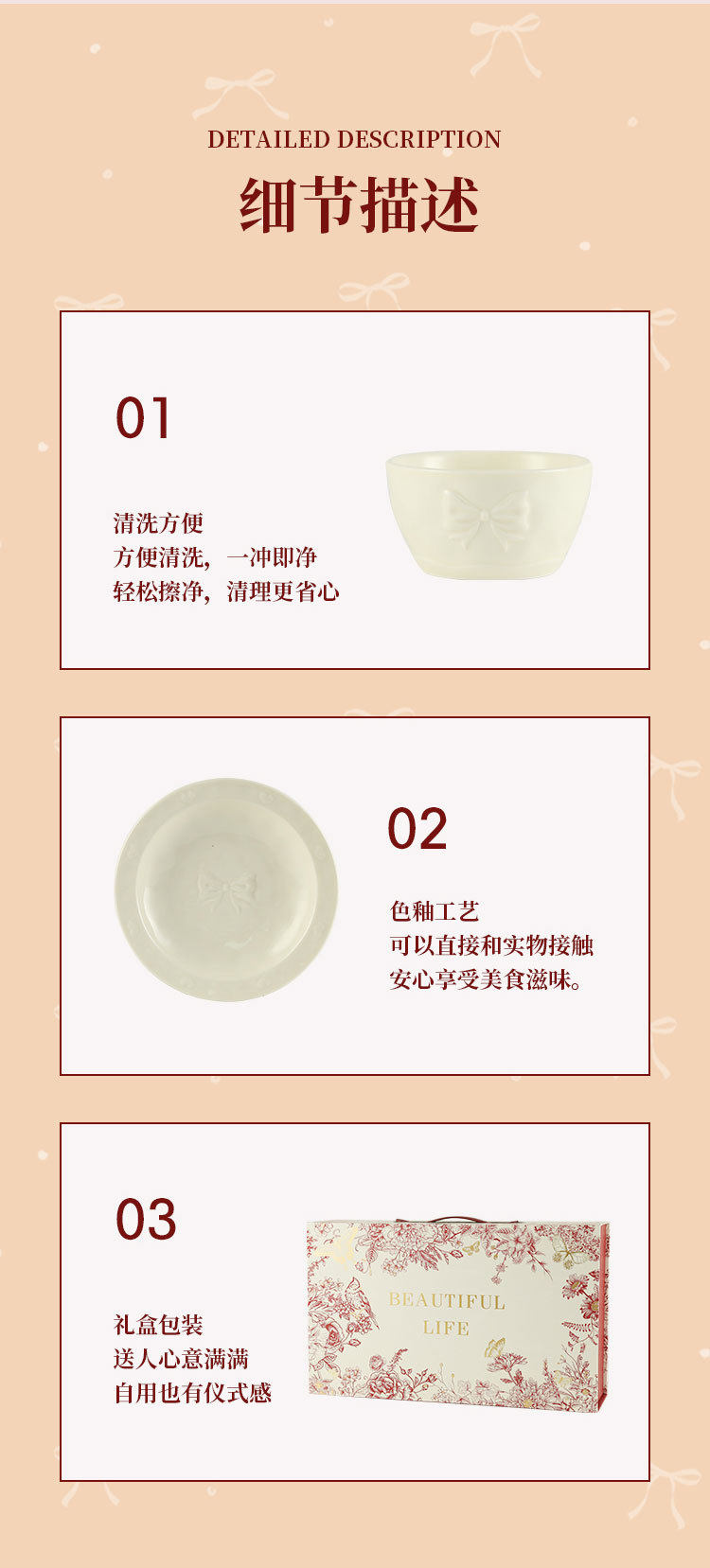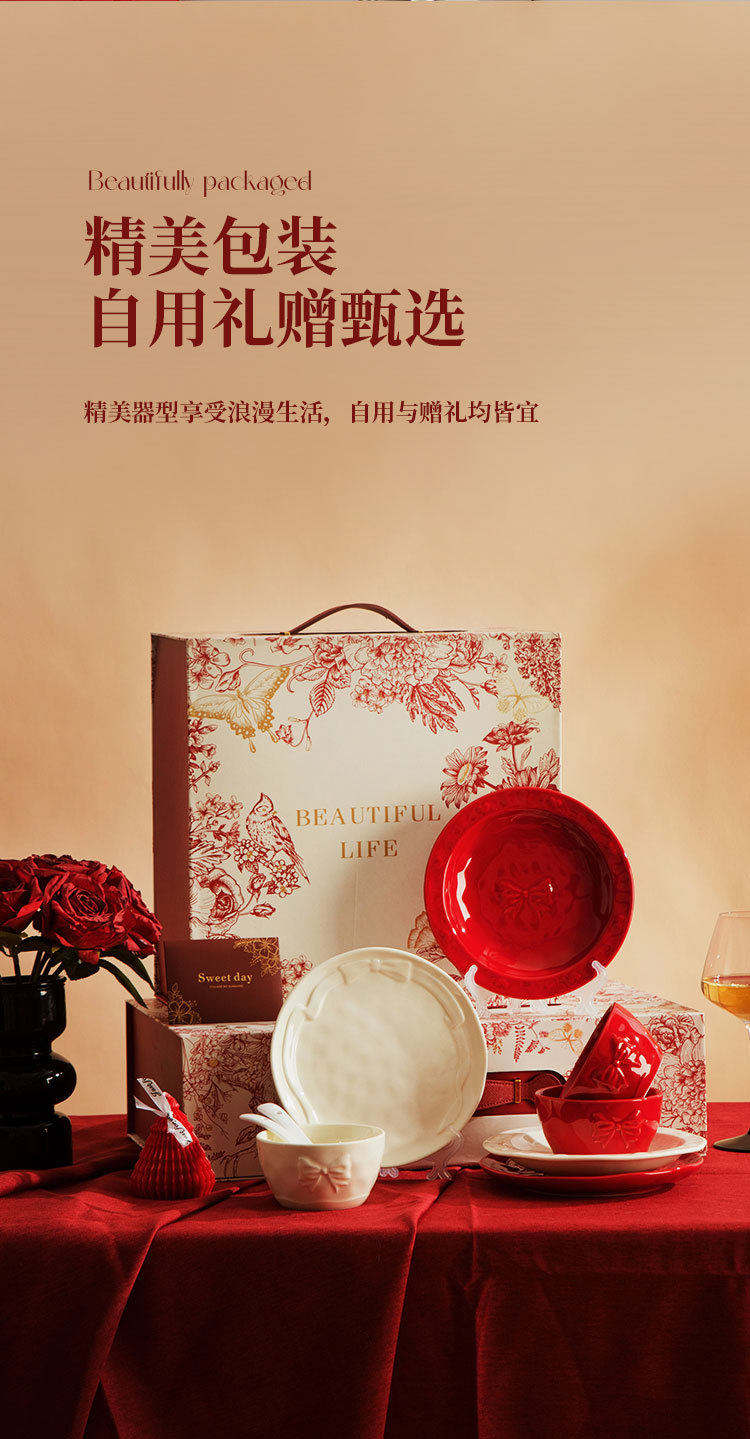 | Color | [brocade box] red and white mixed bow tableware 11-piece set—(2 cups, 2 bowls, 2 plates),[brocade box] red and white mixed bow tableware 11-piece set - (2 cups, 2 bowls, 2 plates),[brocade box] red and white mixed bow tableware 11-piece set - (4 bowls and 2 plates),[brocade box] red and white mixed bow tableware 13-piece set - (4 bowls, 4 plates),[brocade box] red and white mixed bow tableware 11-piece set - (6 bowls, 2 plates) |