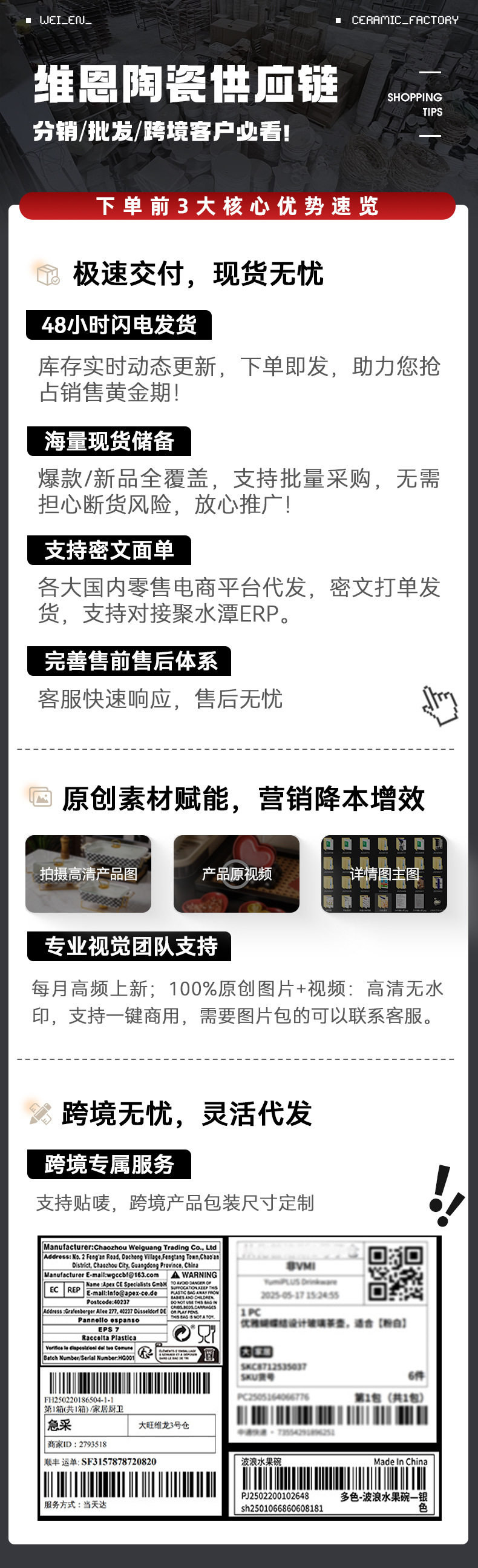 | Main downstream platforms | Ebay,Amazon,Wish,Aliexpress,Independent station,Lazada |