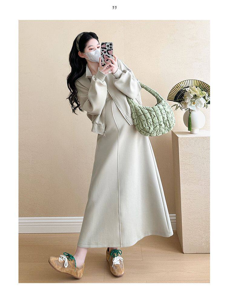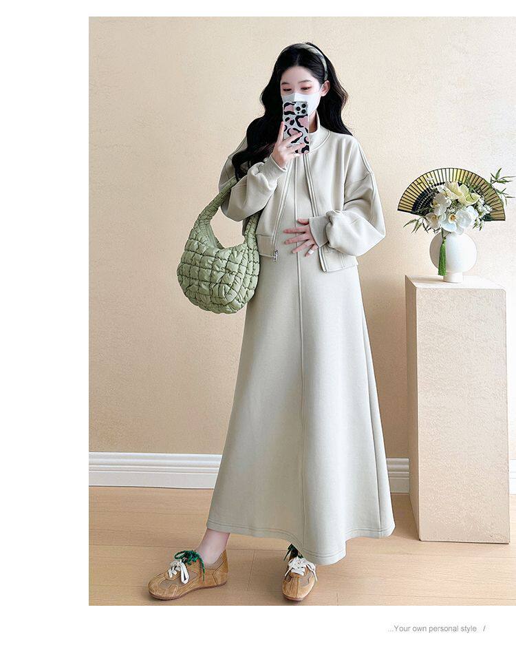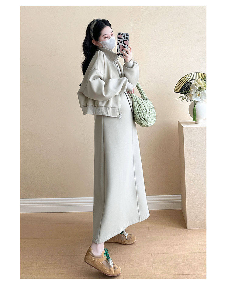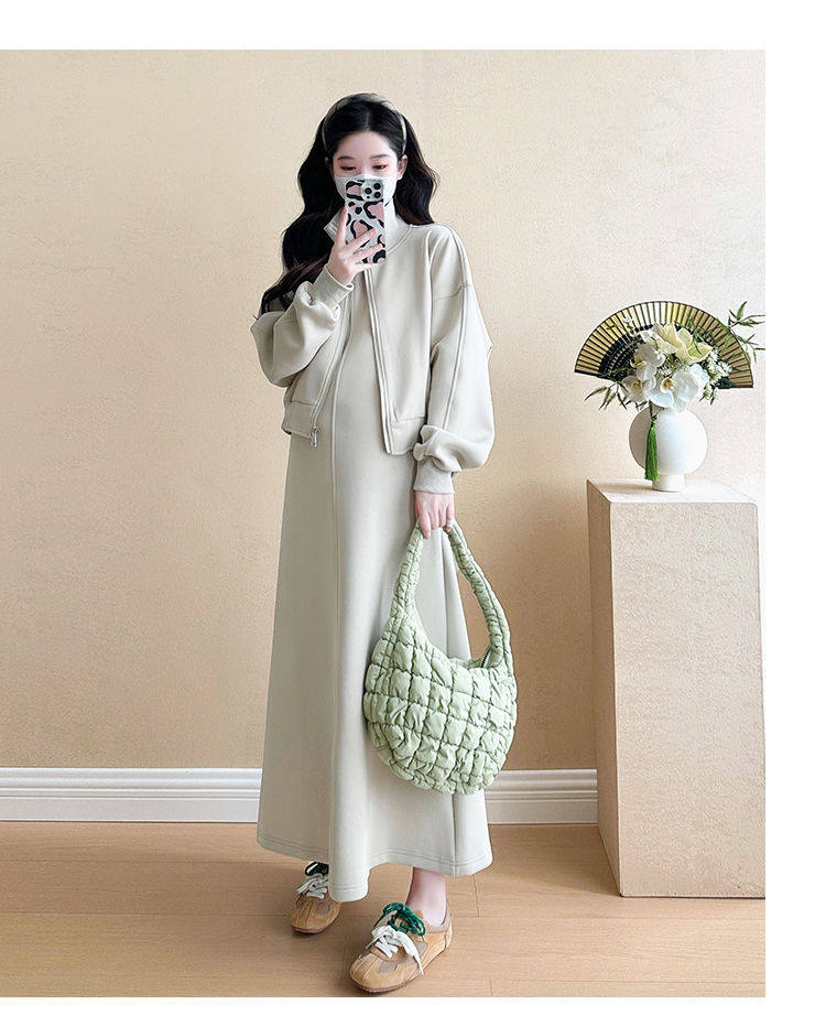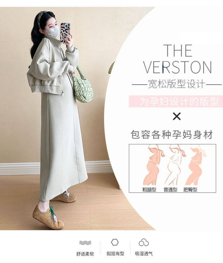 Maternity Wear Autumn Wear 2025 New Fashionable Sweatshirt Jacket Vest Skirt Two-Piece Suit Autumn and Winter Suit