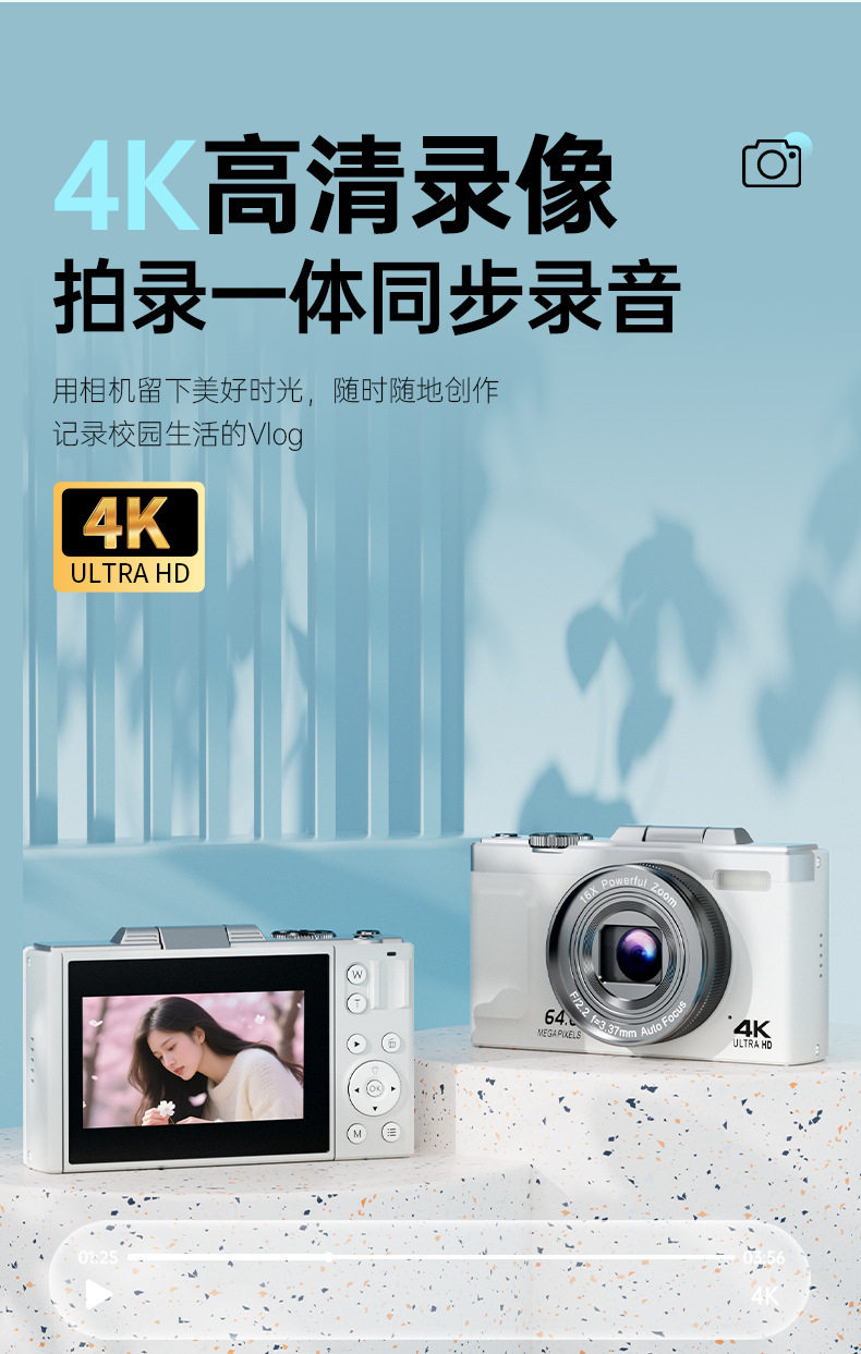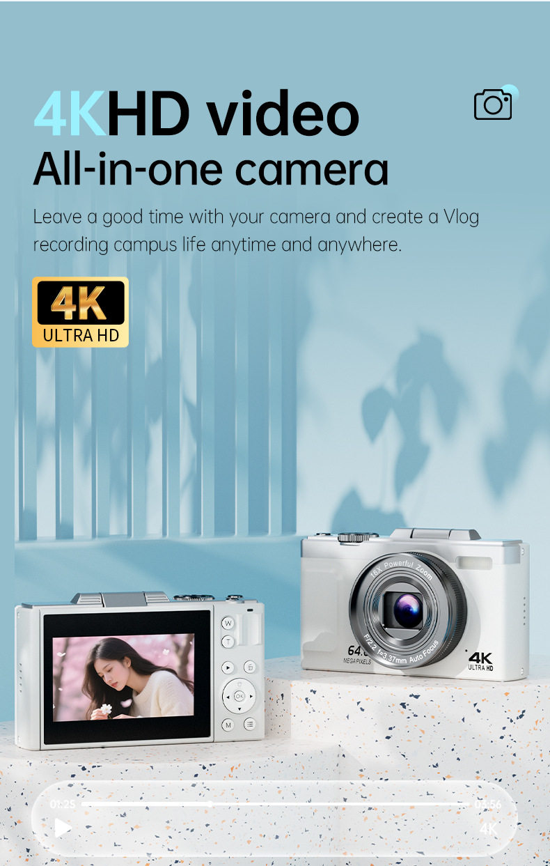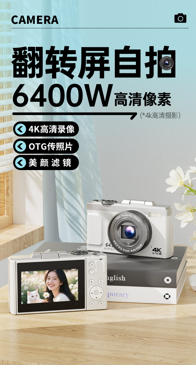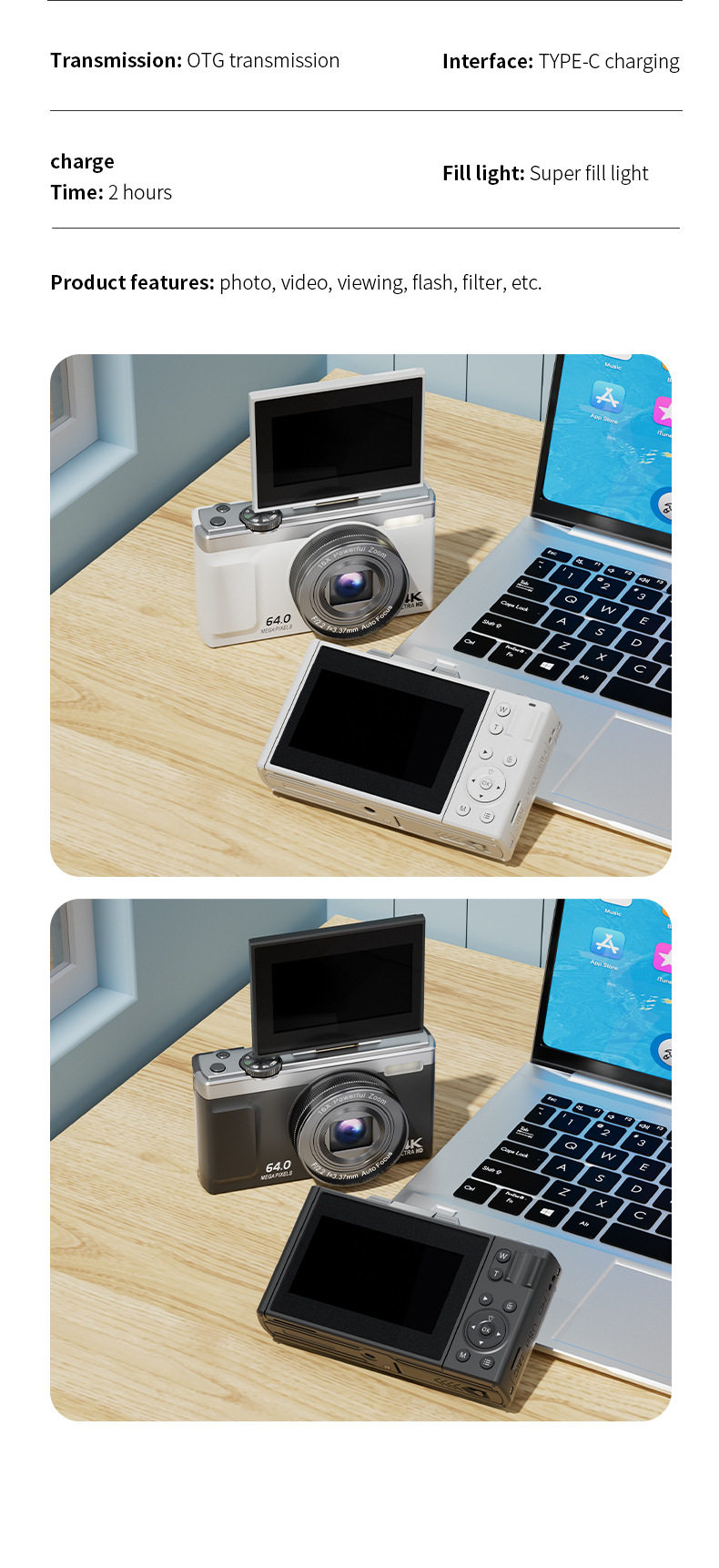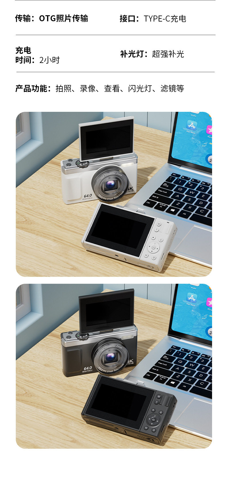New Mirrorless Digital Camera with Flip Screen for Selfie 4K High-Definition Student Party Travel Portable Upload Mobile Phone Wholesale