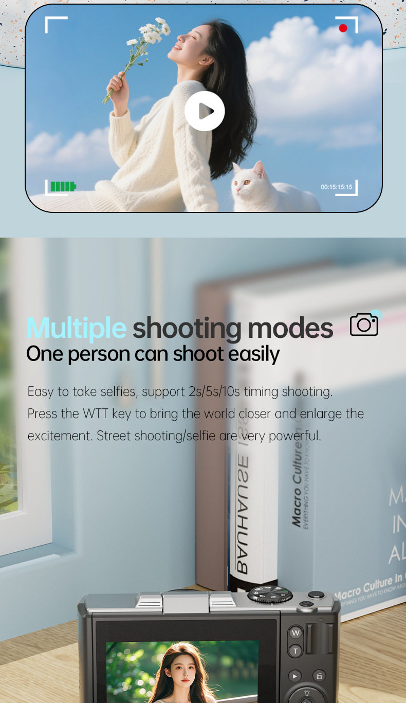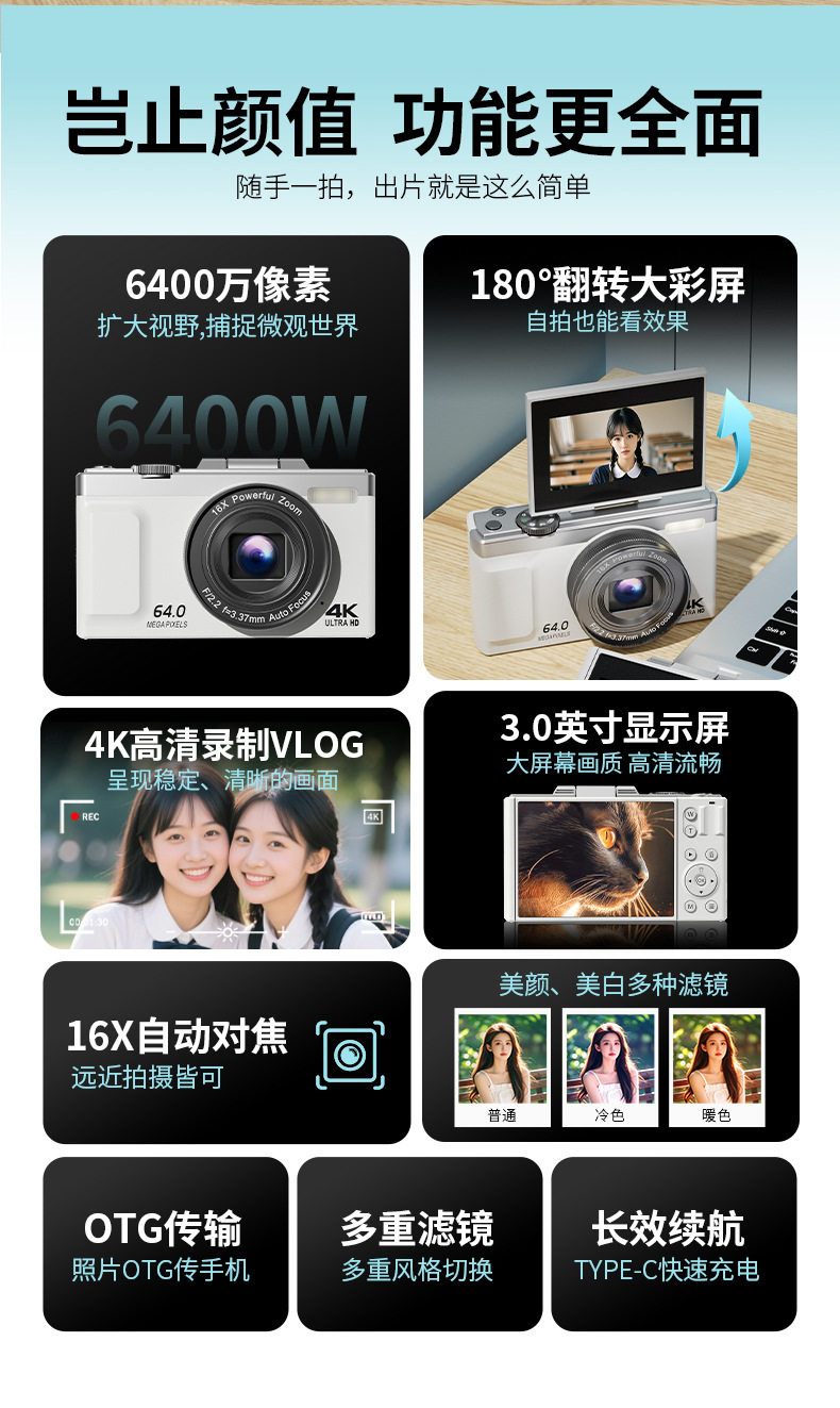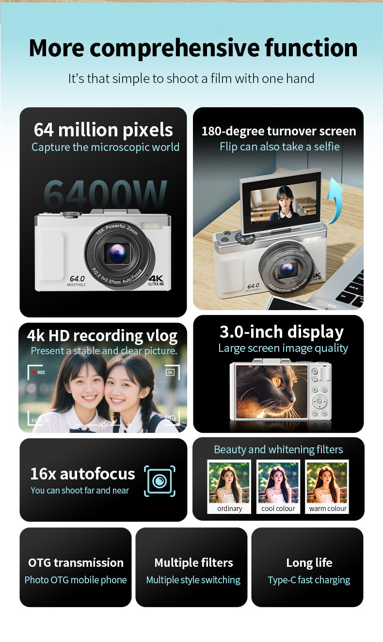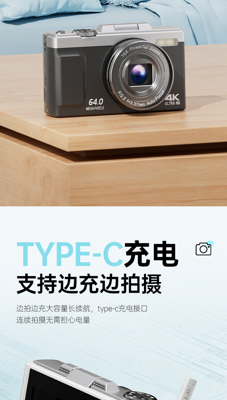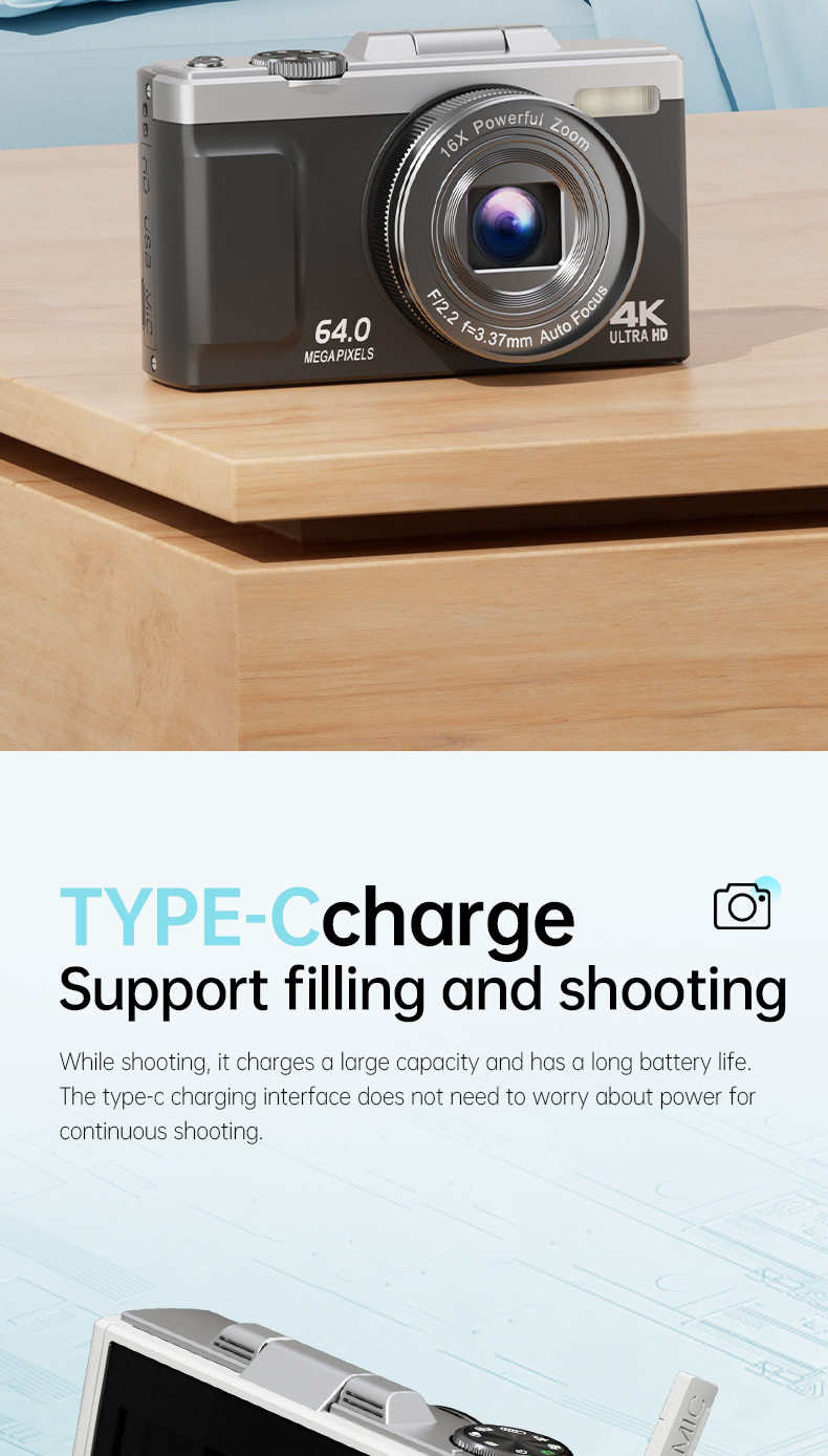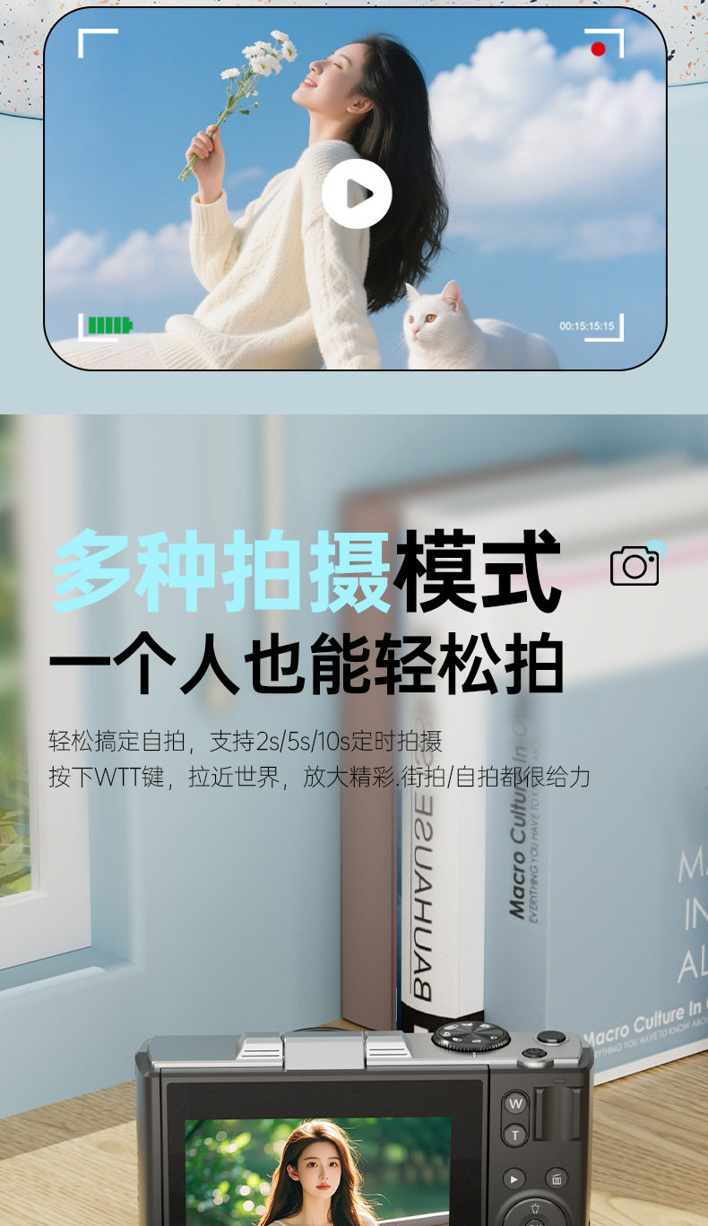 New Mirrorless Digital Camera with Flip Screen for Selfie 4K High-Definition Student Party Travel Portable Upload Mobile Phone Wholesale