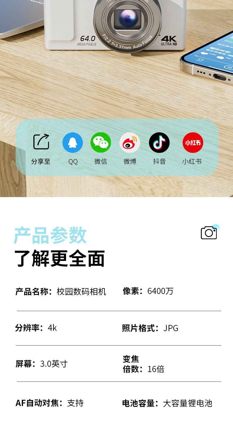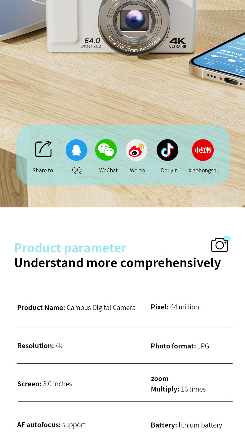 | Packing list | Camera*1 lanyard*1 storage bag*1 instruction manual*1 charging cable*1 |