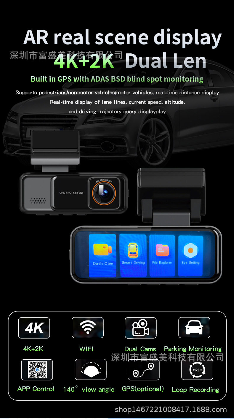New Cross-Border Car 4K High-Definition Front and Rear Dual Recording Wifi Mobile Phone Connection Gps Tracking Adas Driving Recorder