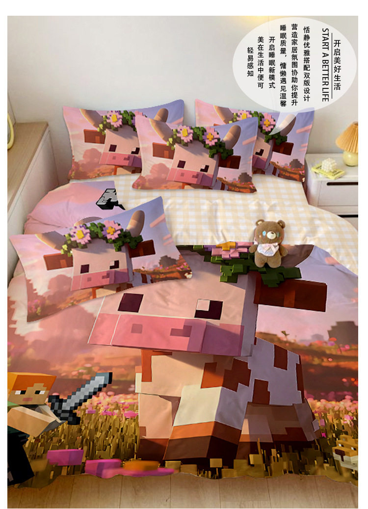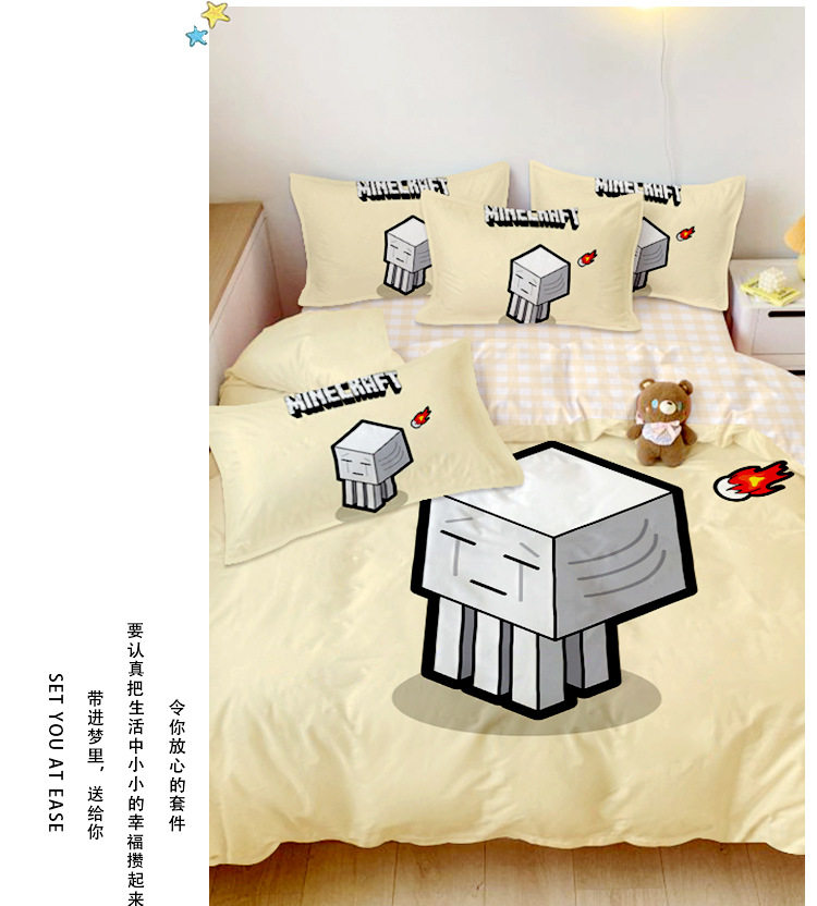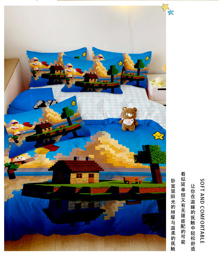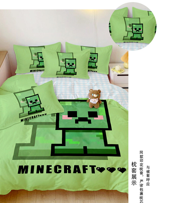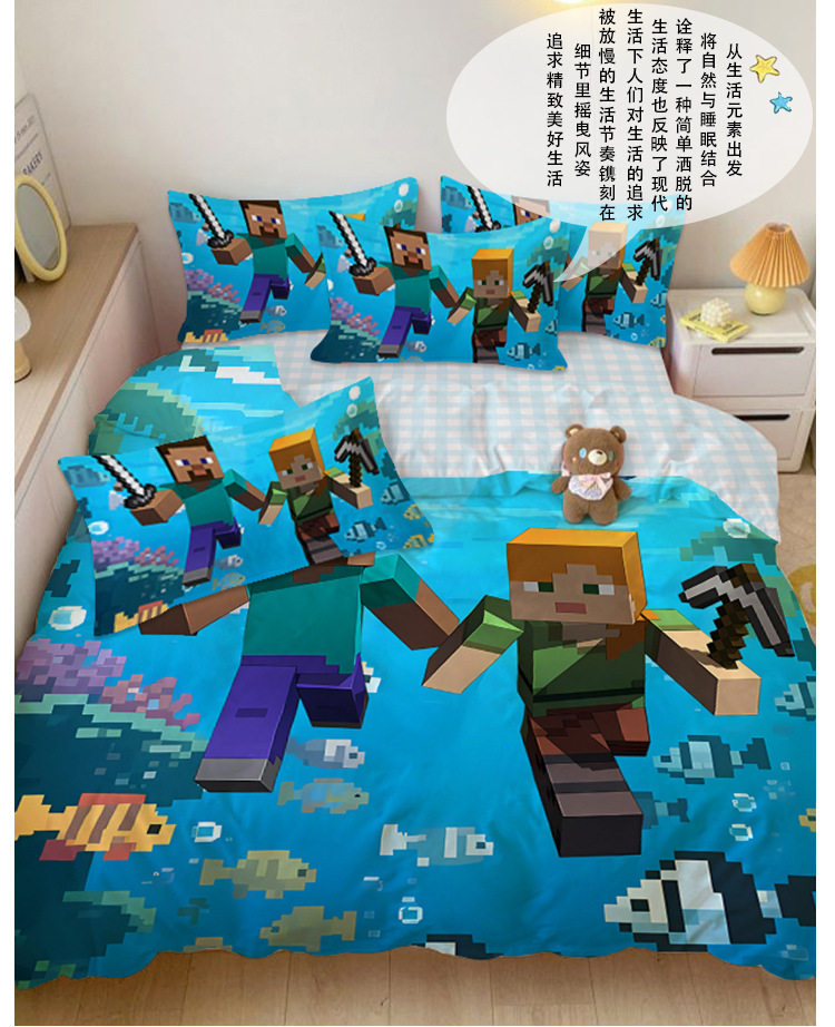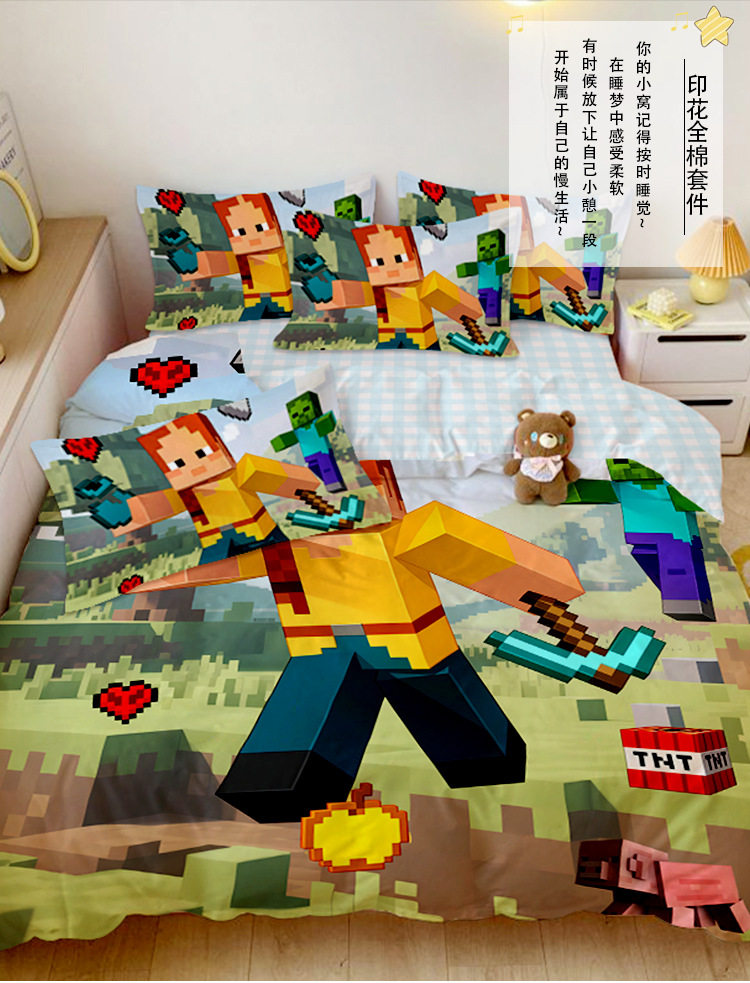 Minecraft Game All-Cotton Four-Piece Set Cartoon Steve Three-Piece Set Student Dormitory Home Bedroom Duvet Cover