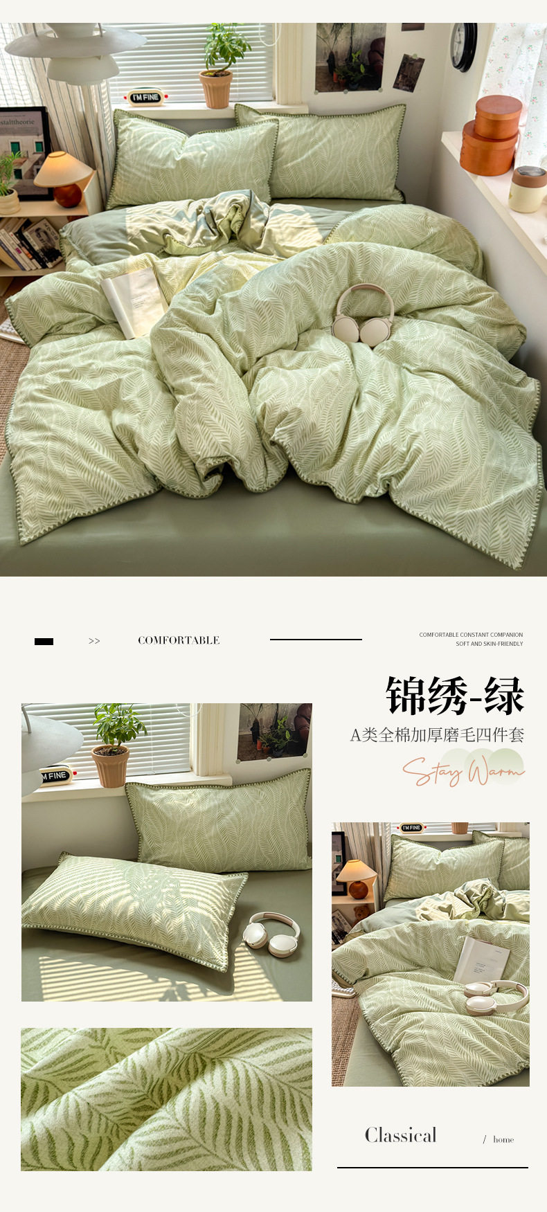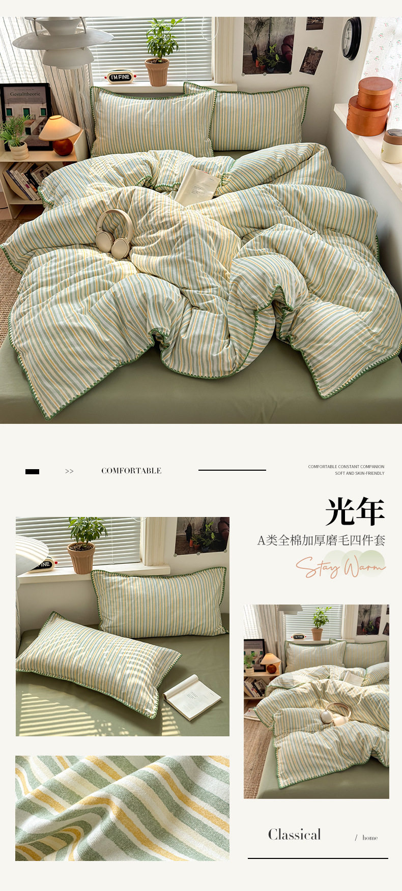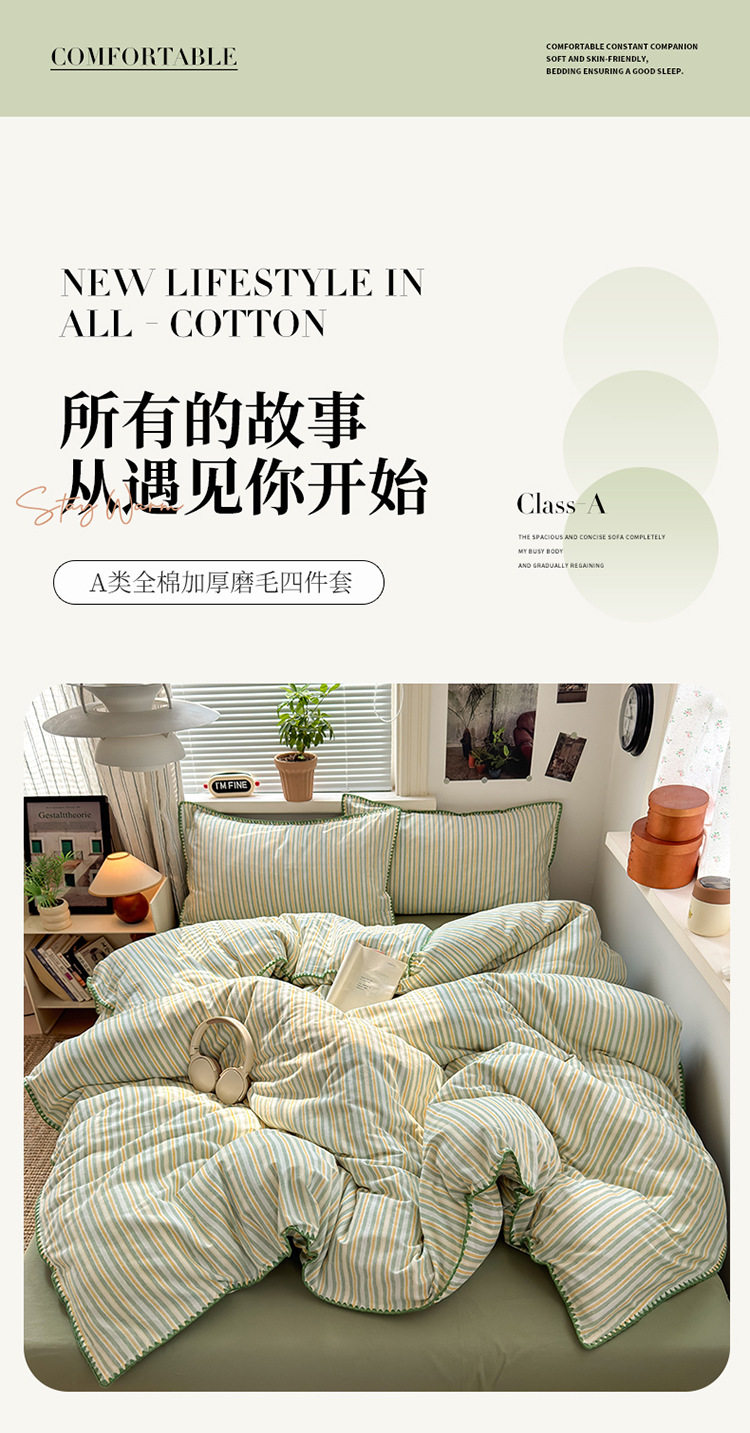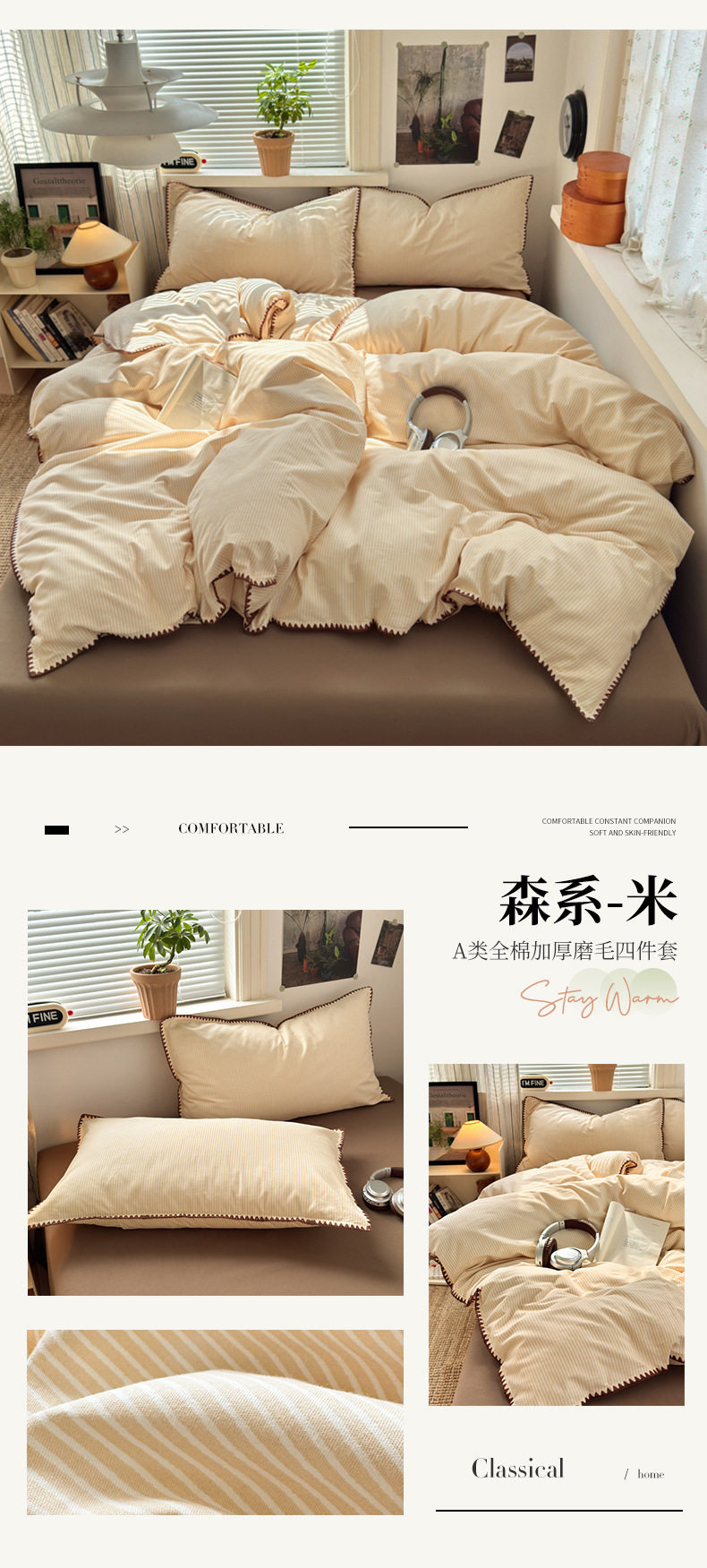 Shell-Edged Four-Piece Set, Brushed Pure Cotton Bedding, Bed Sheet, Duvet Cover, Quilt Cover, Fitted Sheet, Three-Piece Set for College Students