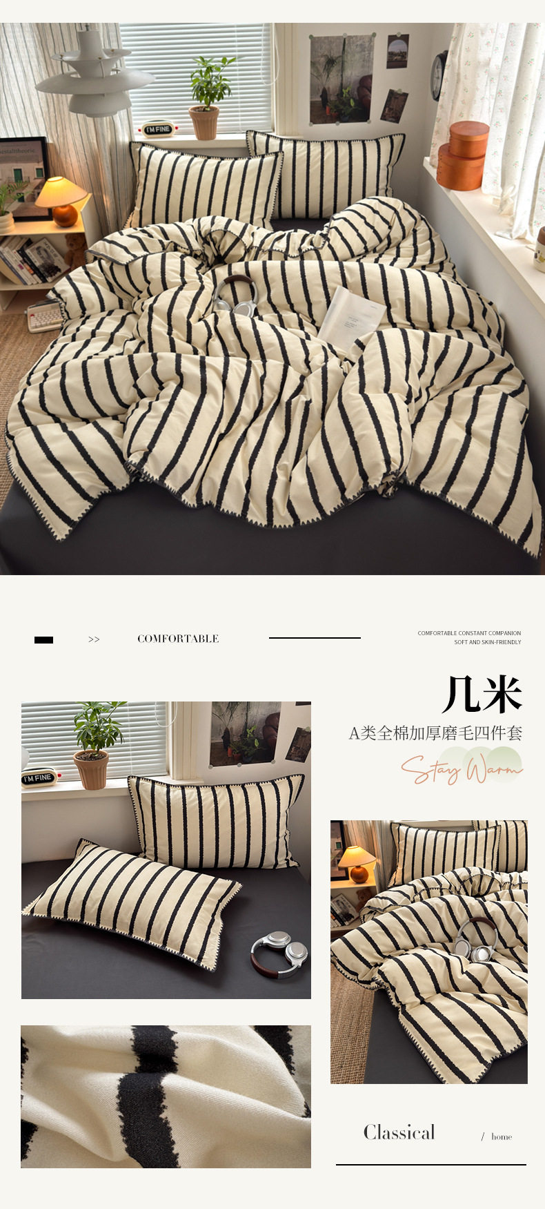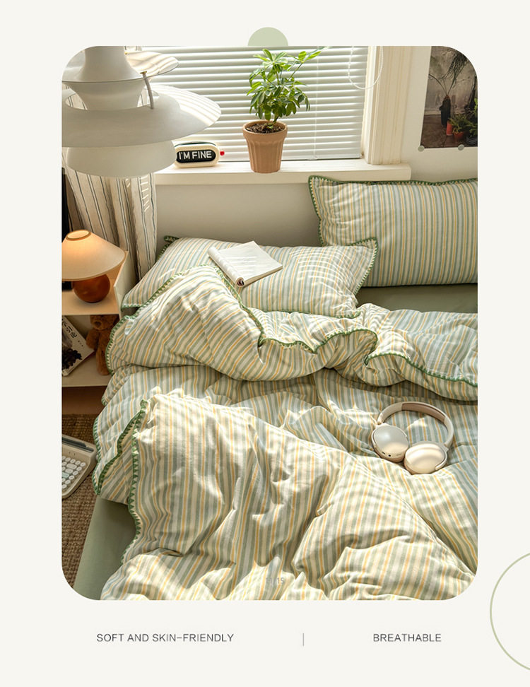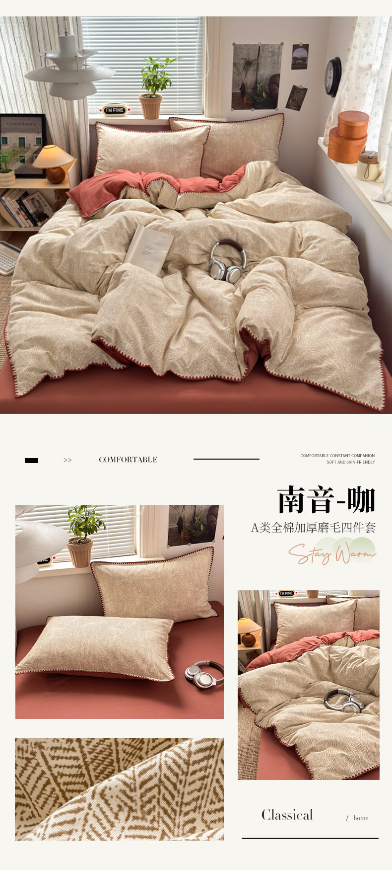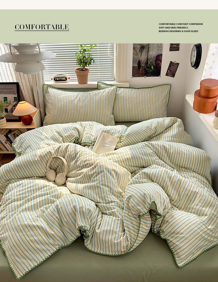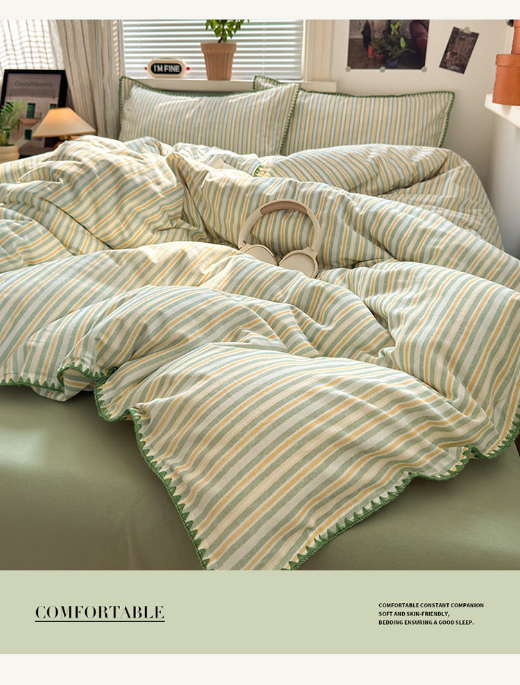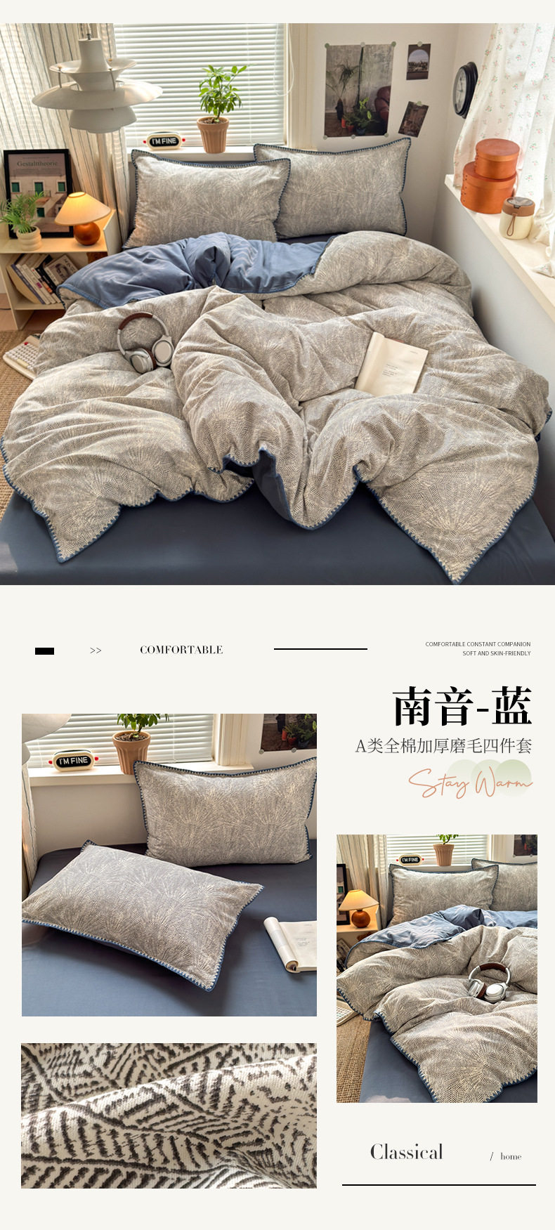 Shell-Edged Four-Piece Set, Brushed Pure Cotton Bedding, Bed Sheet, Duvet Cover, Quilt Cover, Fitted Sheet, Three-Piece Set for College Students