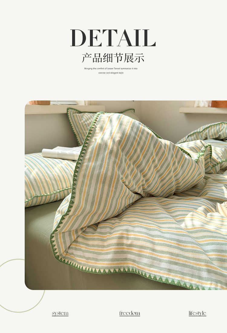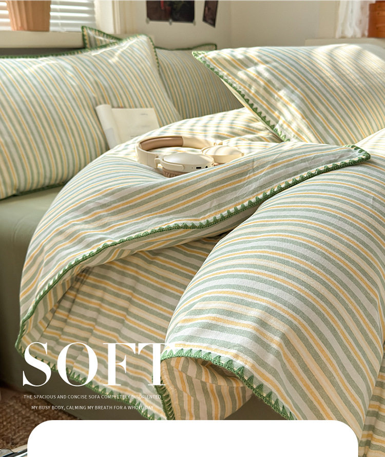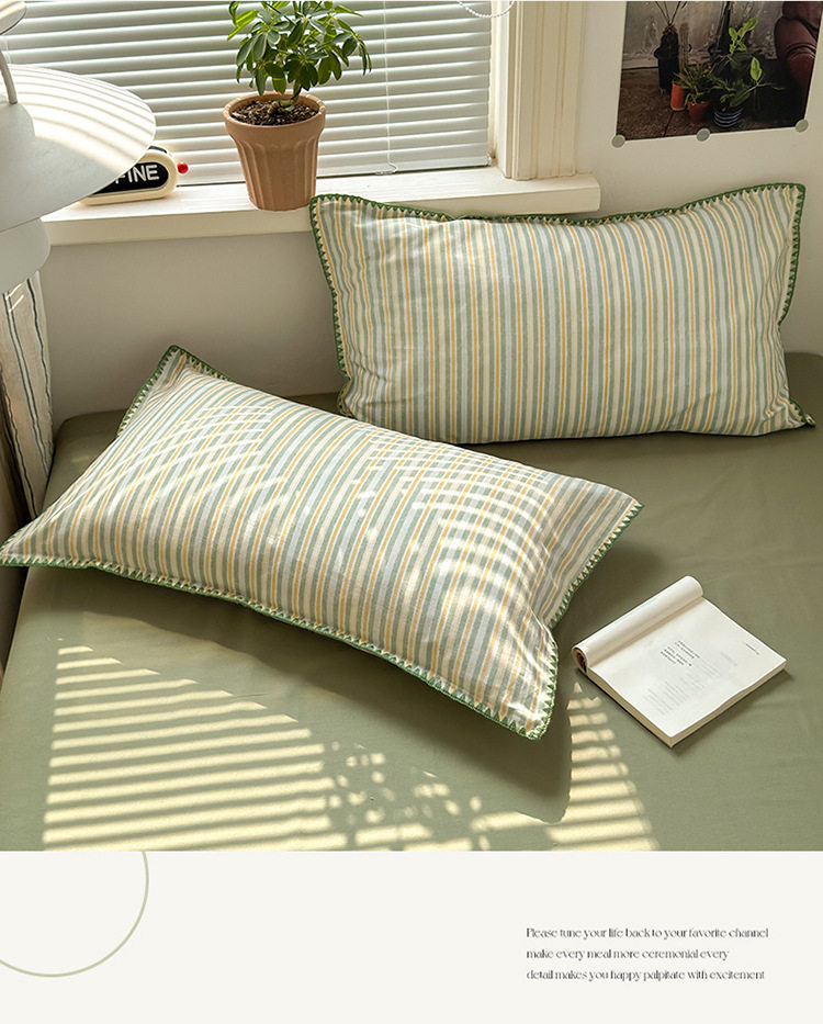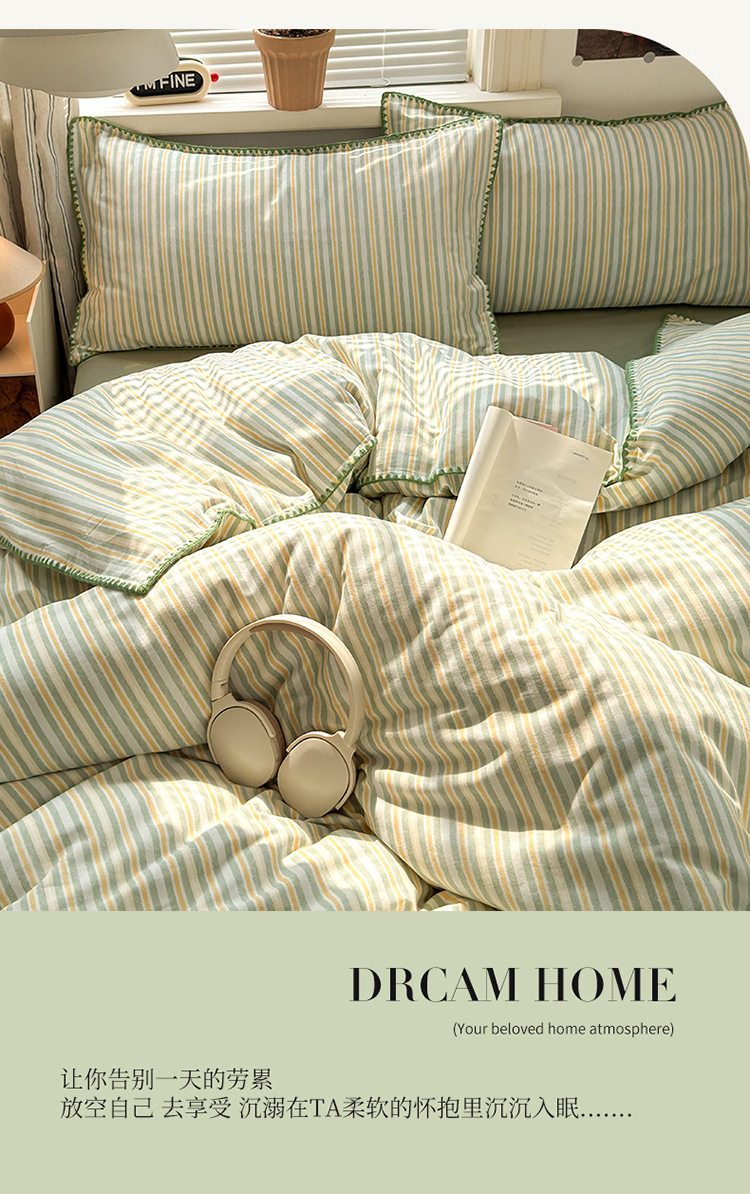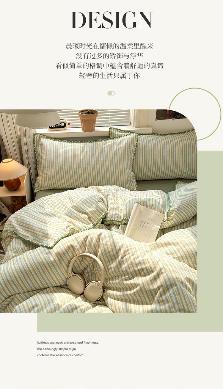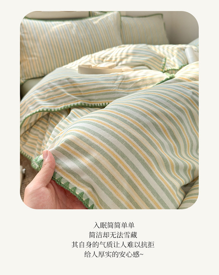 Shell-Edged Four-Piece Set, Brushed Pure Cotton Bedding, Bed Sheet, Duvet Cover, Quilt Cover, Fitted Sheet, Three-Piece Set for College Students