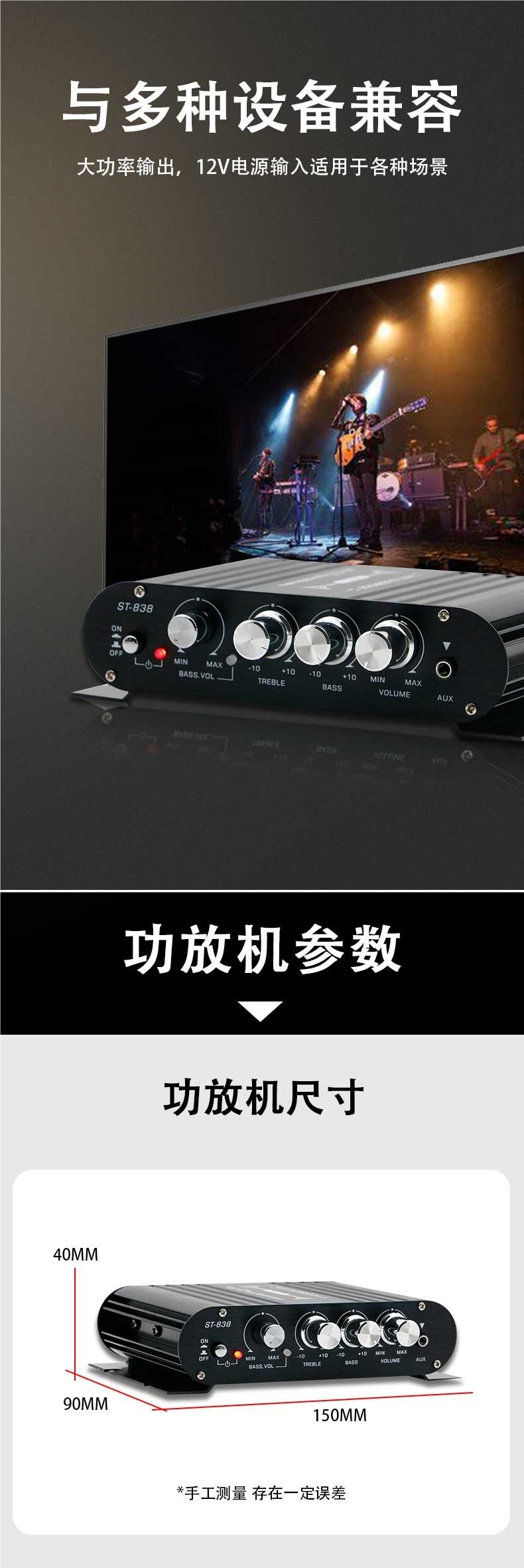 | Color | Black power amplifier (single unit does not include power supply),Black amplifier + 2a power adapter,Black power amplifier + 2a power adapter + audio cable,Black amplifier + power adapter,Black amplifier + power adapter + audio cable,Silver power amplifier (single unit does not include power supply),Silver amplifier + 2a power adapter,Silver amplifier + 2a power adapter + audio cable,Silver amplifier + power adapter,Silver amplifier + power adapter + audio cable |