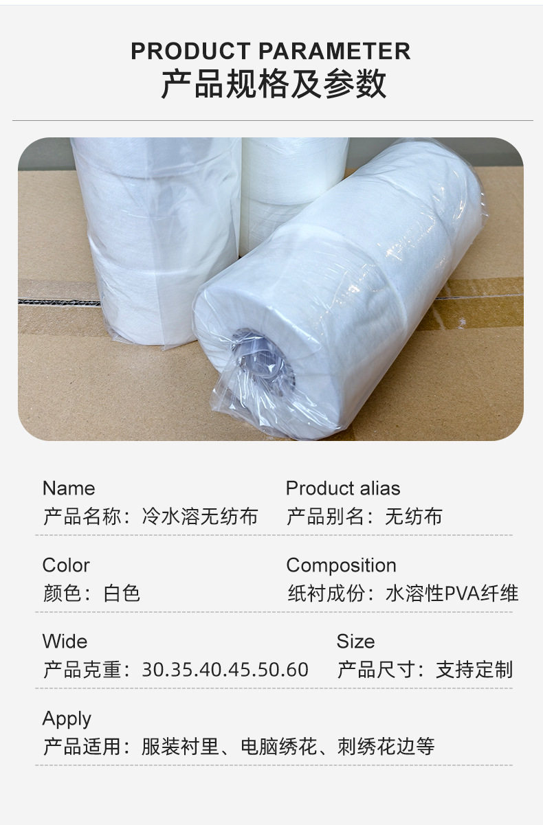 Cuttable and Rolled Cold Water Soluble Non-Woven Fabric Computer Embroidered Water Soluble Non-Woven Fabric Cold Water Soluble Non-Woven Fabric