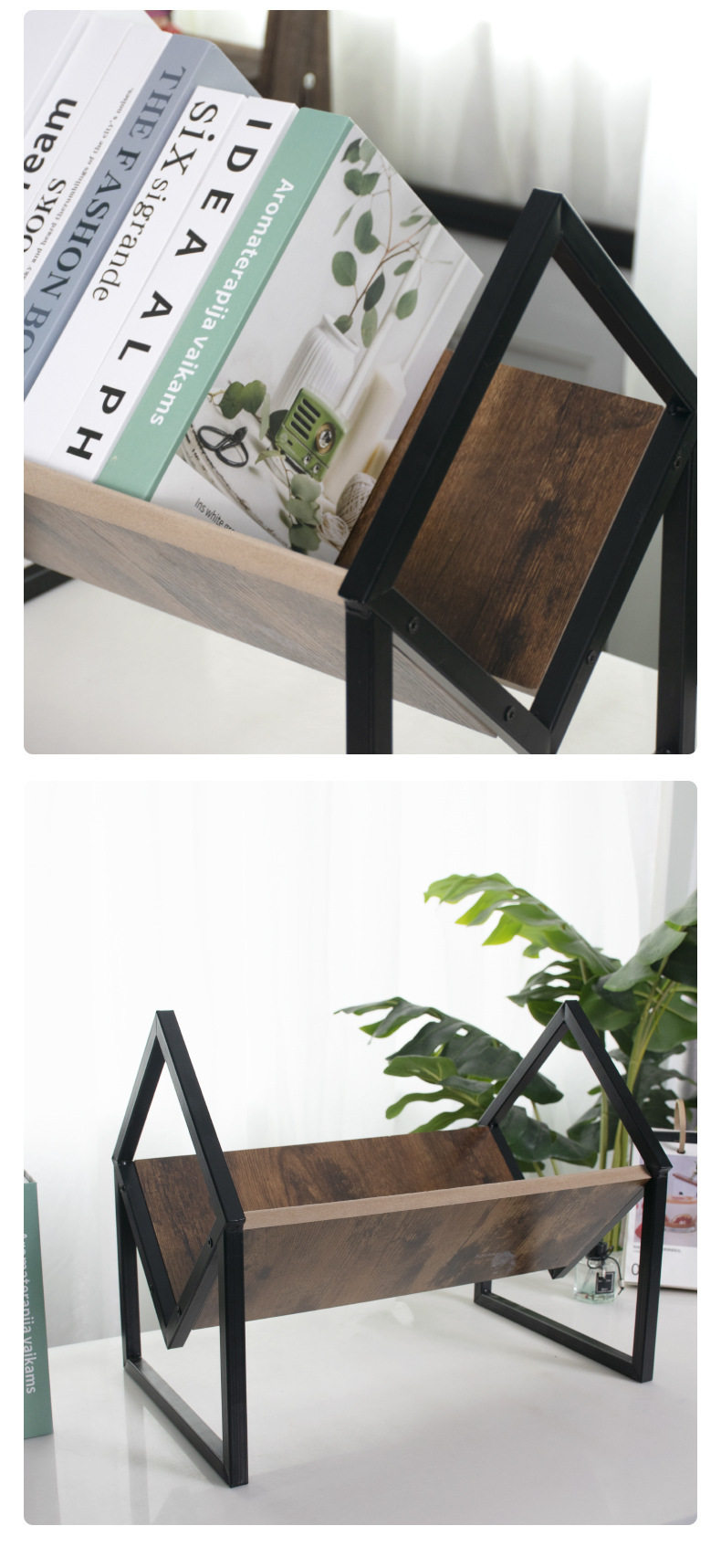 Wooden Movable Retro Bookshelf Floor-Standing Vinyl Record Storage Rack File Storage Rack Wooden Display Rack