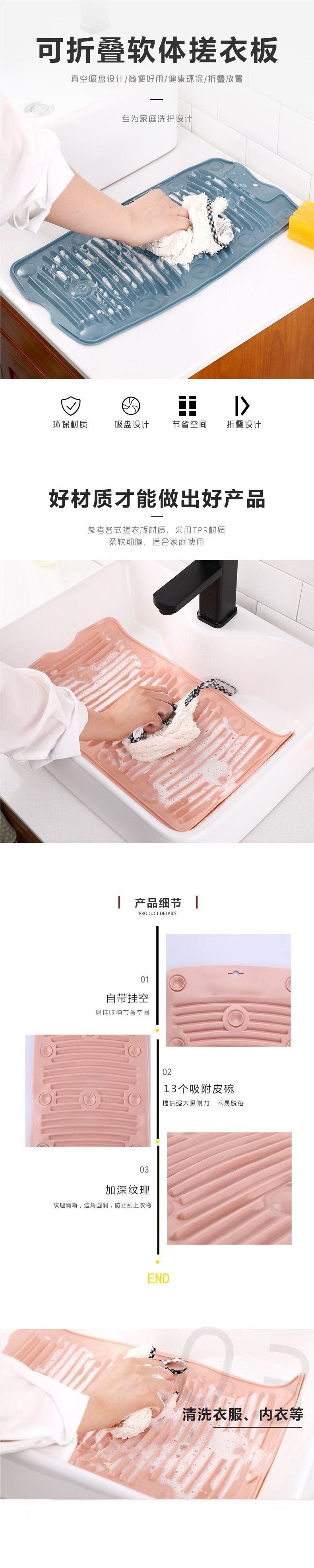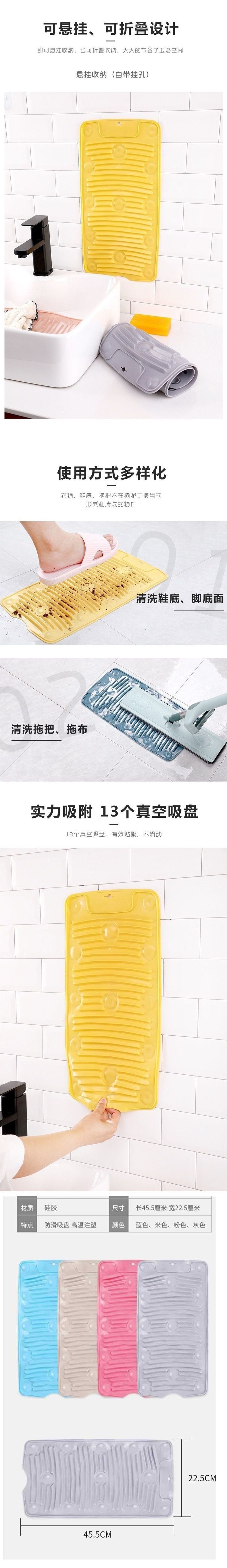 Silicone Washboard Laundry Board Household Foldable Soft Anti-Slip Suction Cup Mat Portable Washboard