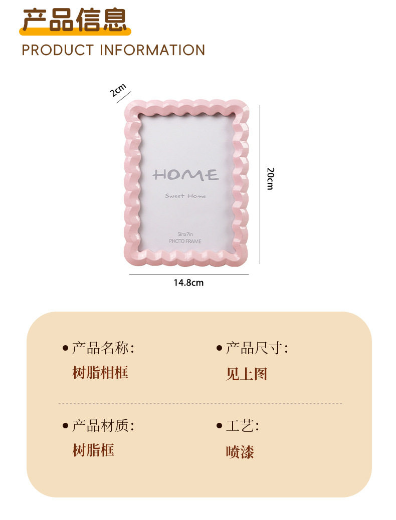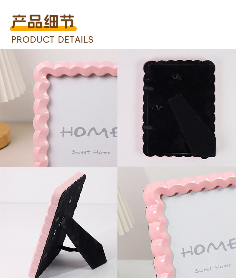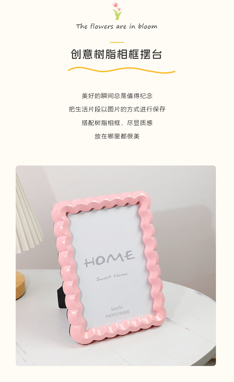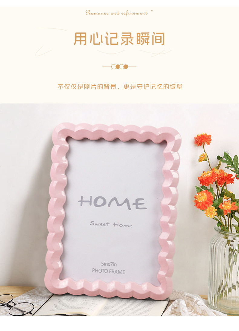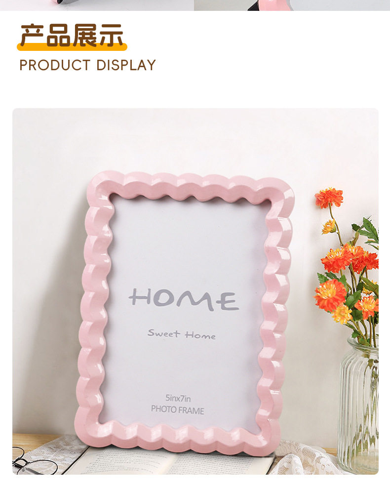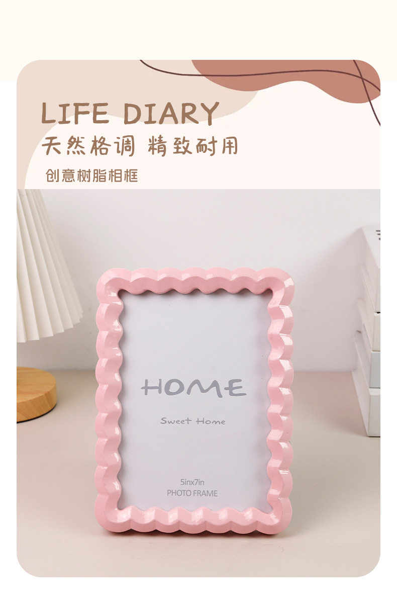 Nordic Solid Color Wave-Shaped Resin Photo Frame, Dual-Purpose for Hanging or Display, Perfect Home Decoration, Cross-Border Bestseller 5*7