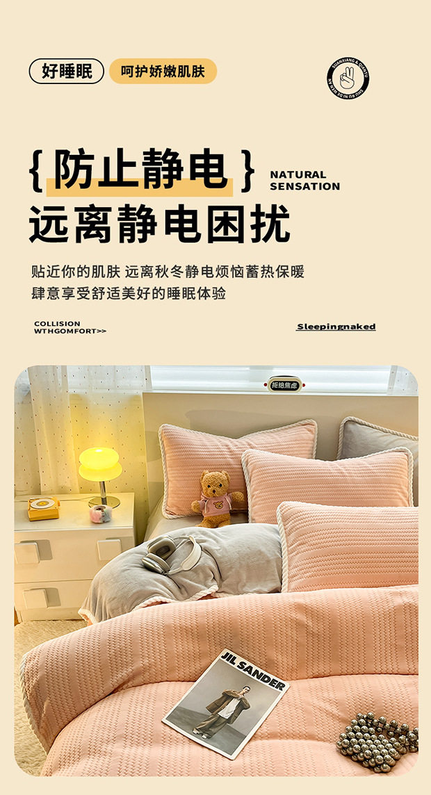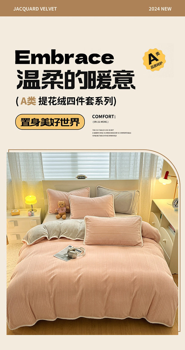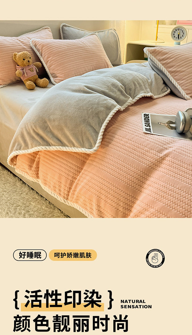 2025 New Finished Jacquard Edge Milk-Colored Four-Piece Bedding Set, Coral All-Season Style Bed Sheet Embroidery Dormitory Three-Piece Set