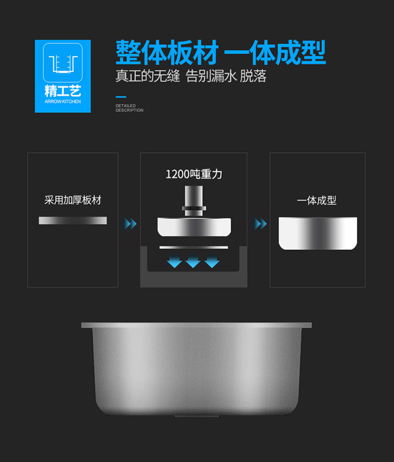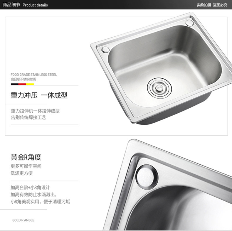 Small Order 304 Stainless Steel Kitchen Sink Dishwashing Sink Integrated Basin Set with Ginger Tea