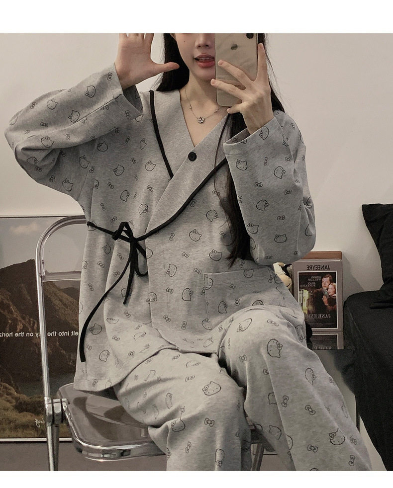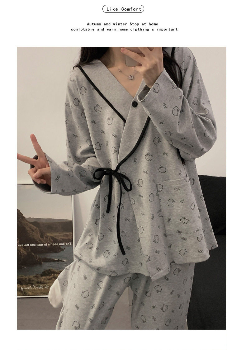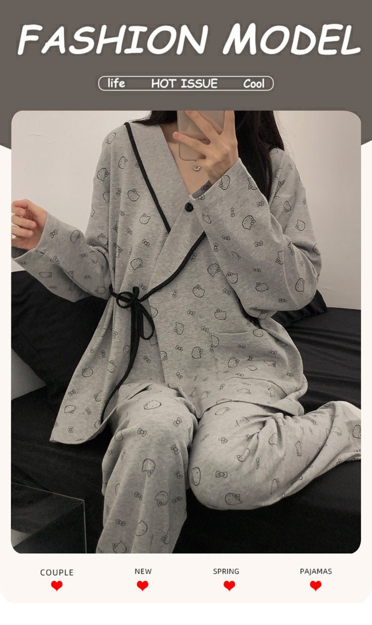 Spring and Autumn Kimono Ice Porcelain Cotton Maternity Prenatal Nursing Postpartum Sleepwear Cardigan Maternity Set for Going Out