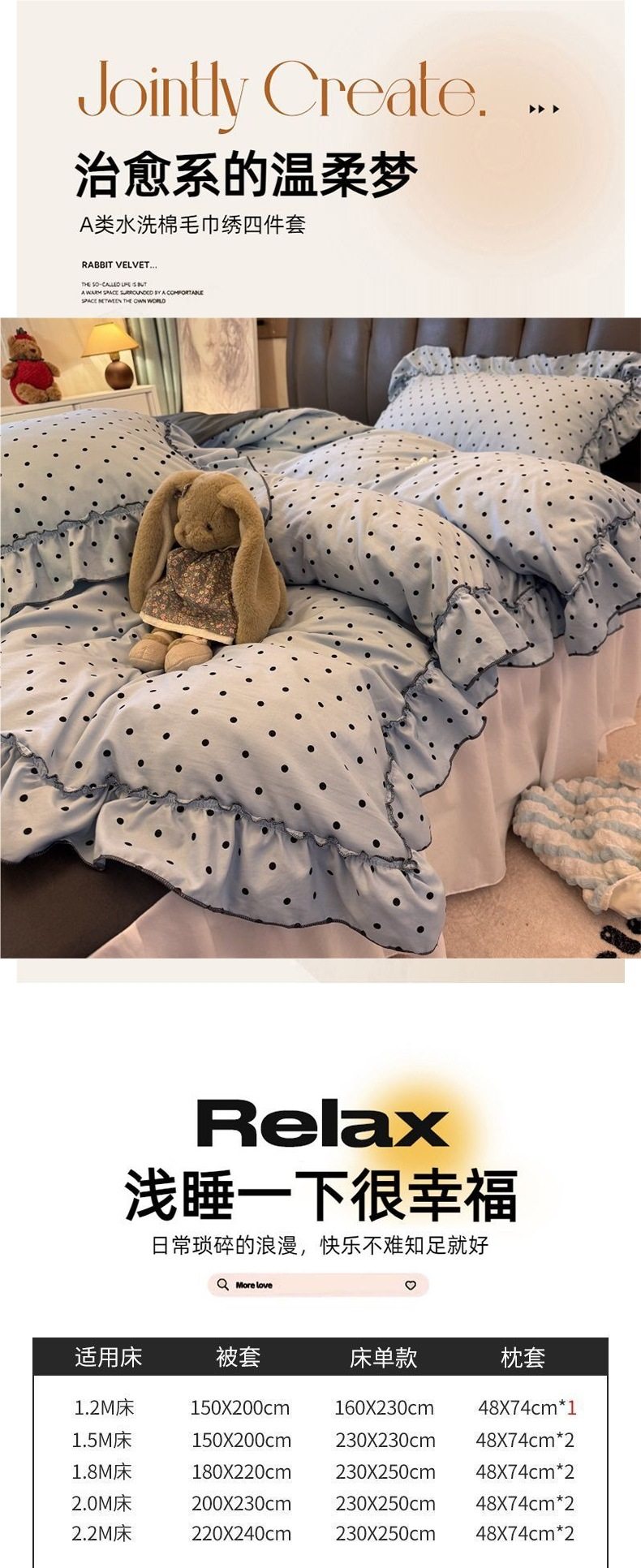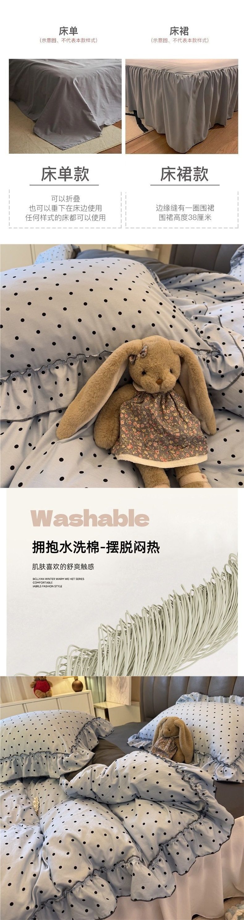 | Dimensions | 1.2 dormitory bed sheets three-piece set: quilt cover 150*200,1.5-sheet four-piece set: quilt cover 150*200,1.8-sheet four-piece set: quilt cover 180*220,2.0bed sheets four-piece set: quilt cover 200*230,1.5 bed skirt four-piece set [quilt cover 150*200],1.5 bed skirt four-piece set [quilt cover 180*220],1.5 bed skirt four-piece set [quilt cover 200*230],1.8 bed skirt four-piece set [quilt cover 180*220],1.8 bed skirt four-piece set [quilt cover 200*230] |