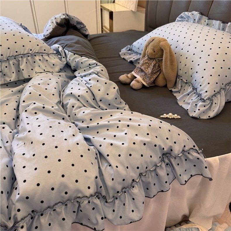 Ins Pastoral Floral Lace Quilt Cover Bed Sheets Double Bed Skirt Four-Piece Set Universal Washed Cotton Dormitory Three-Piece Set