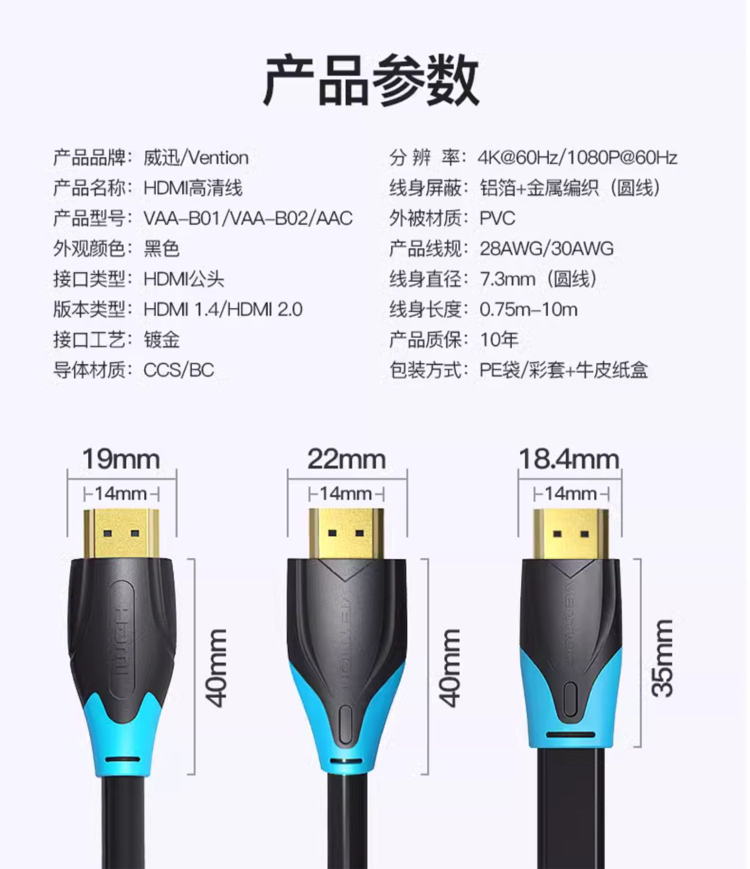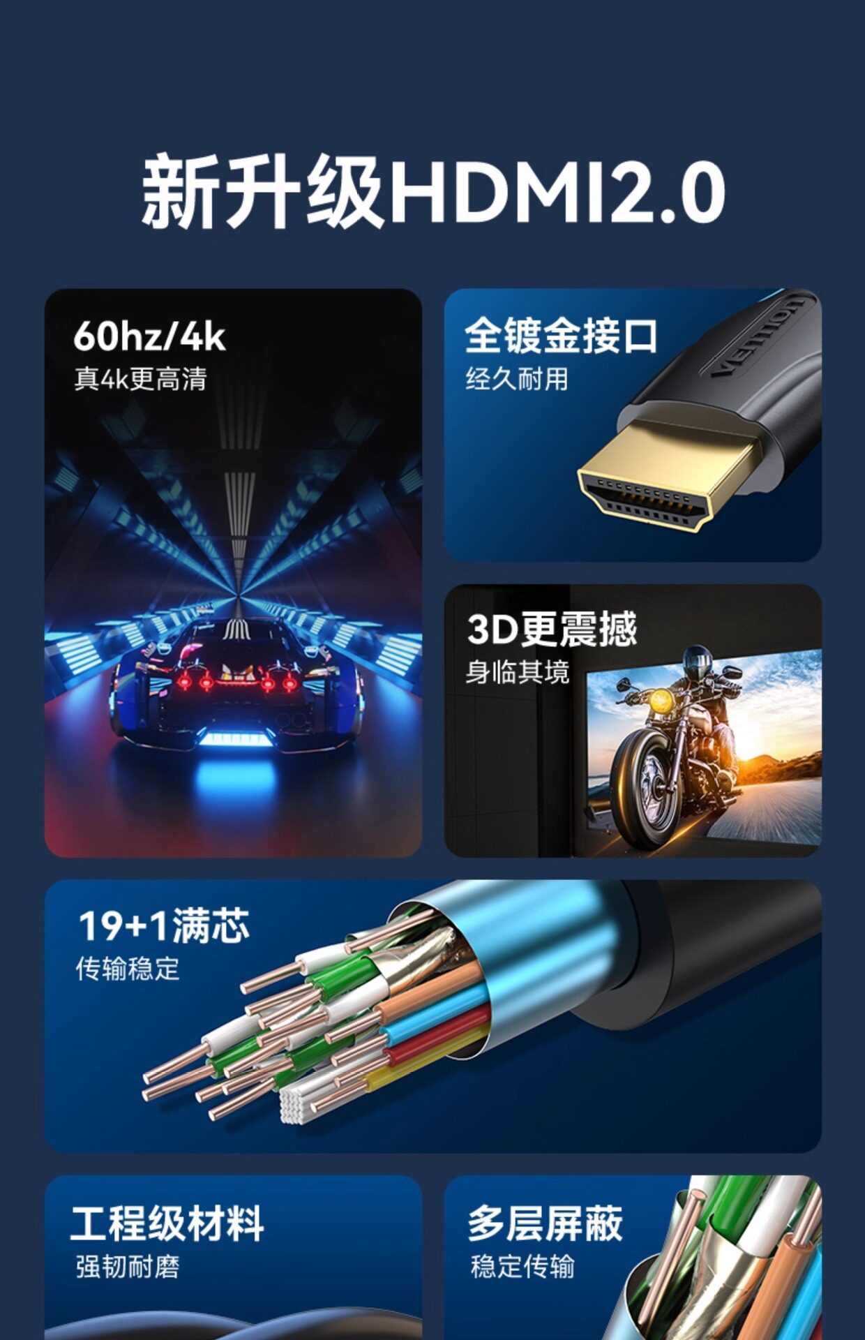 Vention Hdmi2.0 Hd Cable 8/4K60Hz Audio and Video Wiring Computer Tv Led Display Cable Vention
