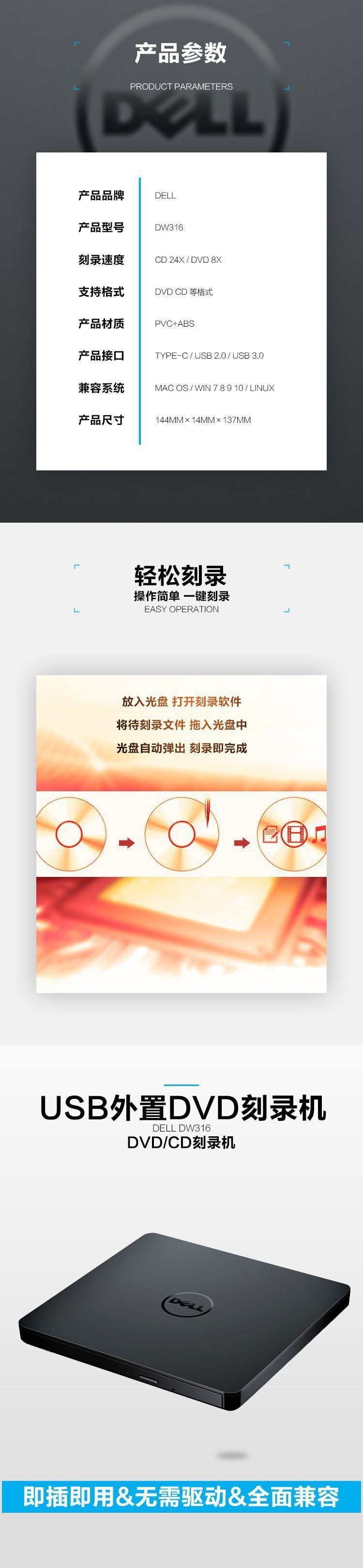 | Color | External dvd recorder cd recorder usb optical drive read and write all-in-one win and mac, linux |