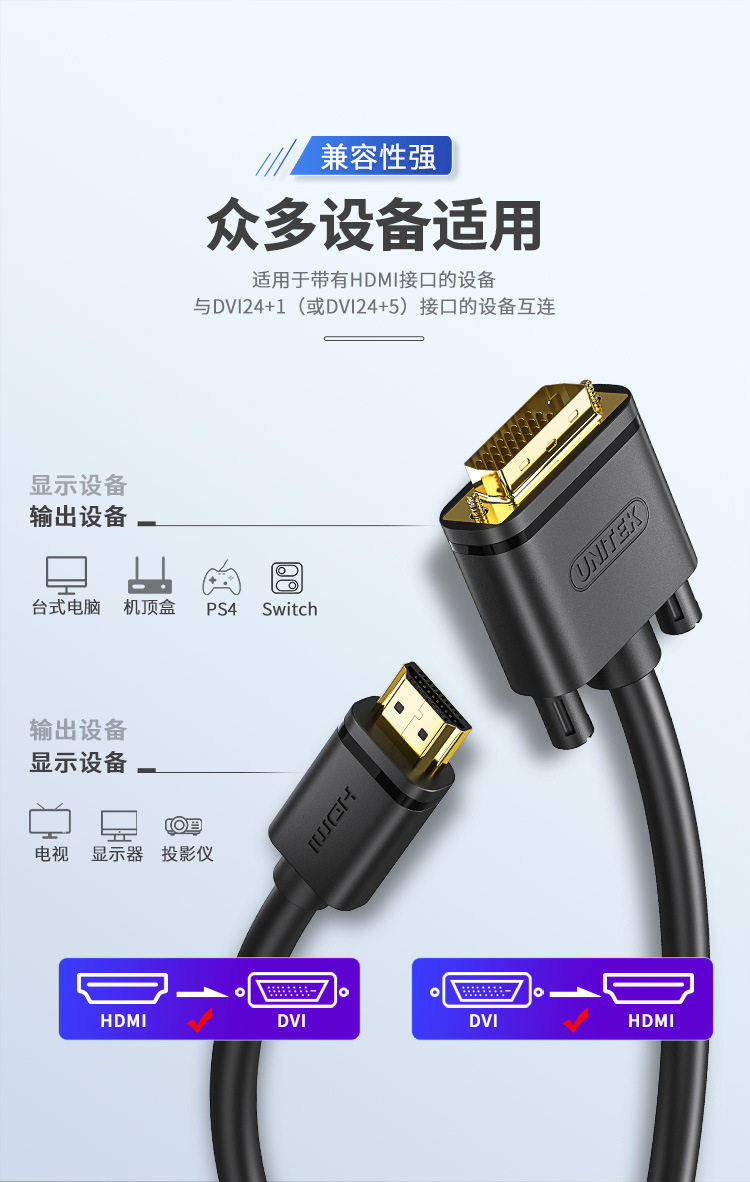 Superior HDMI to Dvi Cable Hd Cable Two-Way Mutual Conversion Projector Display Cable Y-C217