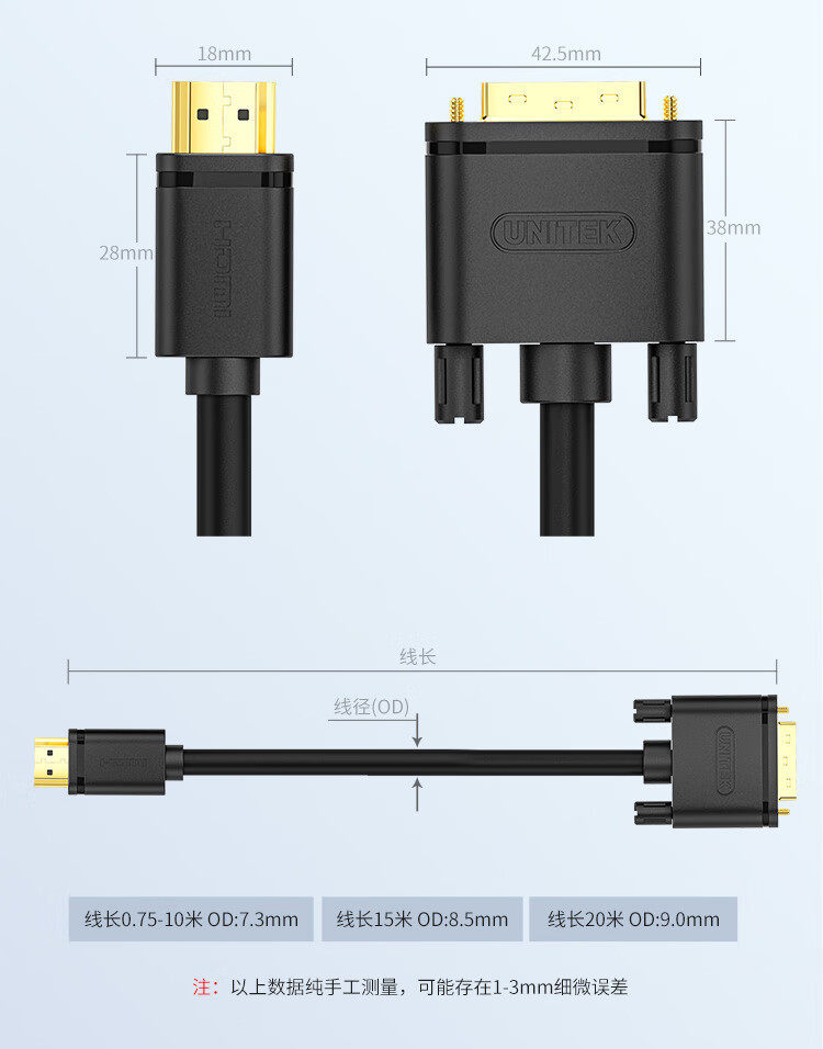 | Line length | Hdmi to dvi (24+1) male to male cable y-c231e 1m,Hdmi to dvi (24+1) male to male cable y-c217e 1.5m,Hdmi to dvi (24+1) male to male cable y-c219e 3m,Hdmi to dvi (24+1) male to male cable y-c220e 5m,Hdmi to dvi (24+1) male to male cable y-c222e 10m,Hdmi to dvi (24+1) male to male cable y-c224e 15m,Hdmi to dvi (24+1) male to male cable y-c225e 20m |