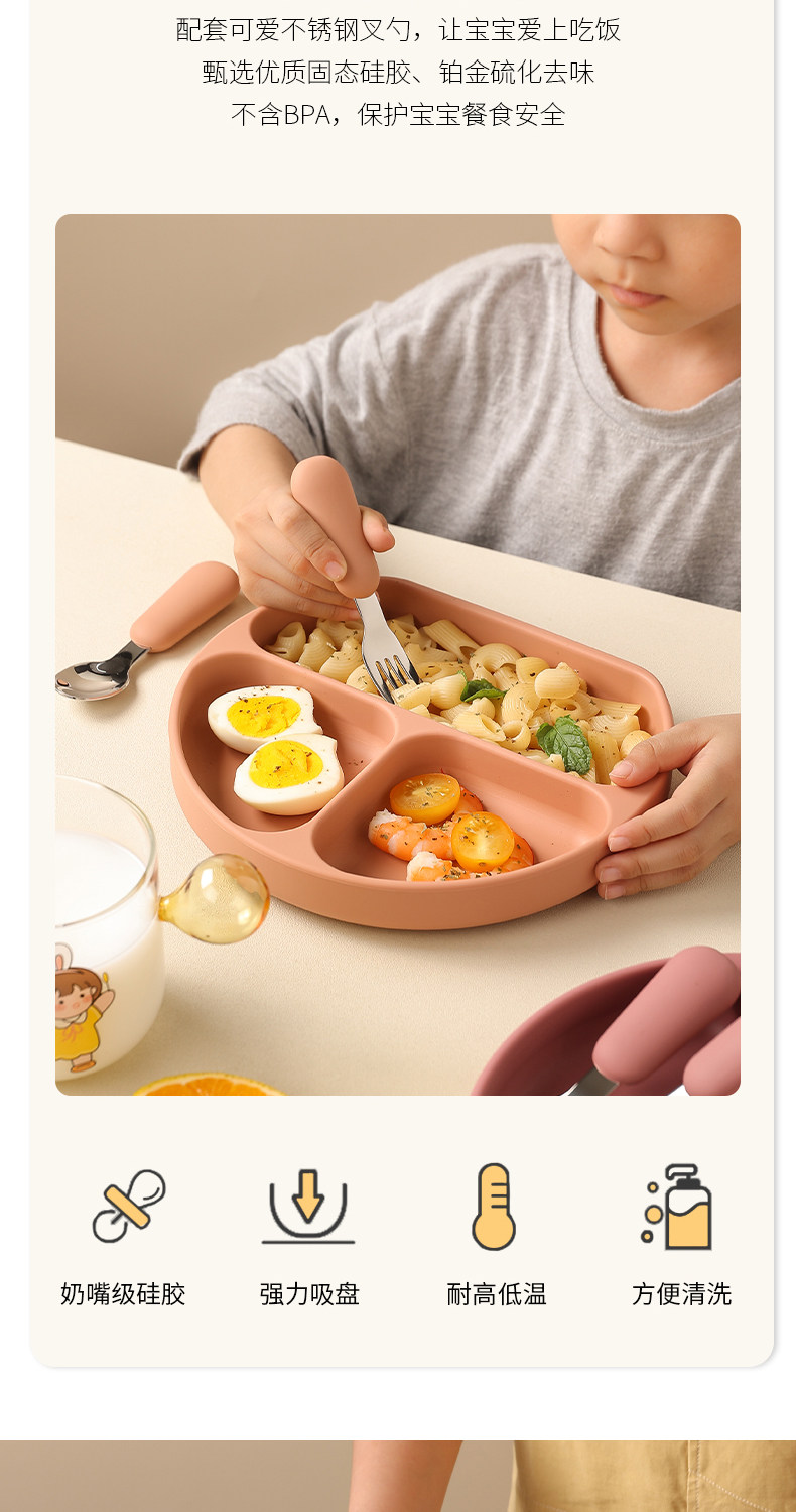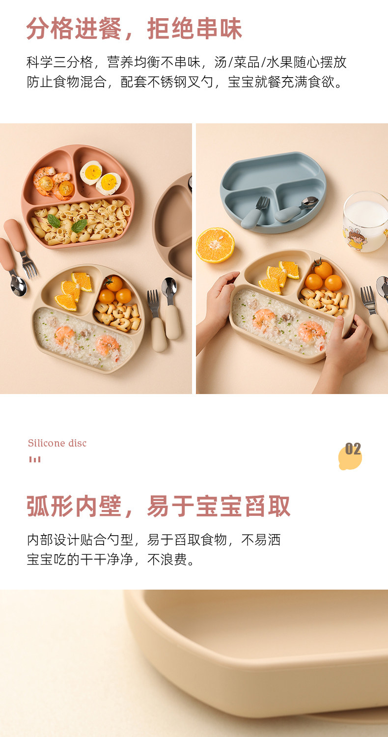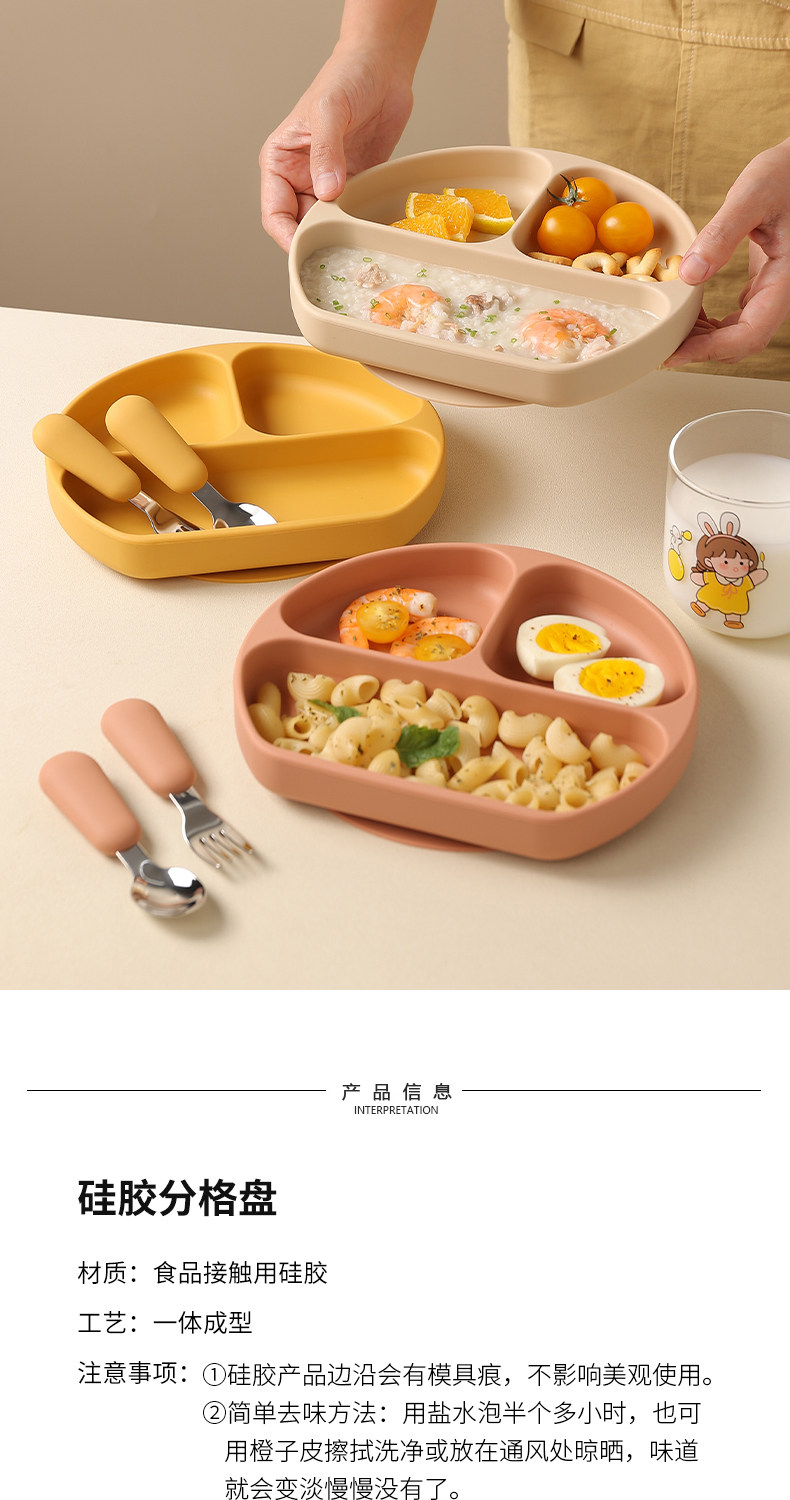 Baby Meal Plate, Independent Eating, Silicone Suction Cup, Integrated Baby Food Tray, Compartment Tray, Food Bowl for Dining Chair